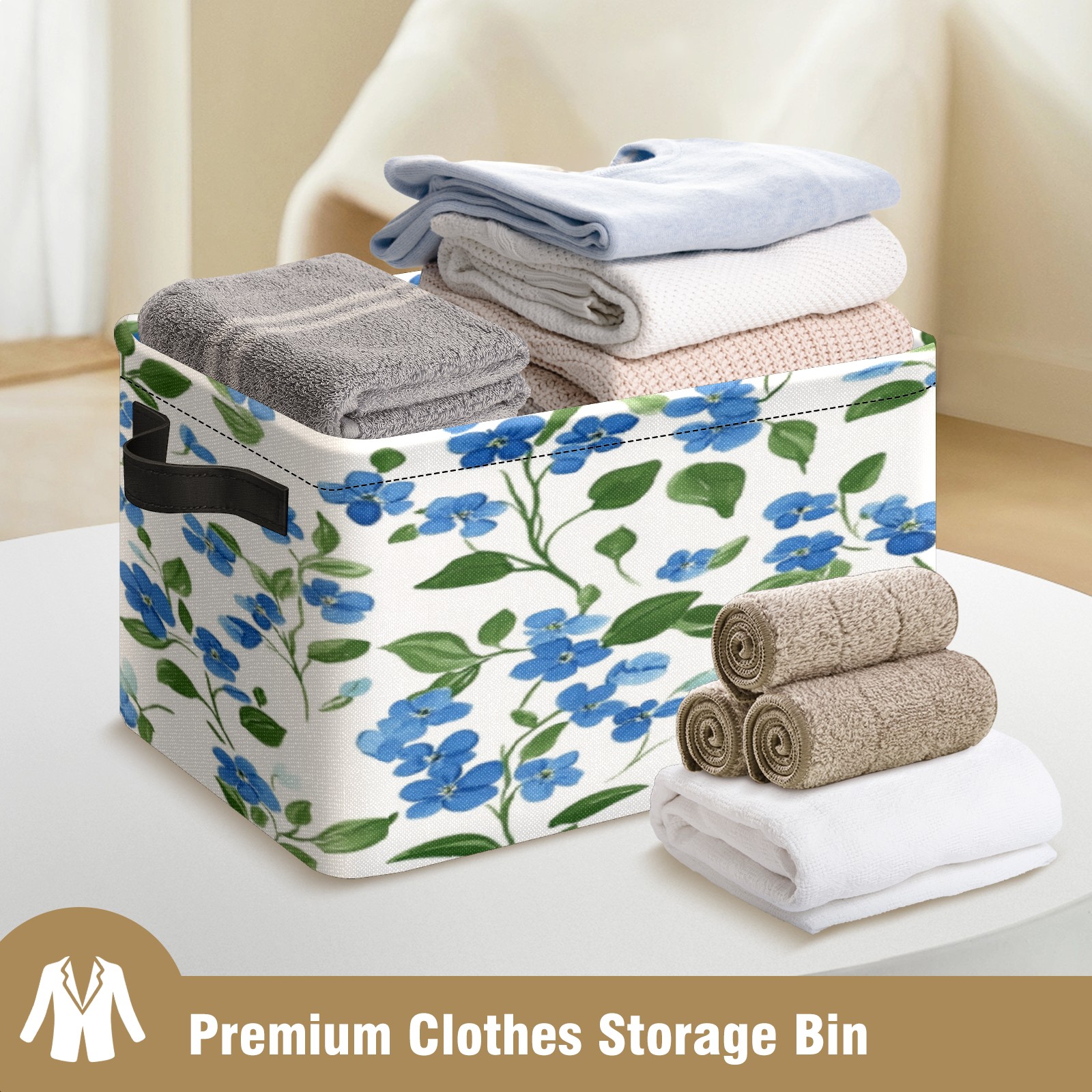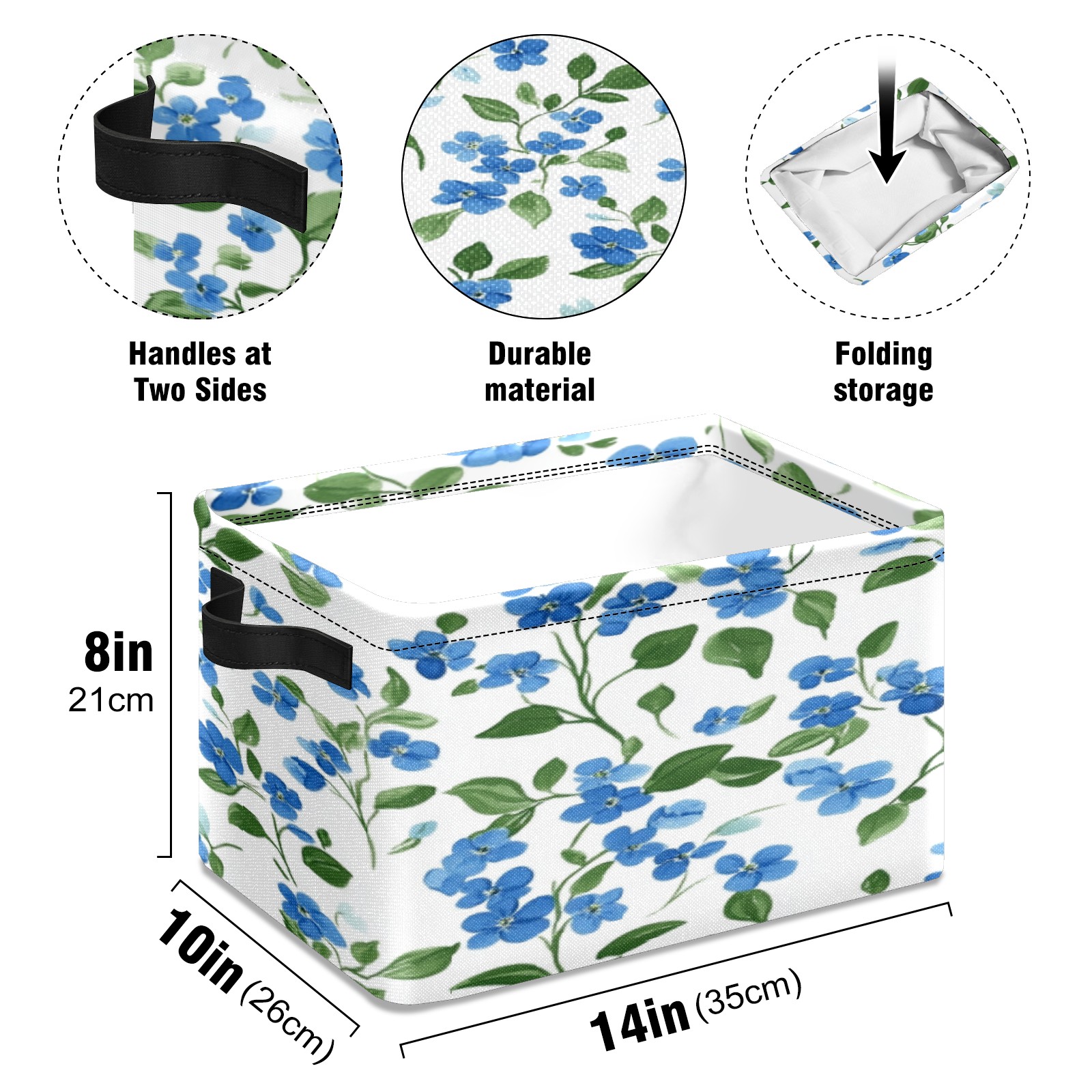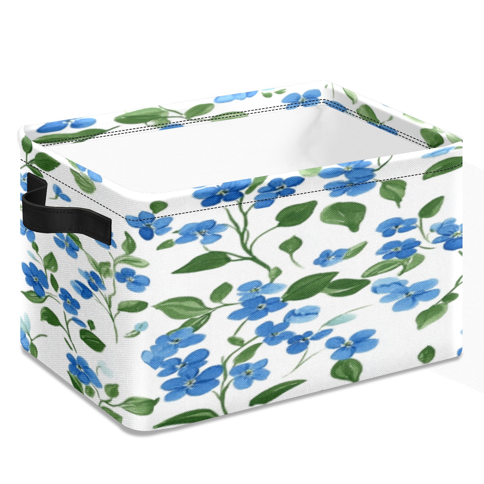 Foldable and Stackable Fabric Storage Basket for Home Organization with Handles, Decorative Closet Bins for Shelves, Laundry, and Toy Storage( Blue Forget-me-not Pattern)