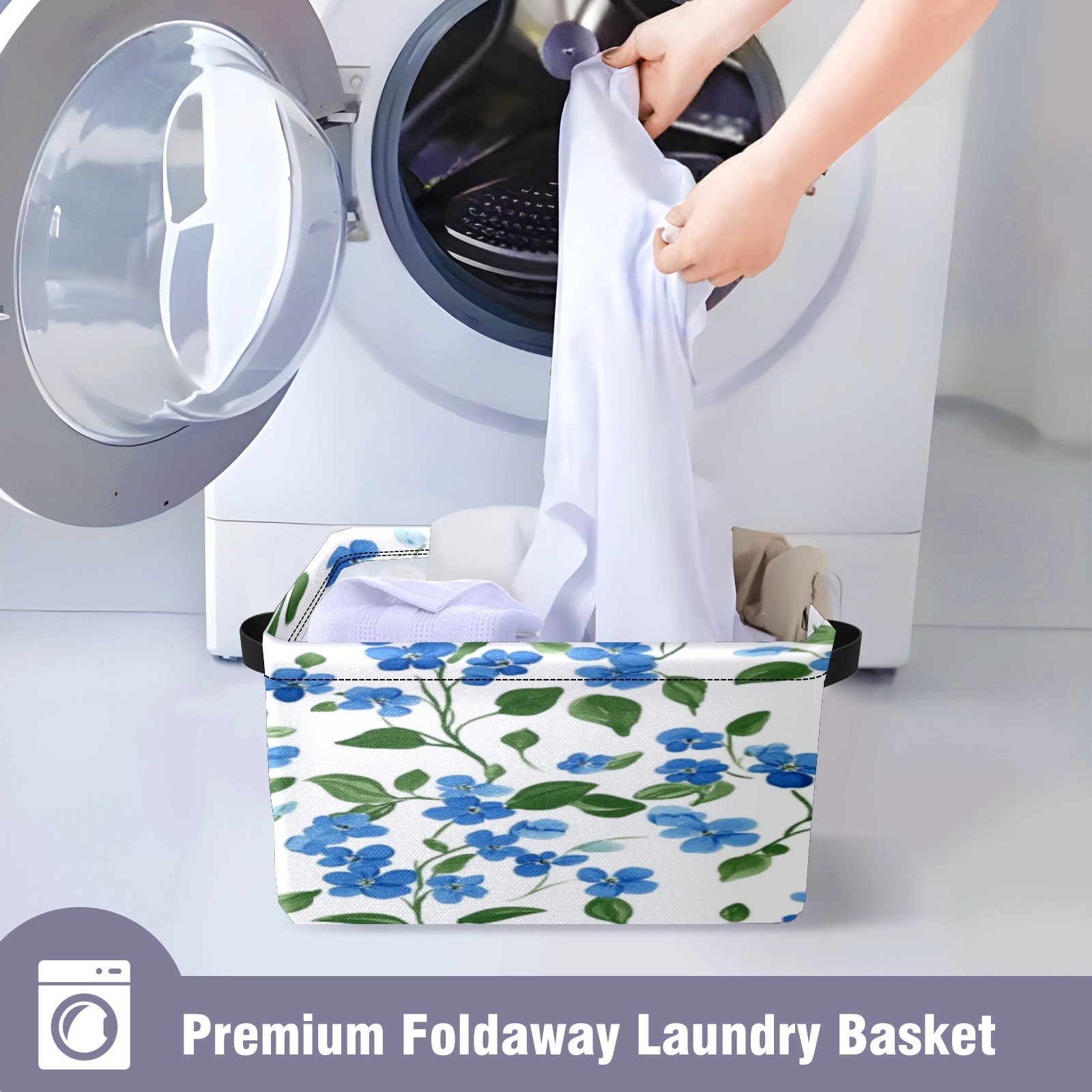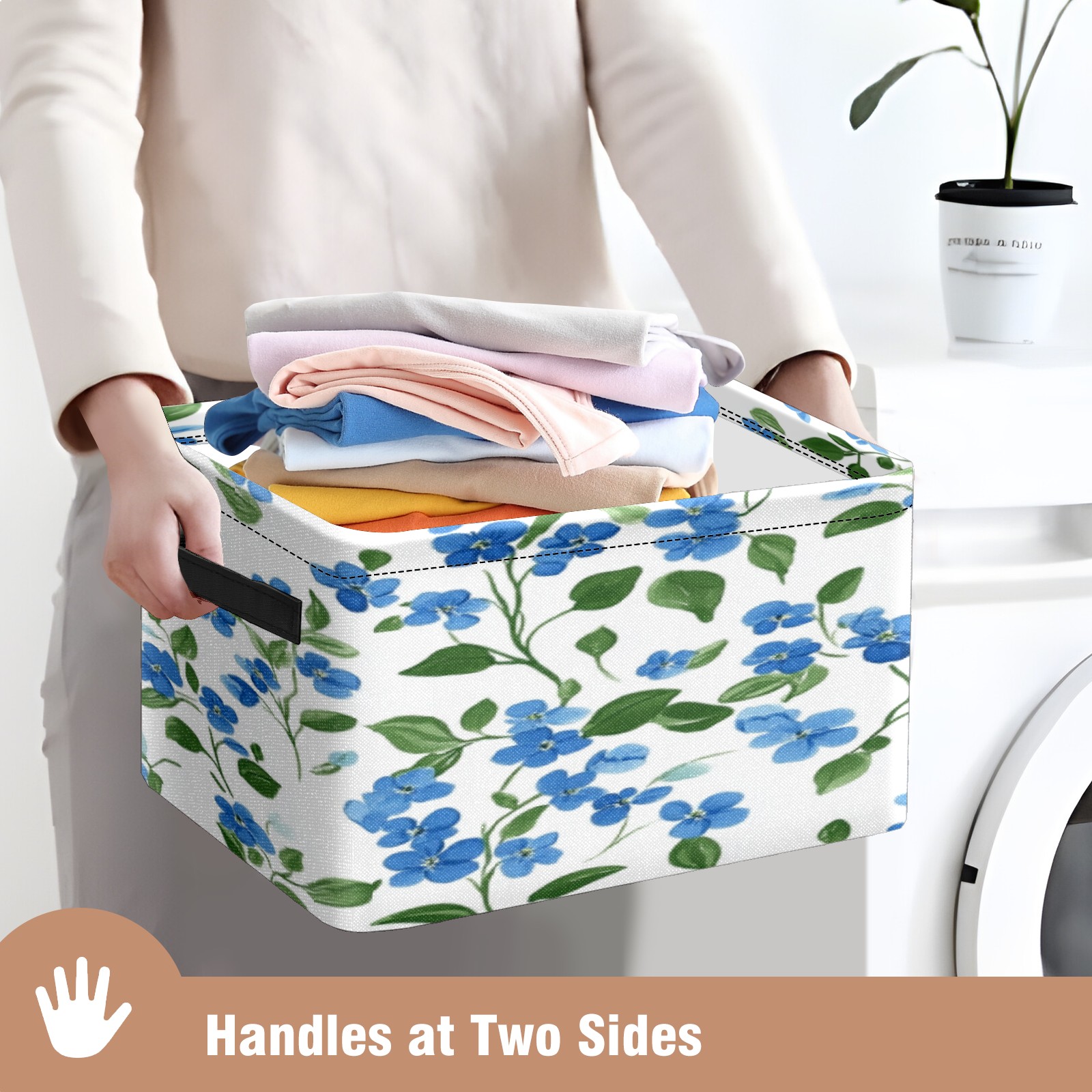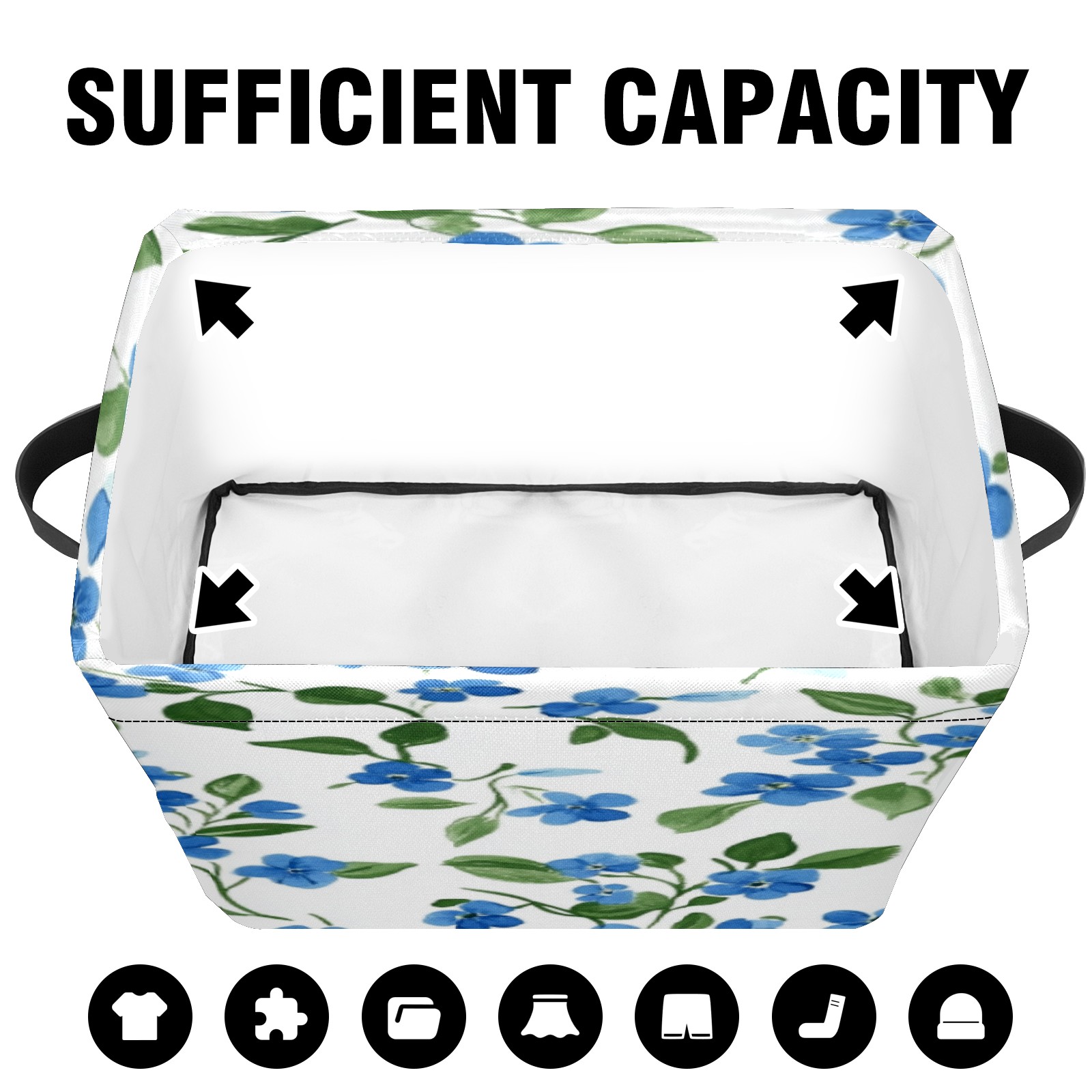 Foldable and Stackable Fabric Storage Basket for Home Organization with Handles, Decorative Closet Bins for Shelves, Laundry, and Toy Storage( Blue Forget-me-not Pattern)