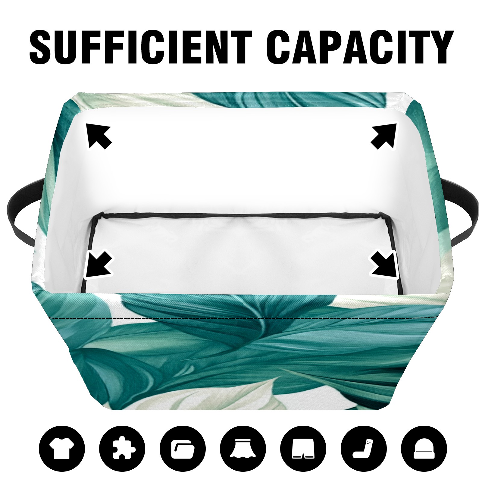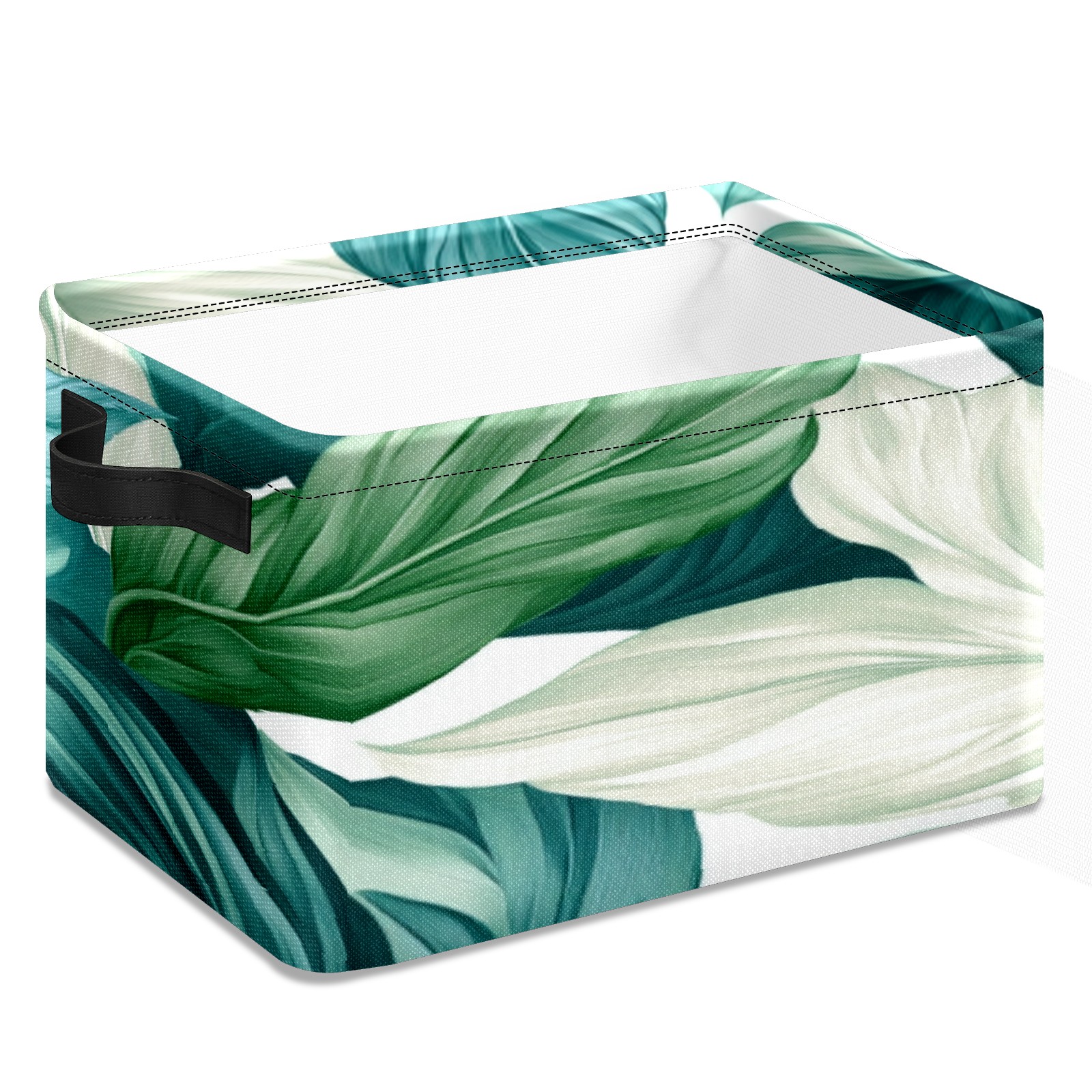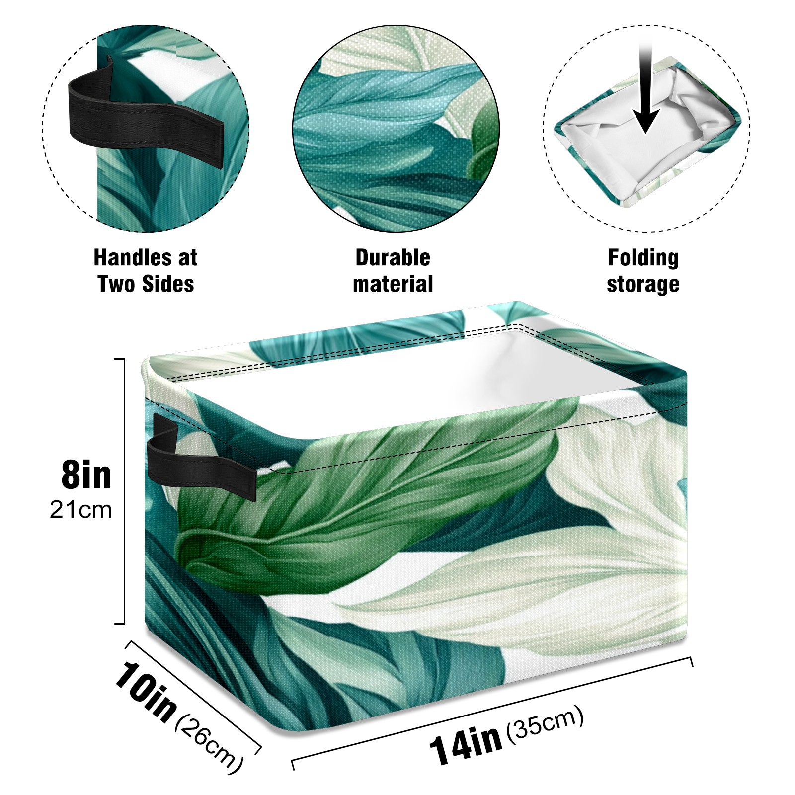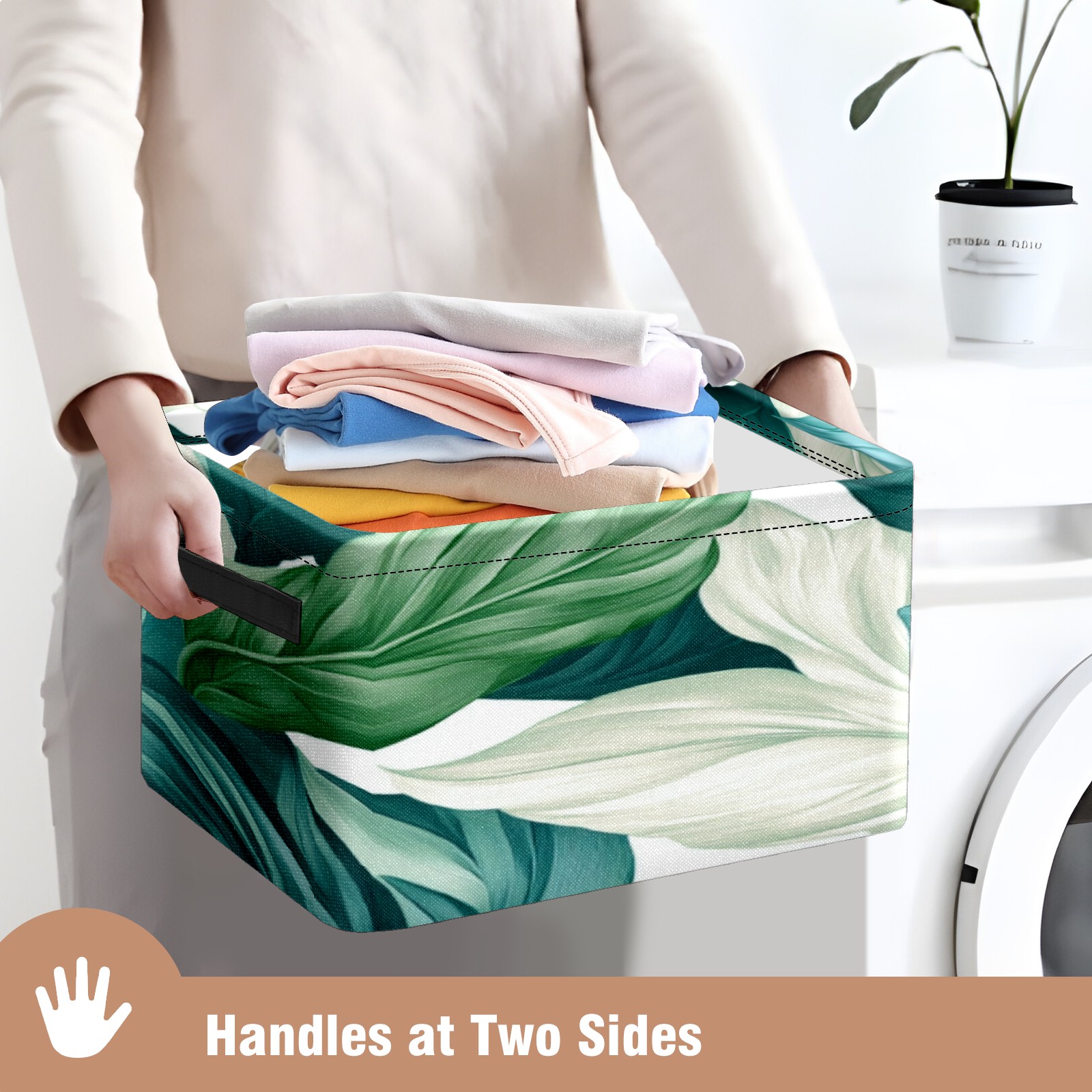 Foldable and Stackable Fabric Storage Basket for Home Organization with Handles, Decorative Closet Bins for Shelves, Laundry, and Toy Storage( Tropical Leaves)