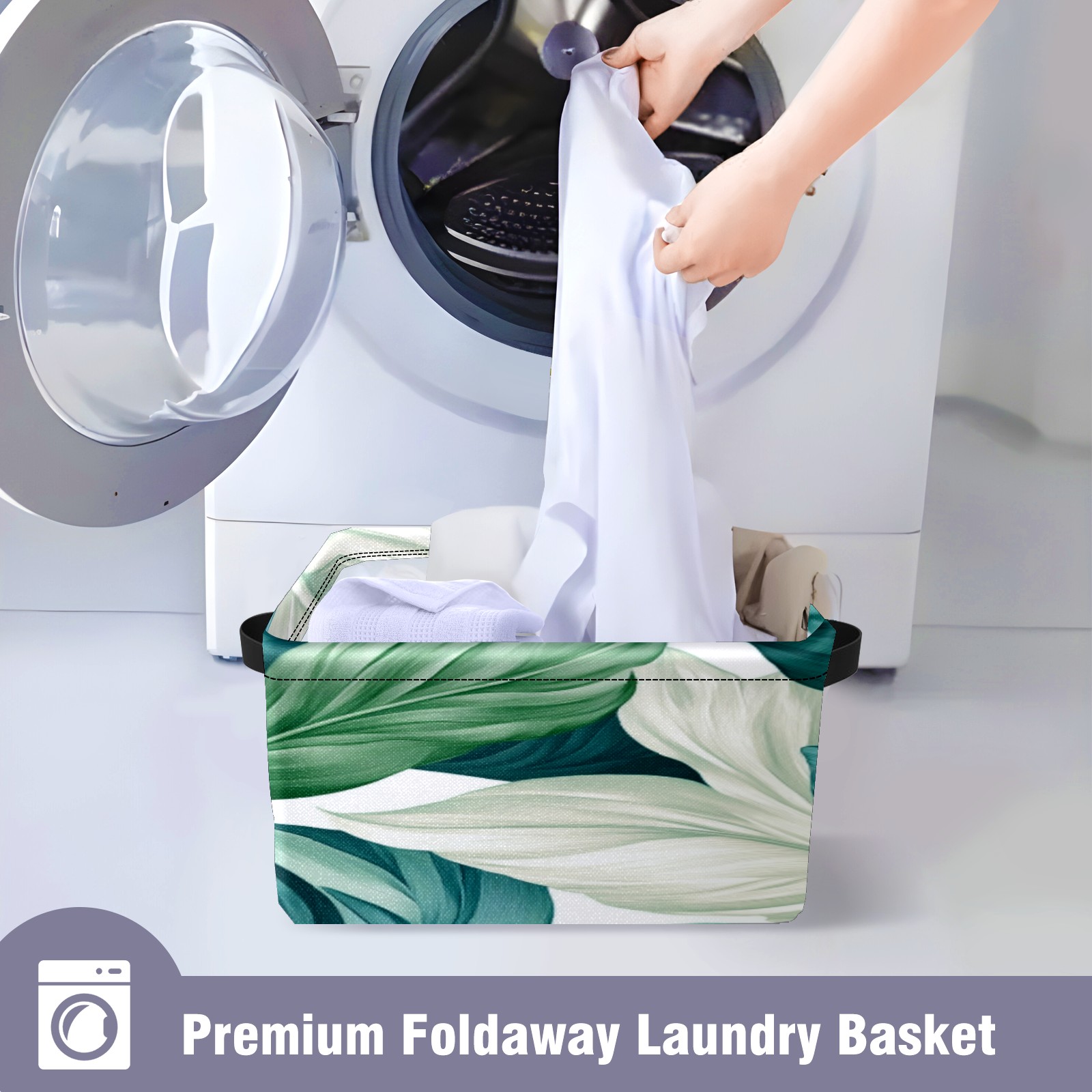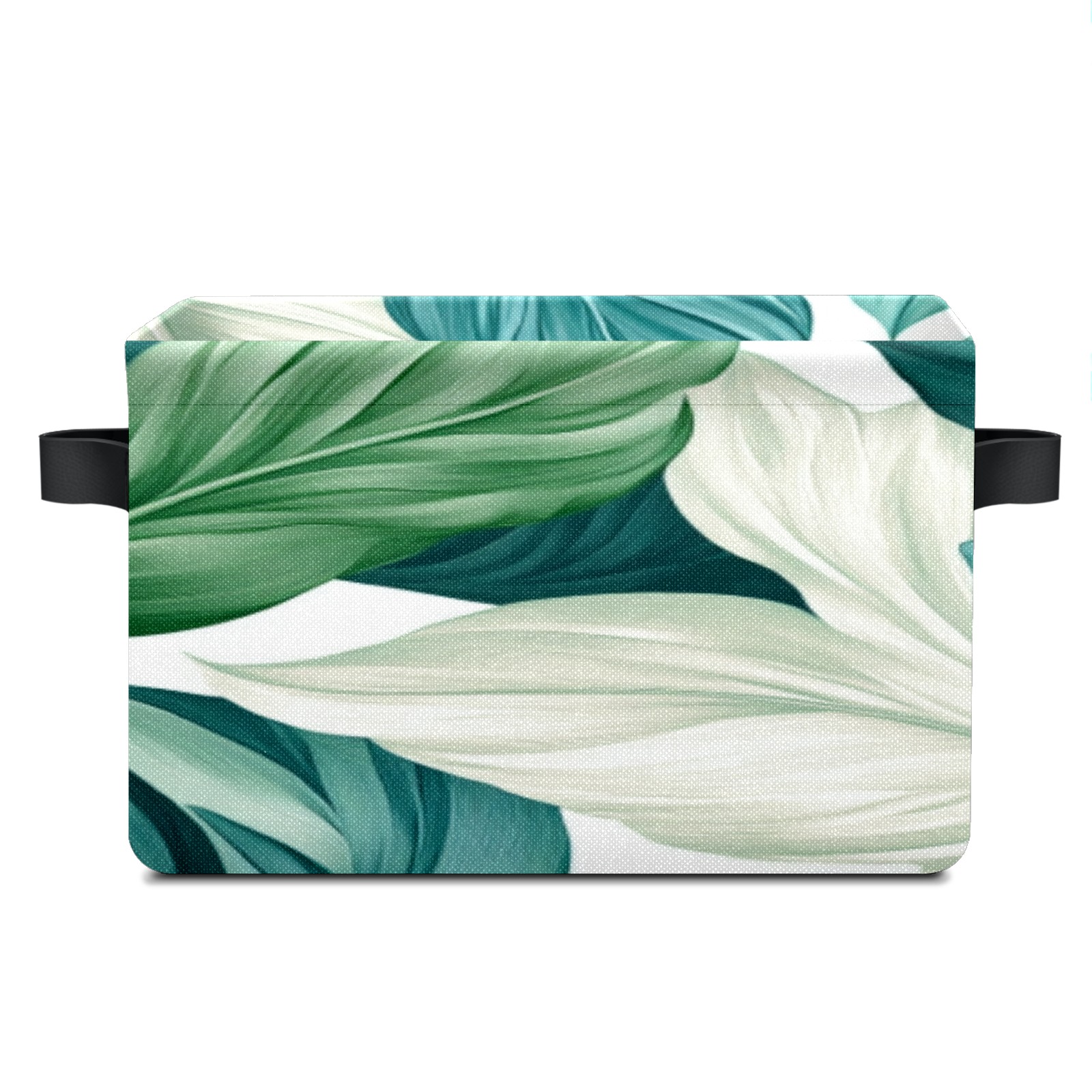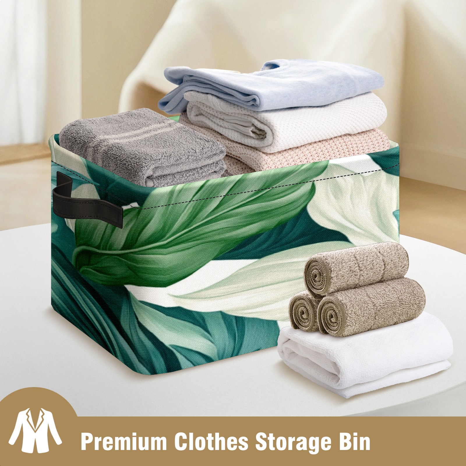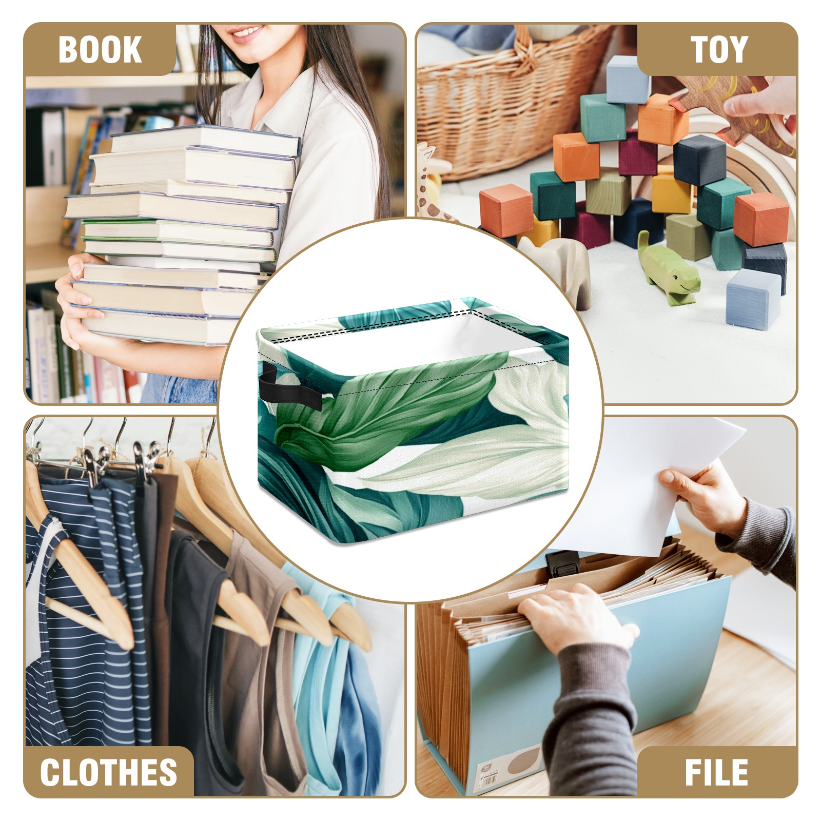 Foldable and Stackable Fabric Storage Basket for Home Organization with Handles, Decorative Closet Bins for Shelves, Laundry, and Toy Storage( Tropical Leaves)