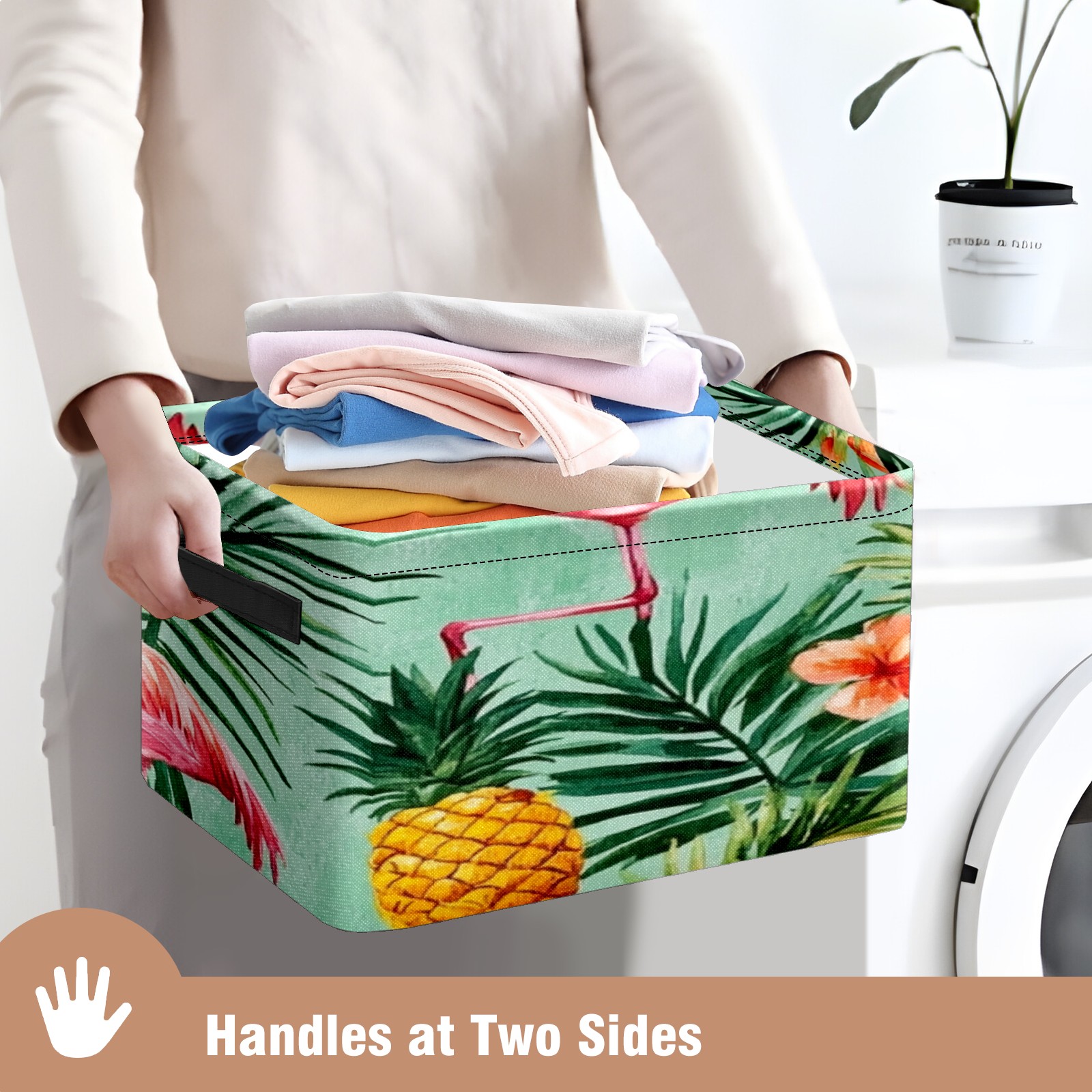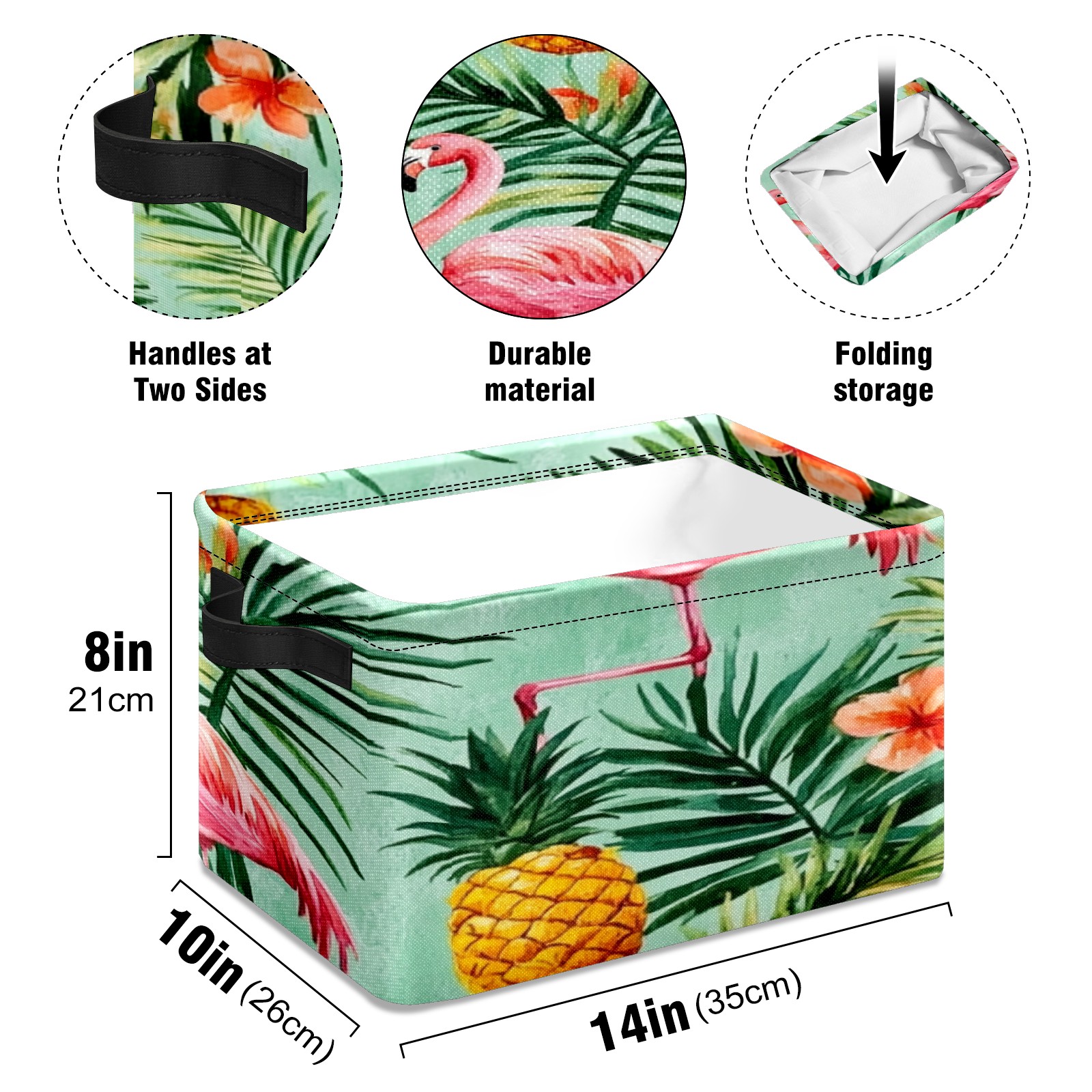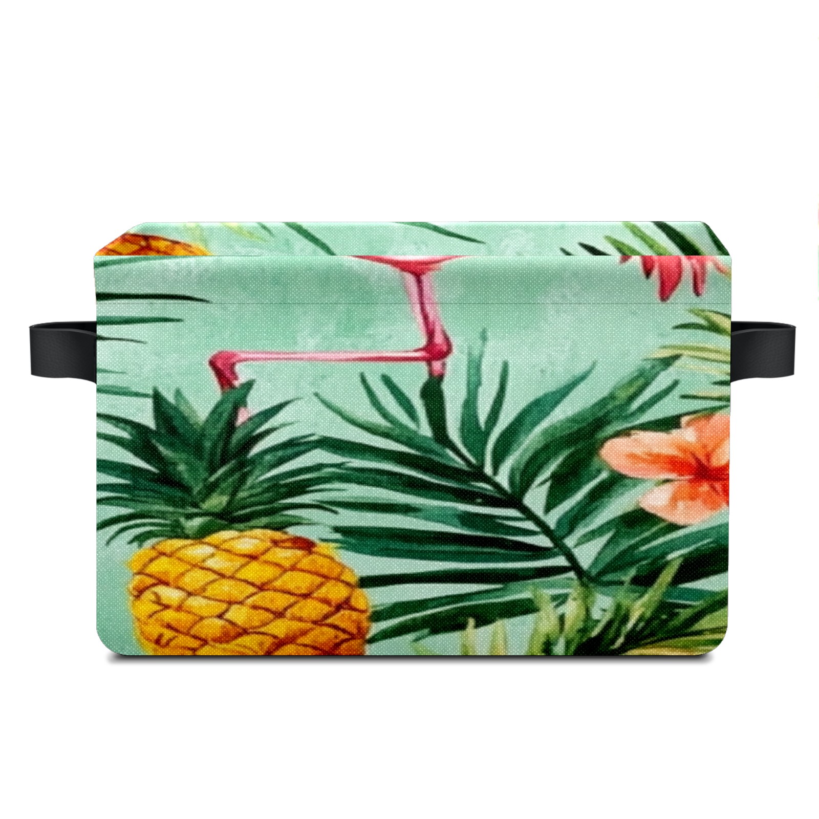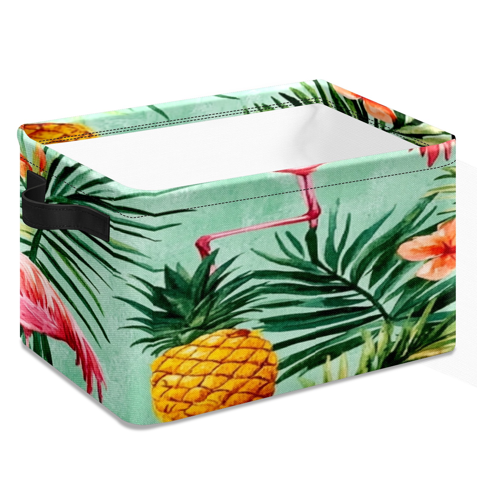 Foldable and Stackable Fabric Storage Basket for Home Organization with Handles, Decorative Closet Bins for Shelves, Laundry, and Toy Storage( Watercolor Pink Flamingos Pineapples)