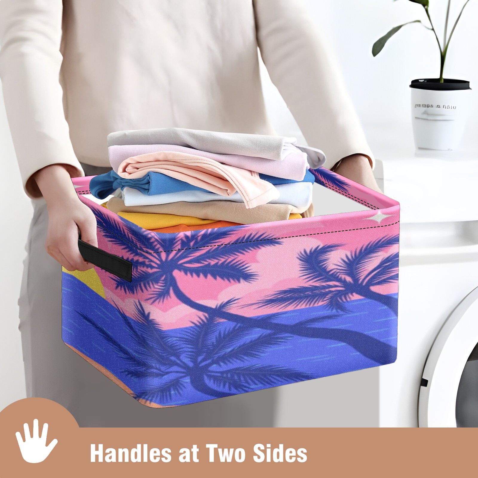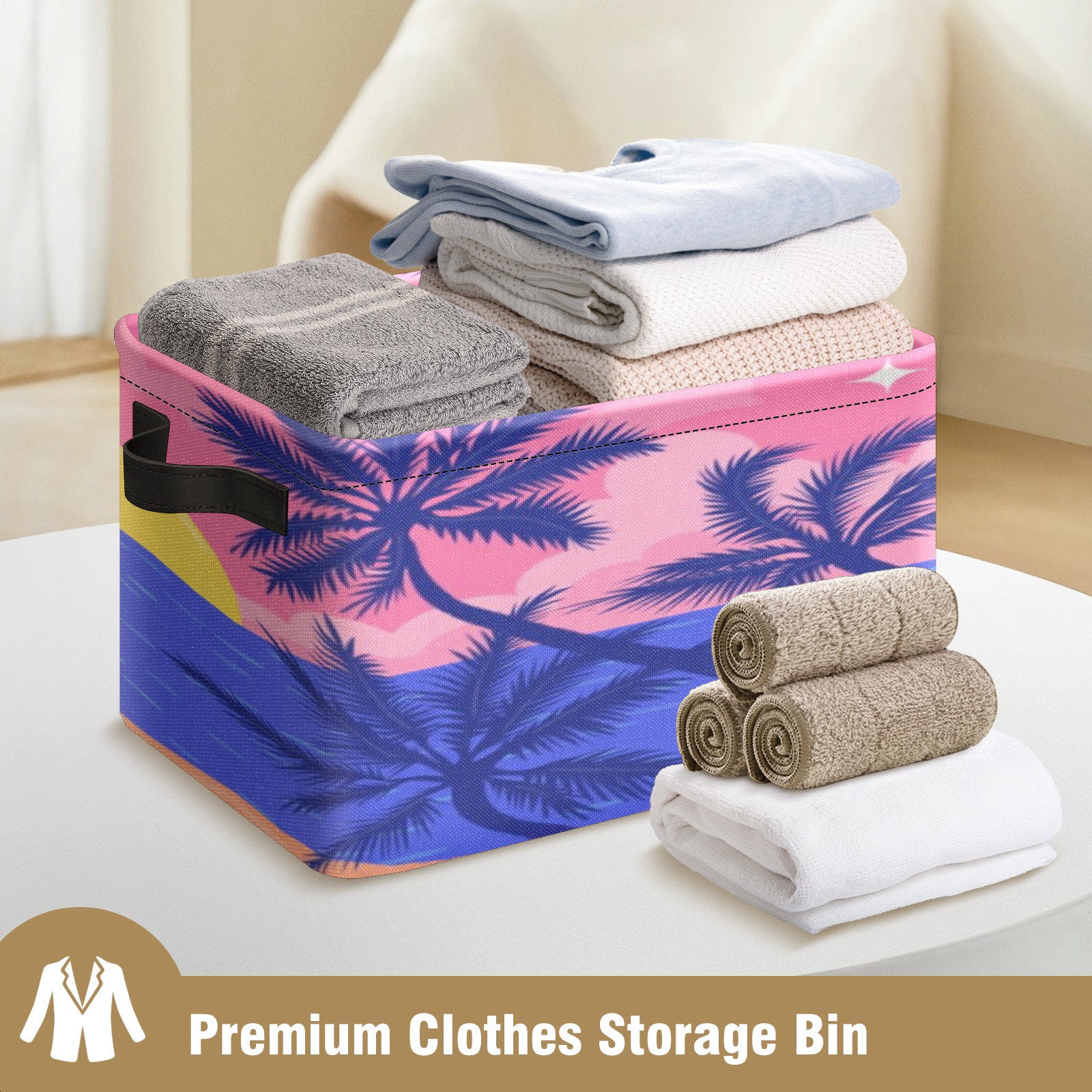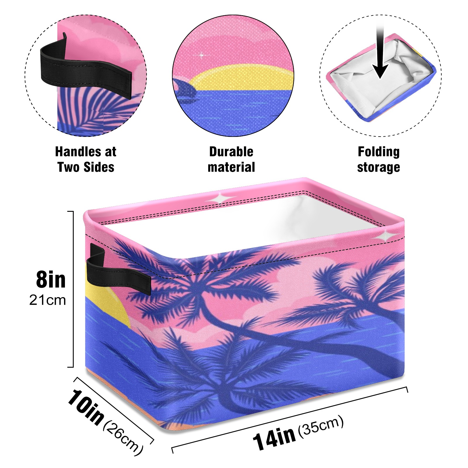 Foldable and Stackable Fabric Storage Basket for Home Organization with Handles, Decorative Closet Bins for Shelves, Laundry, and Toy Storage( Evening Beach)