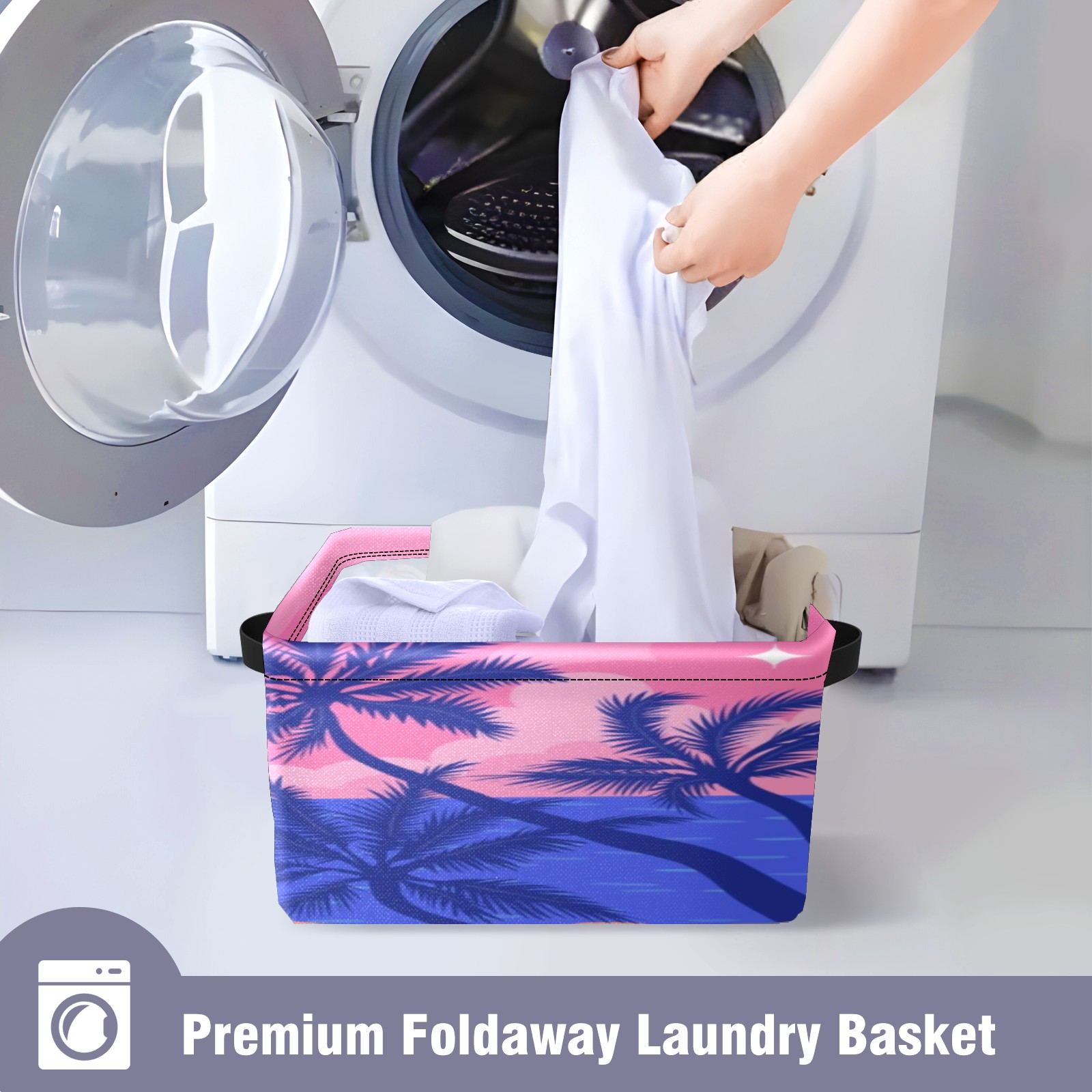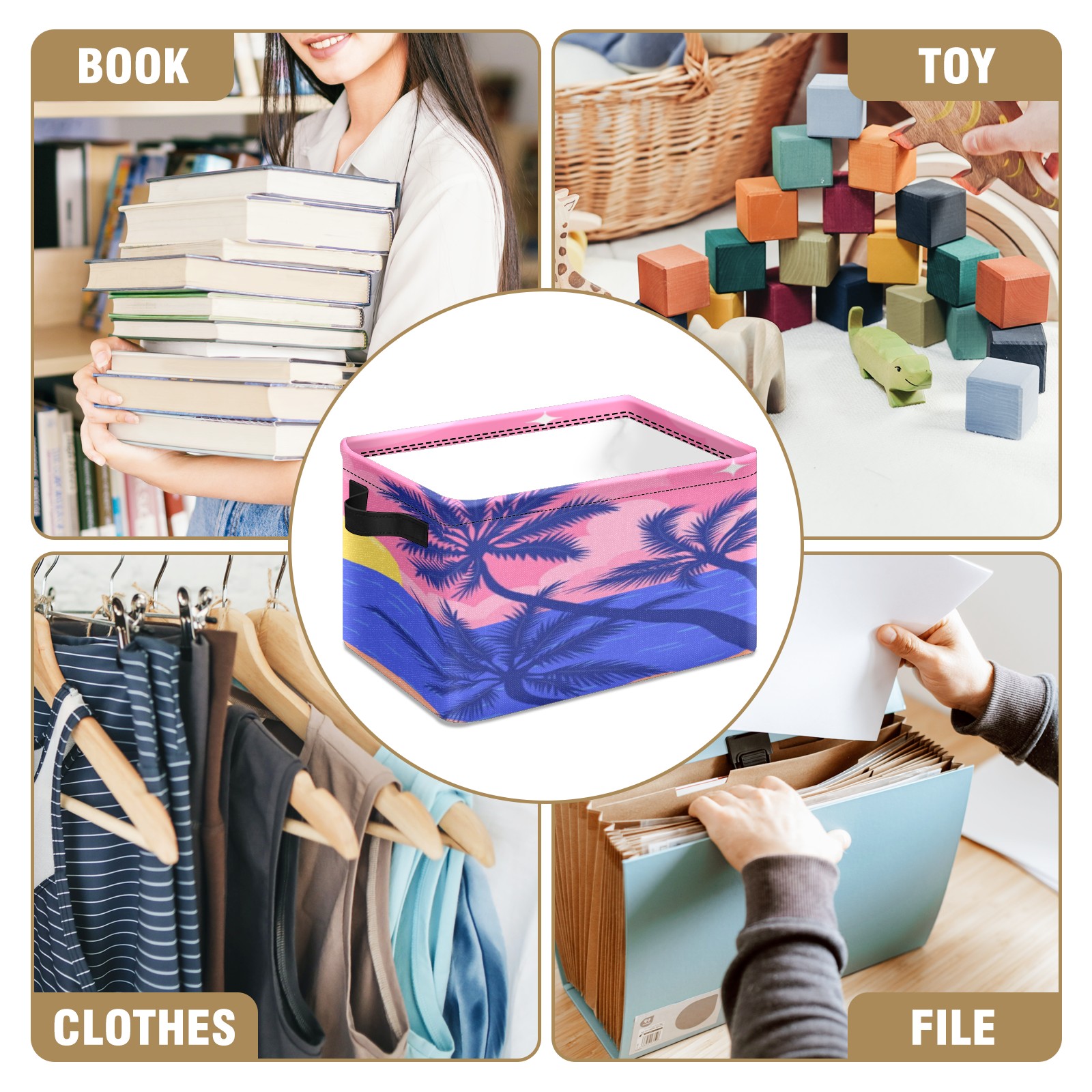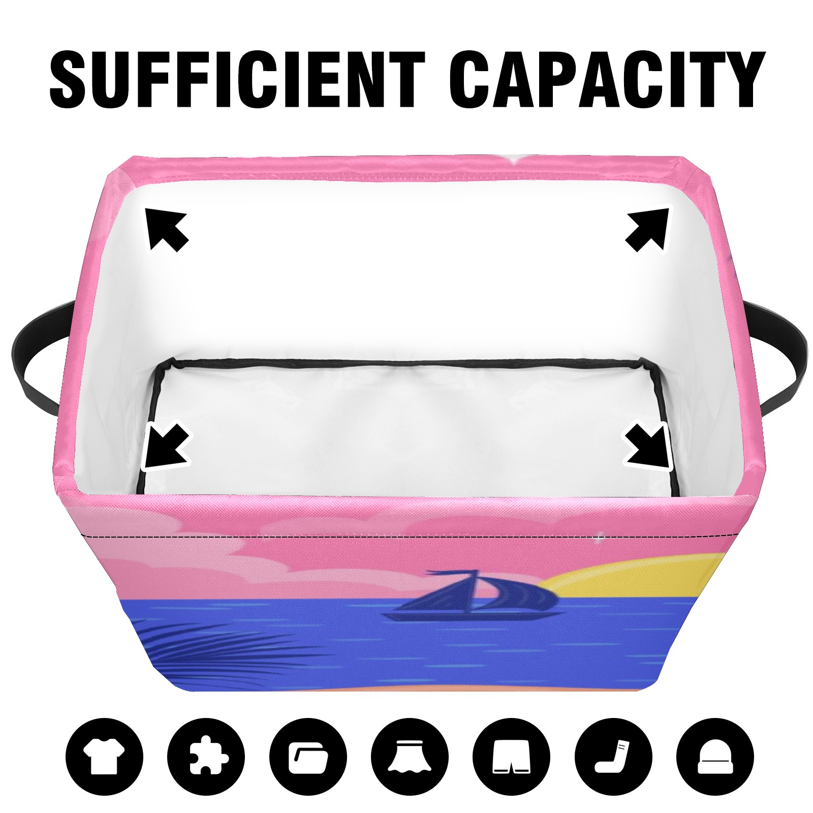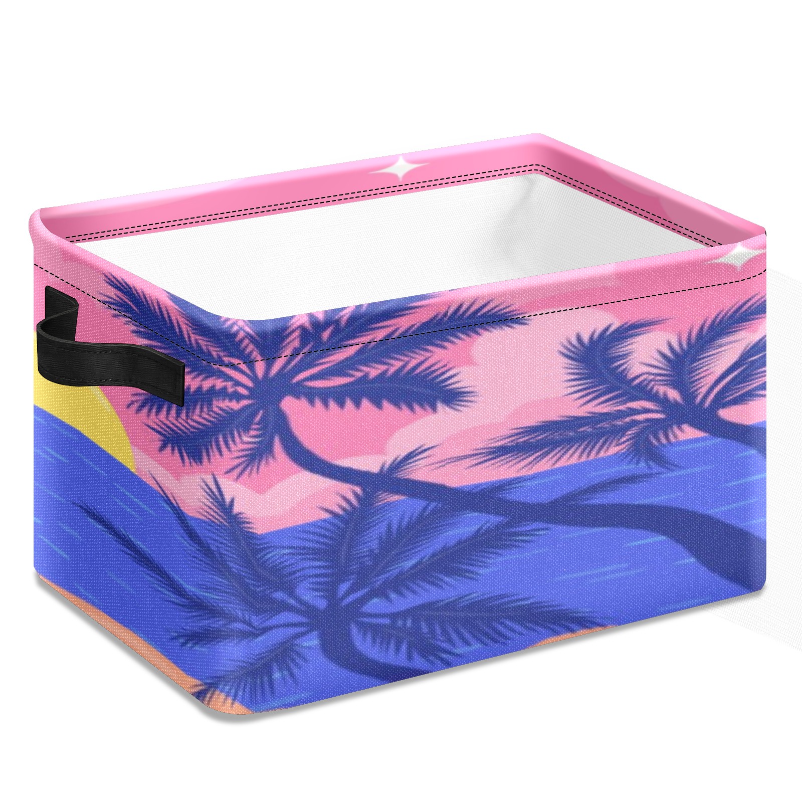 Foldable and Stackable Fabric Storage Basket for Home Organization with Handles, Decorative Closet Bins for Shelves, Laundry, and Toy Storage( Evening Beach)