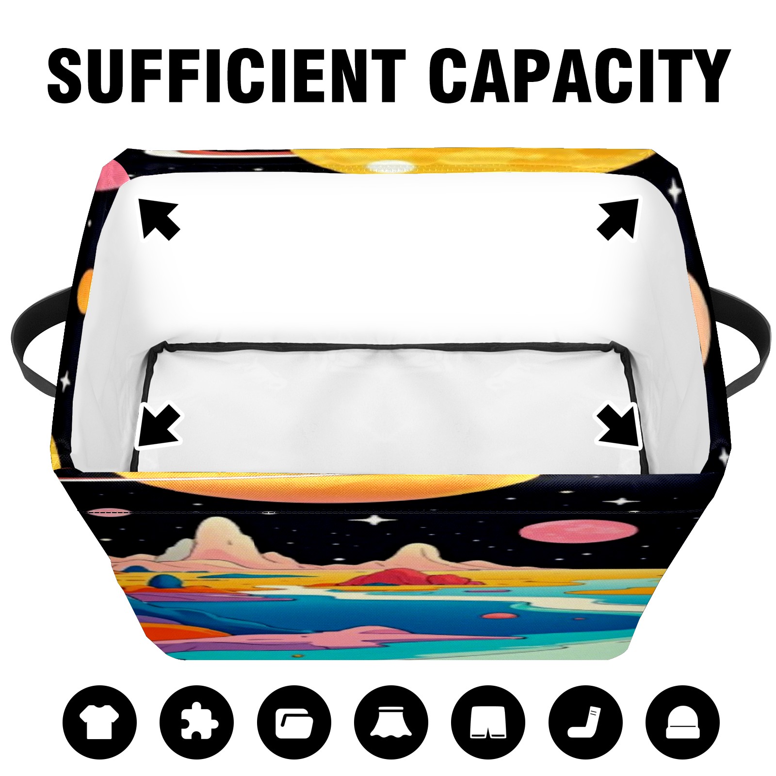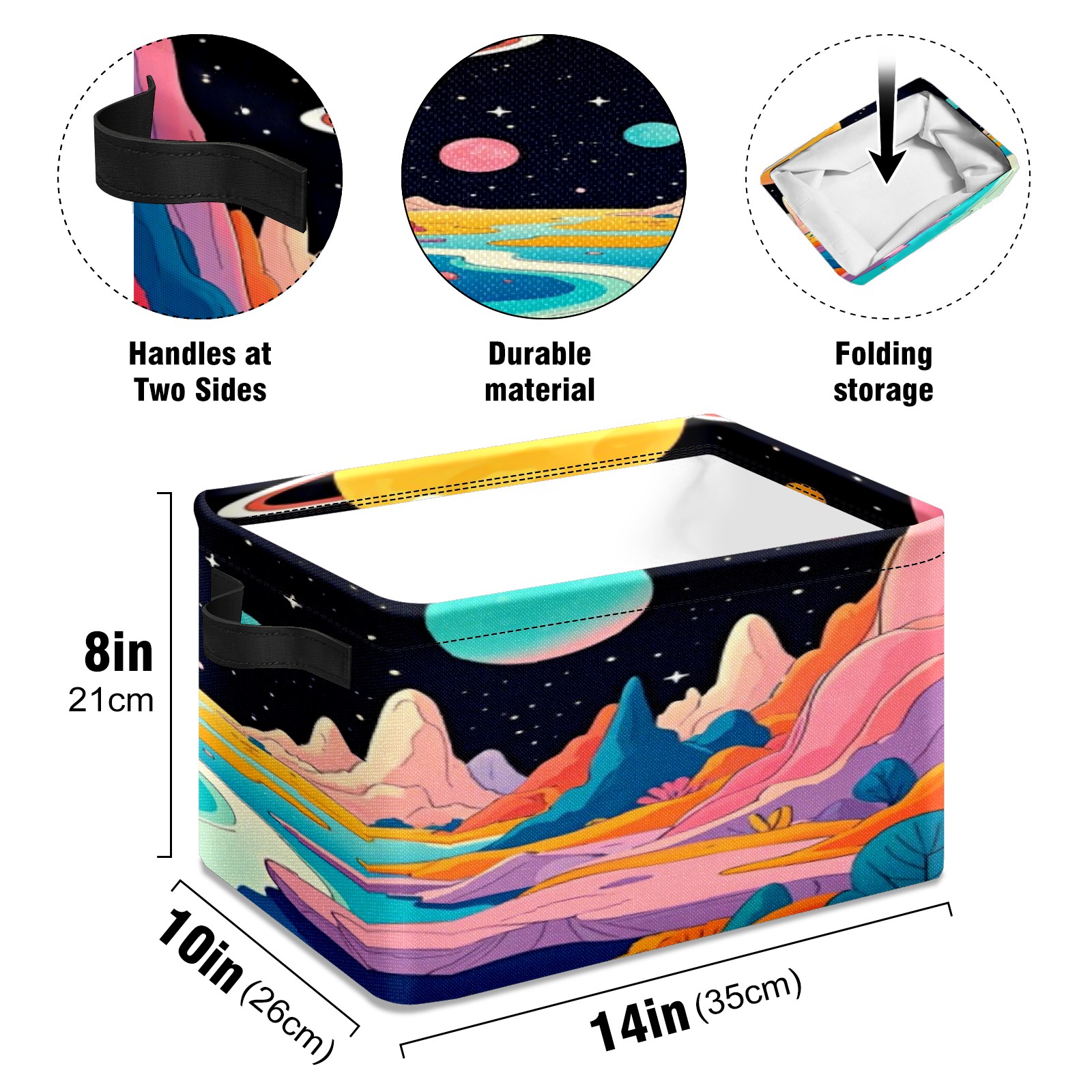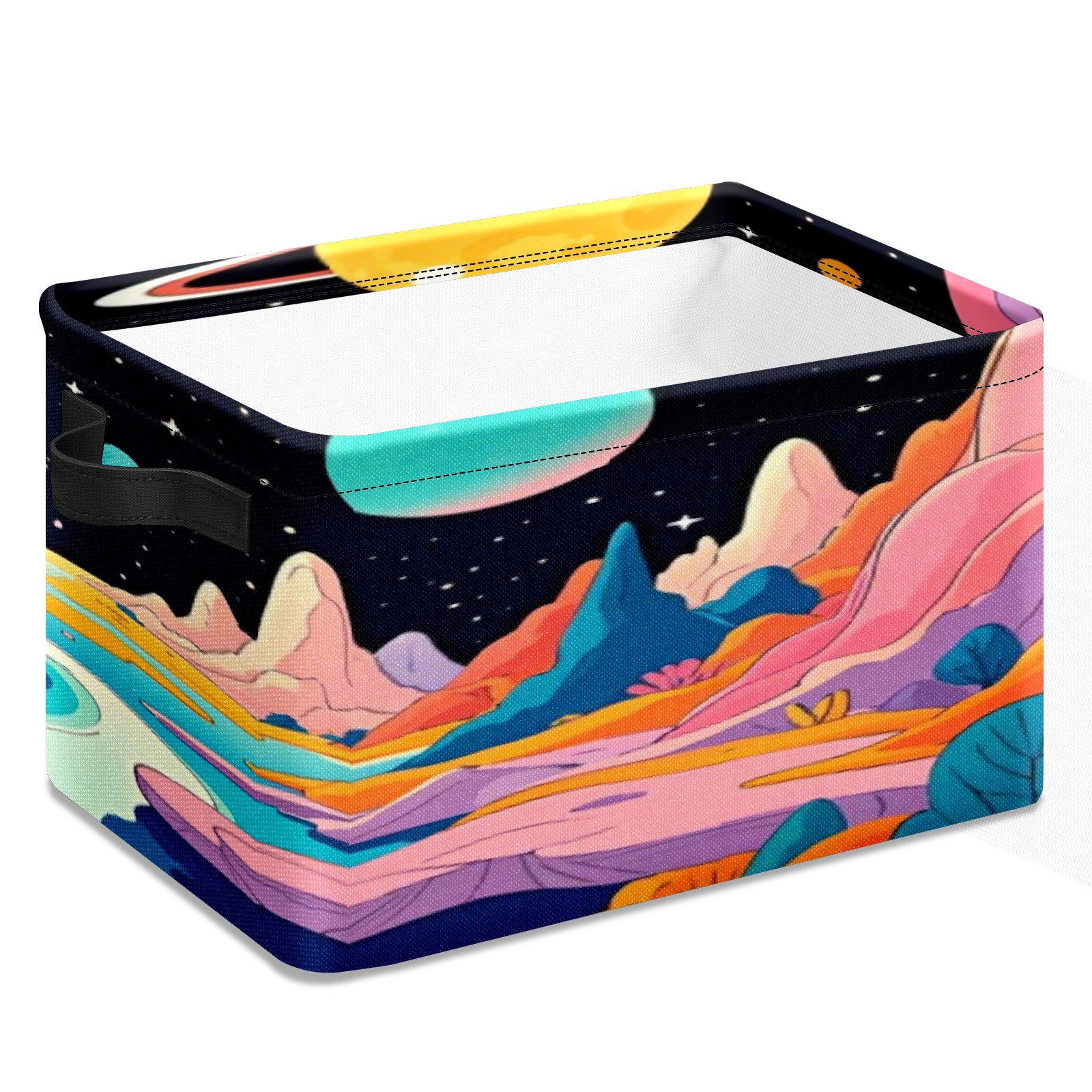 Foldable and Stackable Fabric Storage Basket for Home Organization with Handles, Decorative Closet Bins for Shelves, Laundry, and Toy Storage( Colorful Planet)