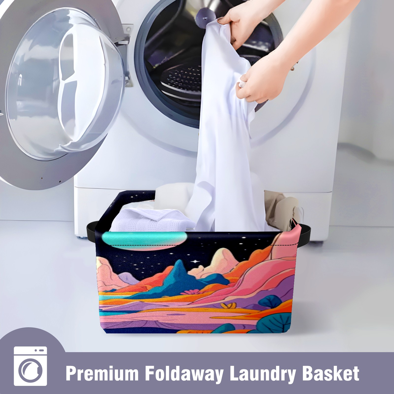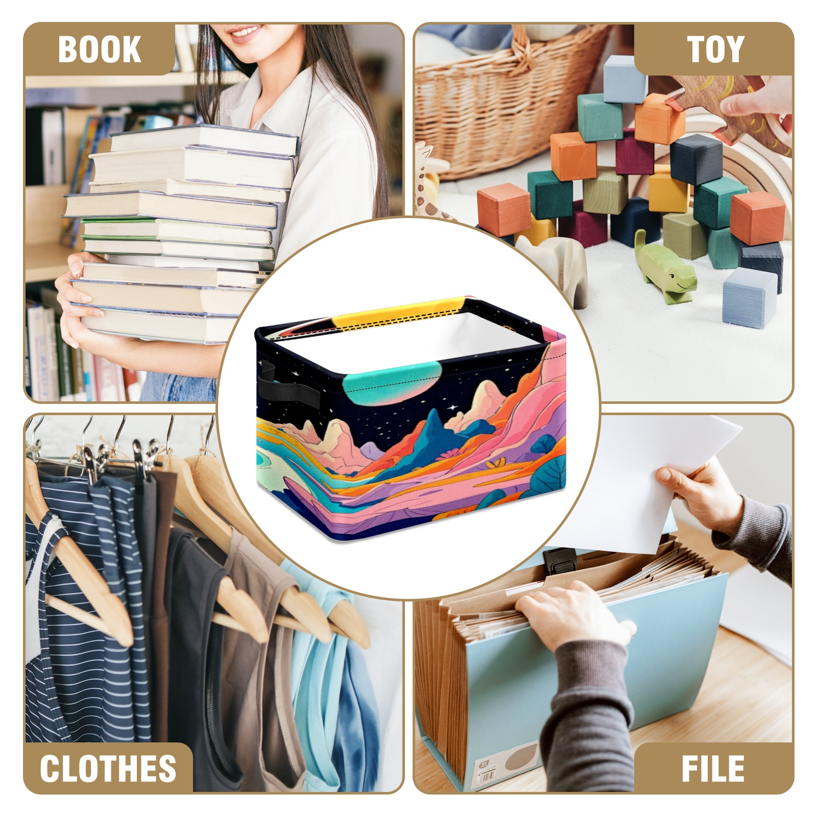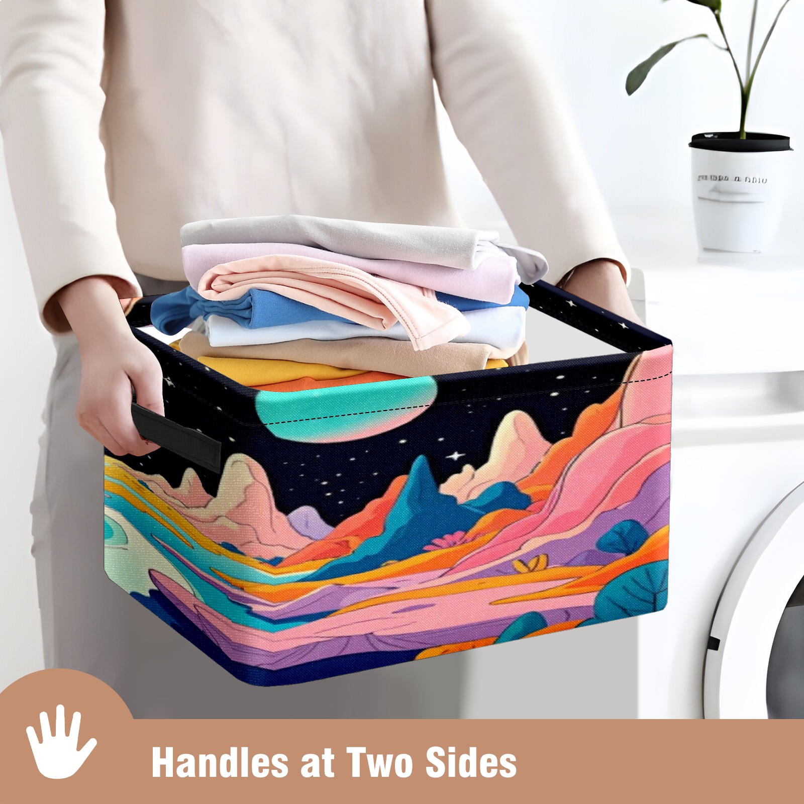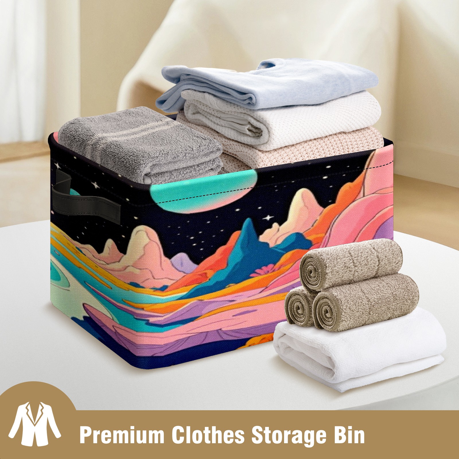 Foldable and Stackable Fabric Storage Basket for Home Organization with Handles, Decorative Closet Bins for Shelves, Laundry, and Toy Storage( Colorful Planet)