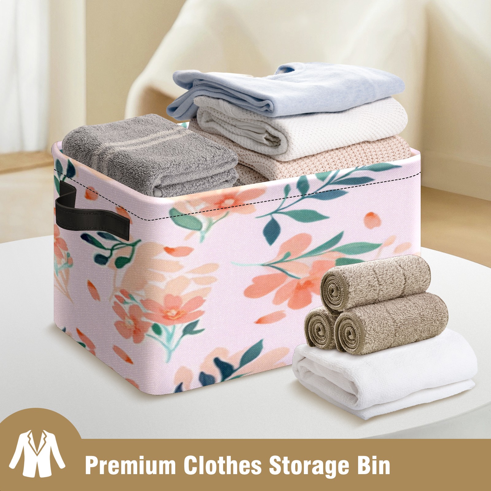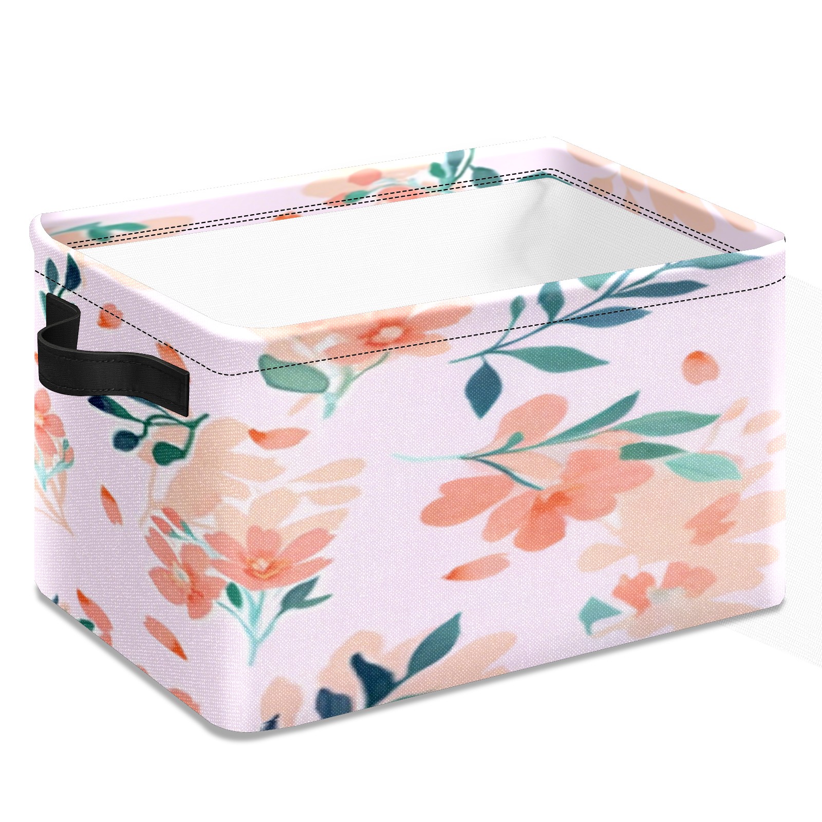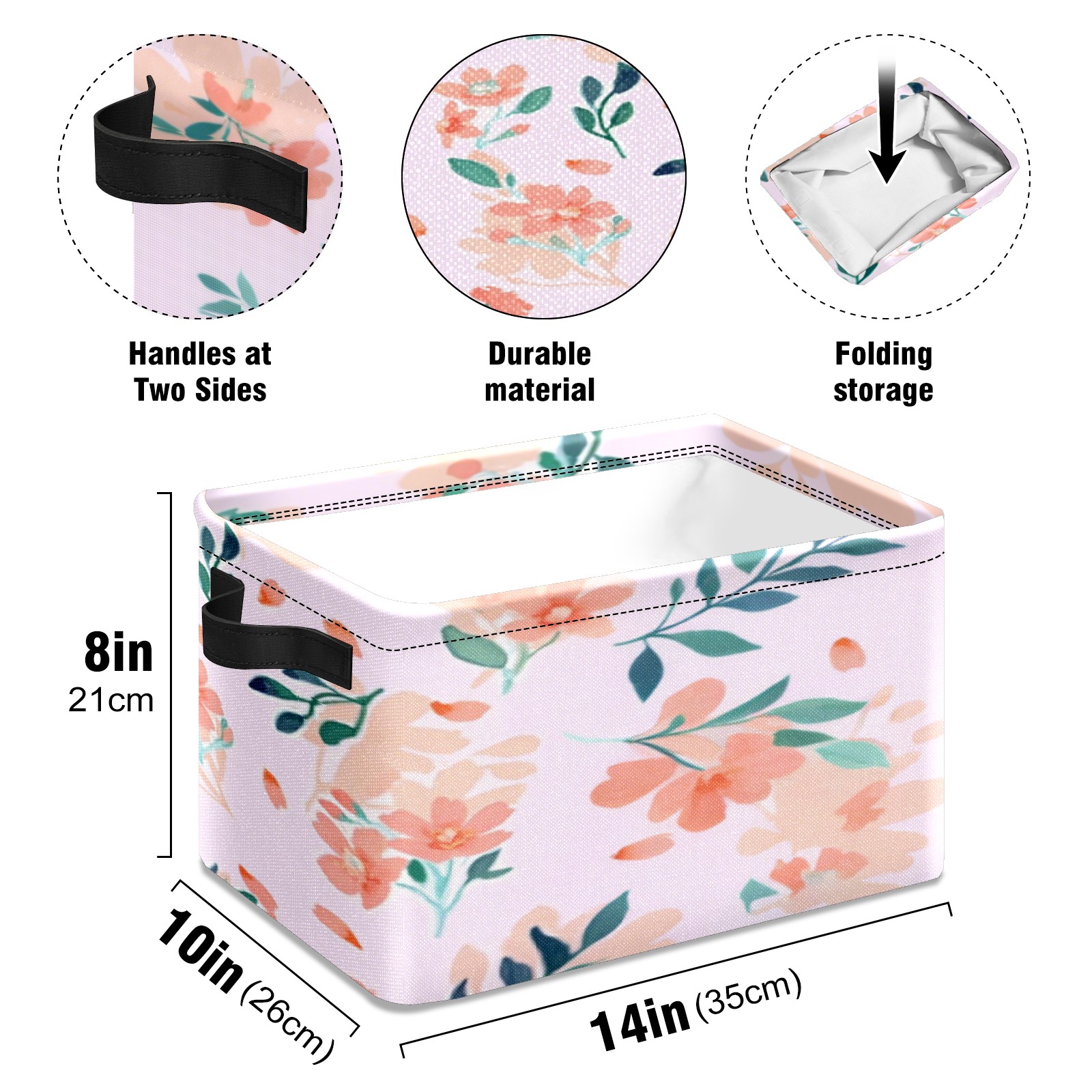 Foldable and Stackable Fabric Storage Basket for Home Organization with Handles, Decorative Closet Bins for Shelves, Laundry, and Toy Storage( Peach - Colored Flowers)