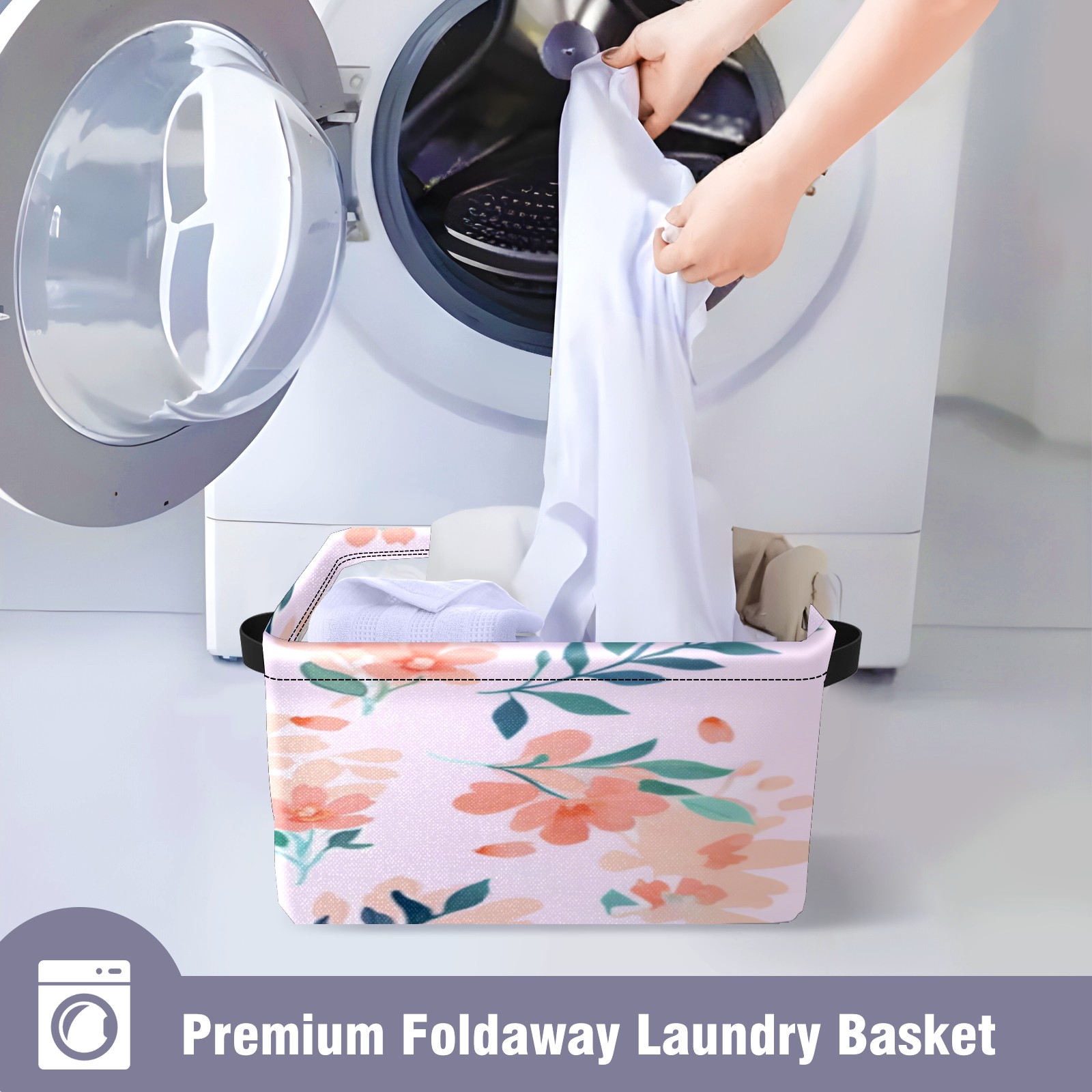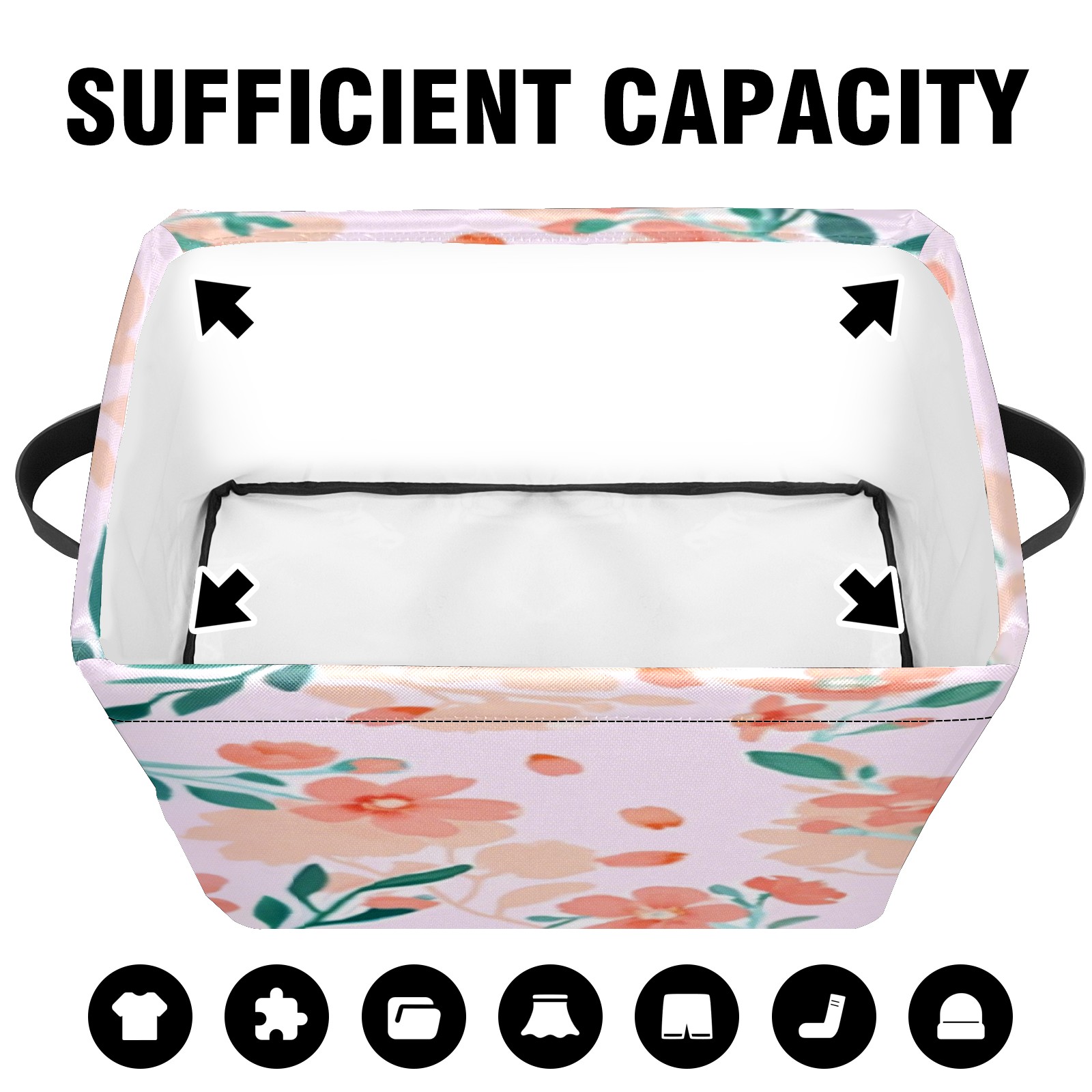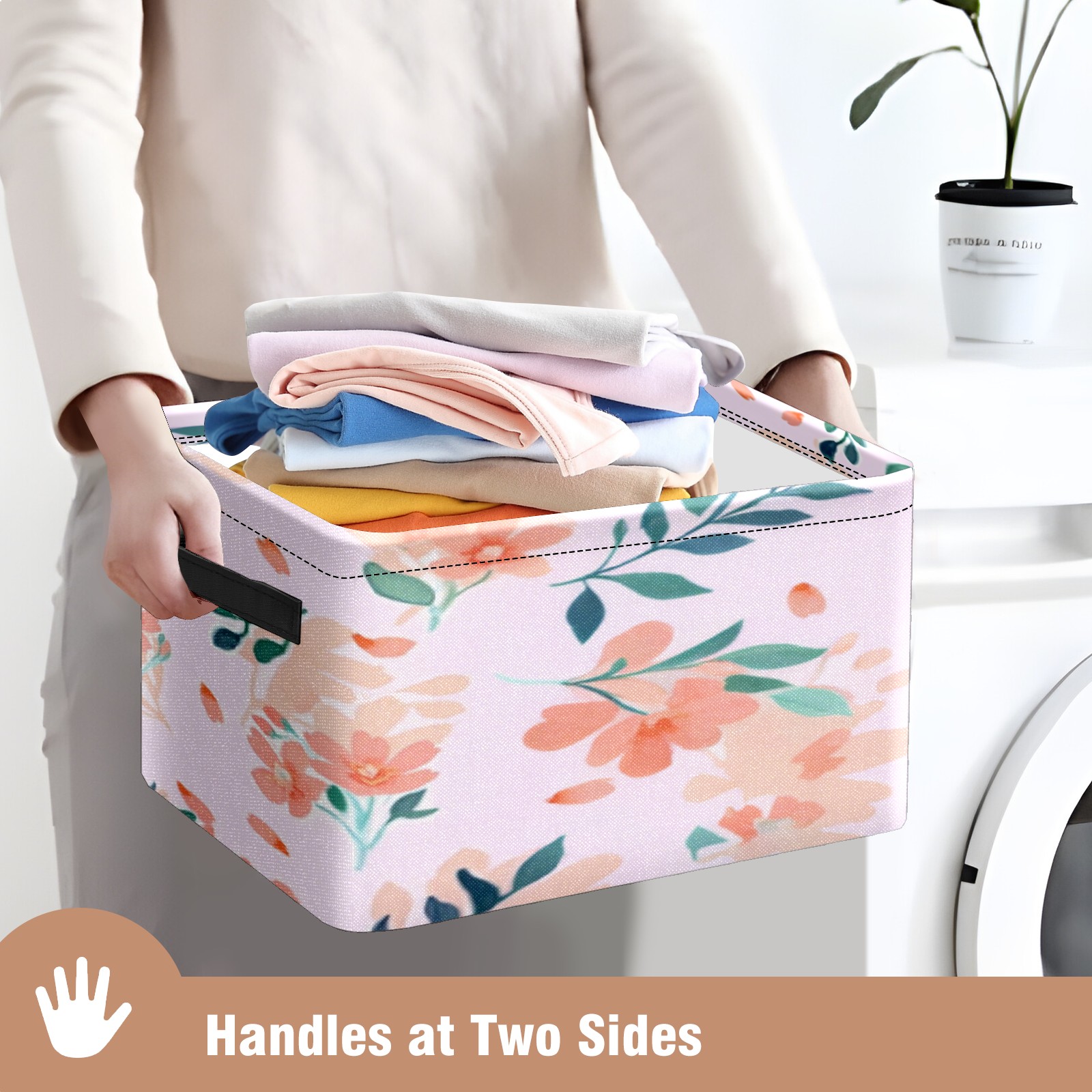 Foldable and Stackable Fabric Storage Basket for Home Organization with Handles, Decorative Closet Bins for Shelves, Laundry, and Toy Storage( Peach - Colored Flowers)
