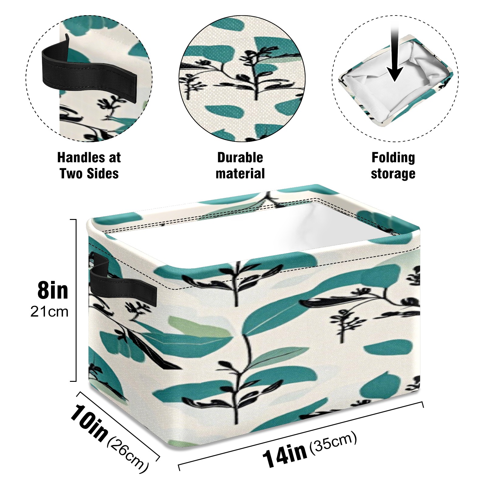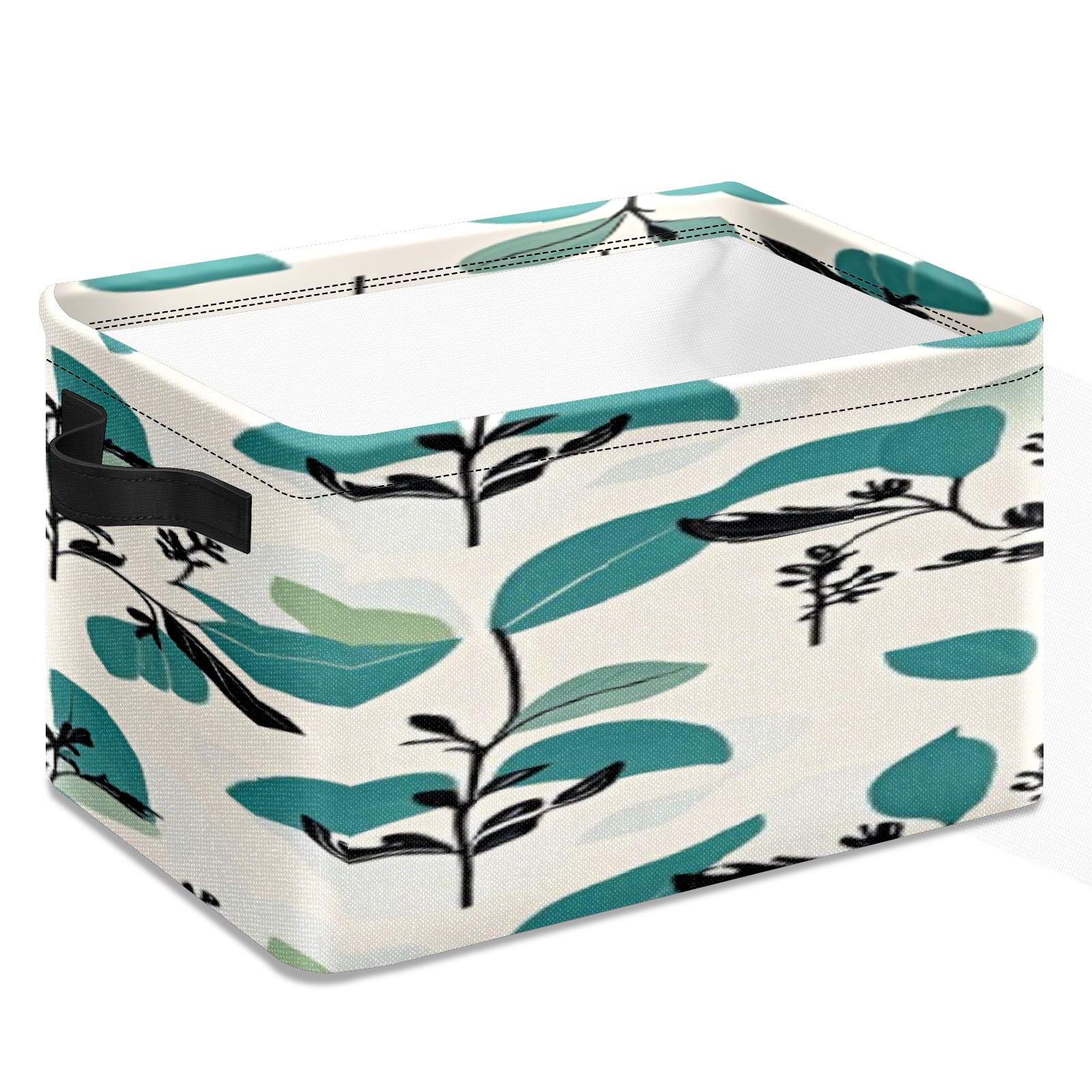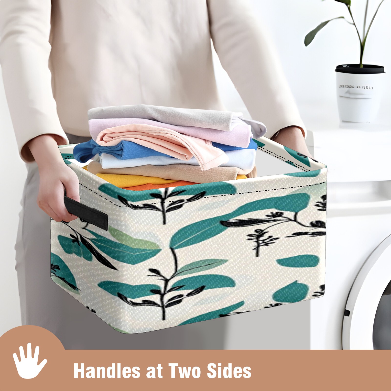 Foldable and Stackable Fabric Storage Basket for Home Organization with Handles, Decorative Closet Bins for Shelves, Laundry, and Toy Storage( Fresh Plant)