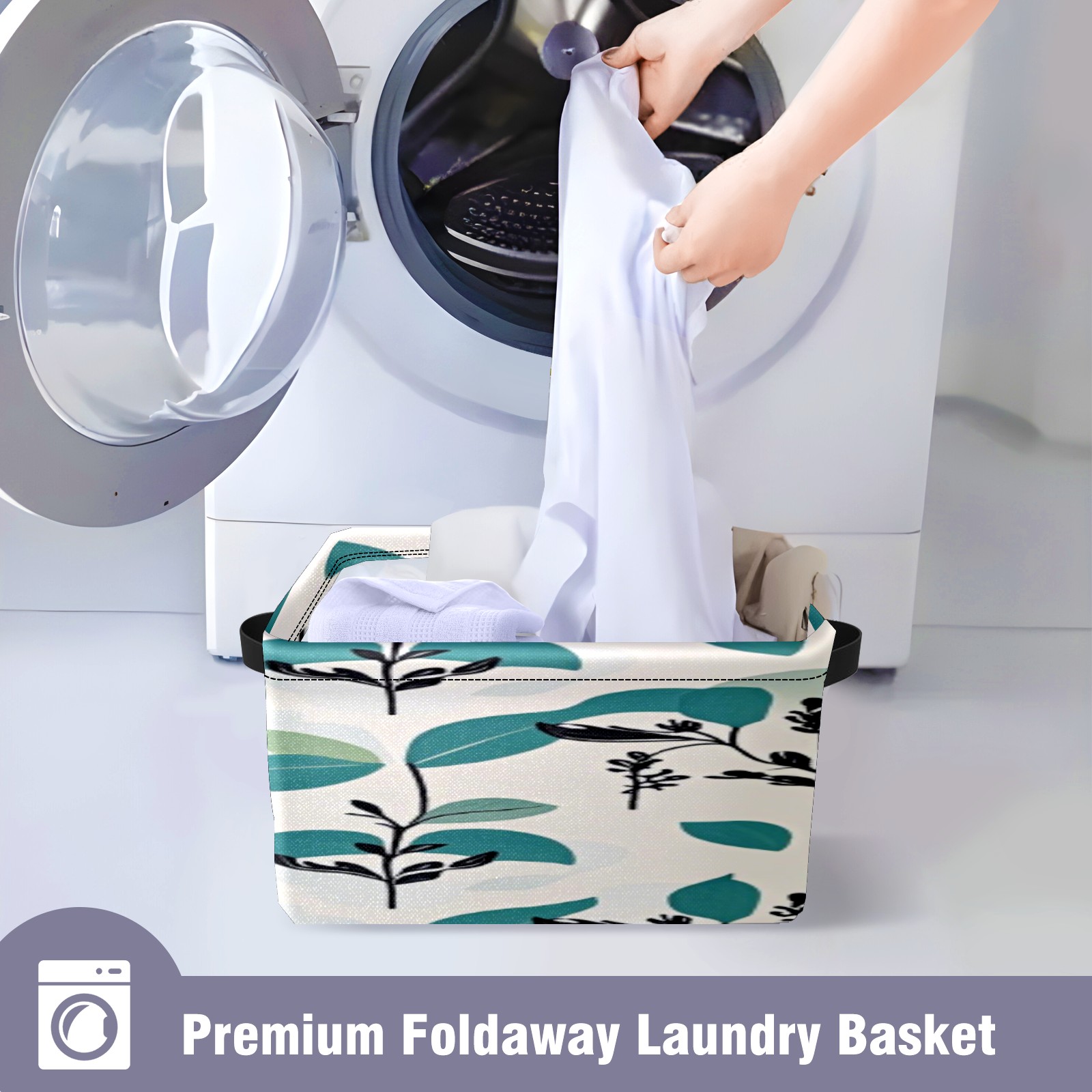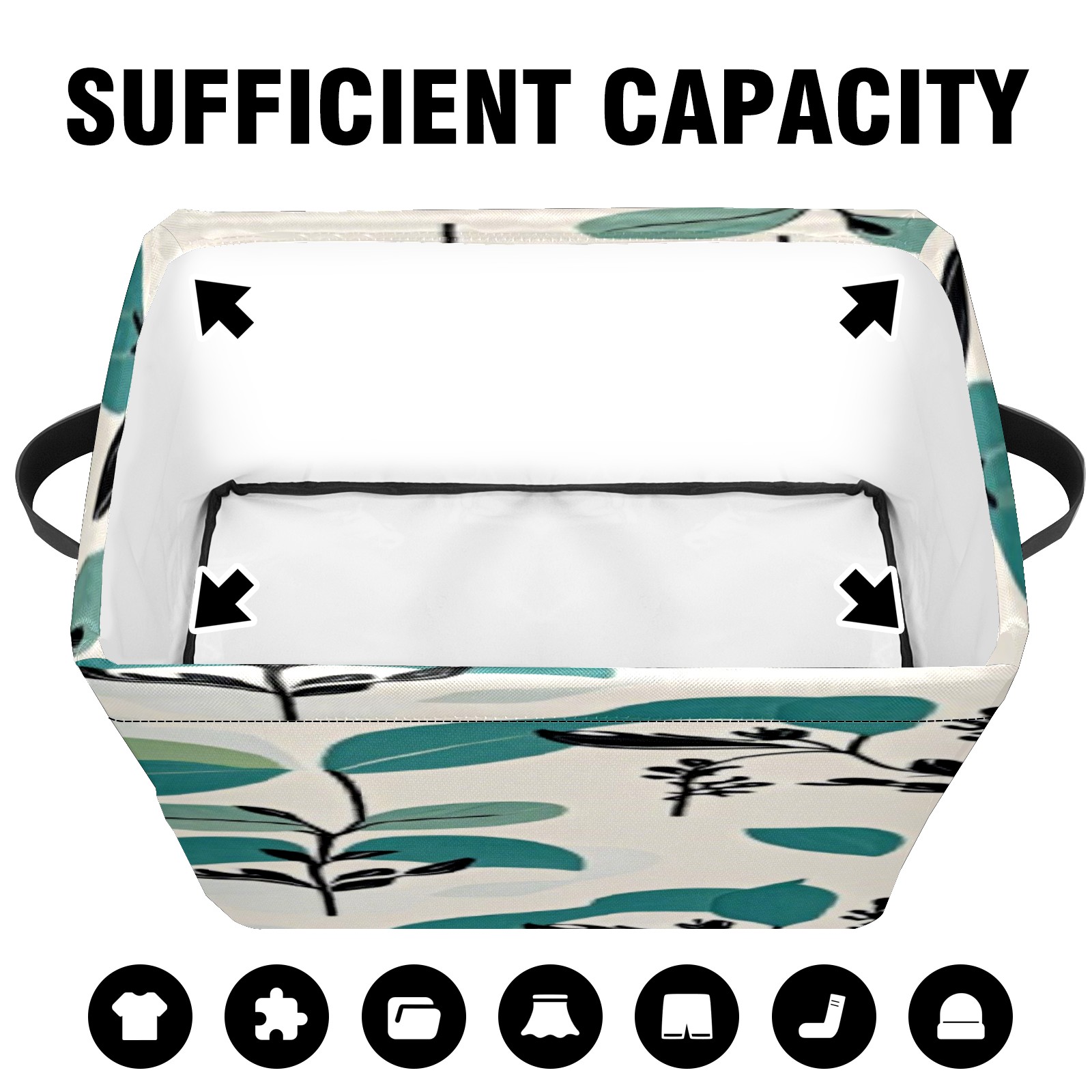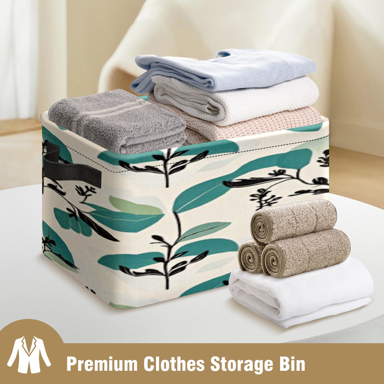 Foldable and Stackable Fabric Storage Basket for Home Organization with Handles, Decorative Closet Bins for Shelves, Laundry, and Toy Storage( Fresh Plant)