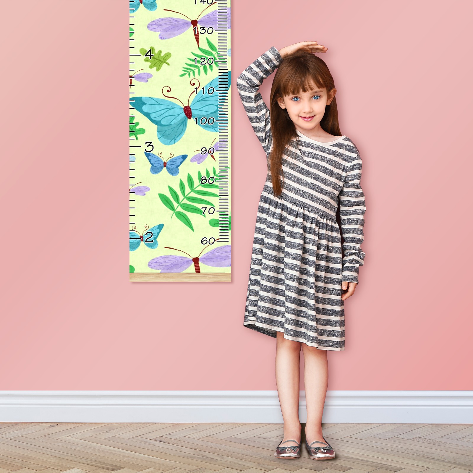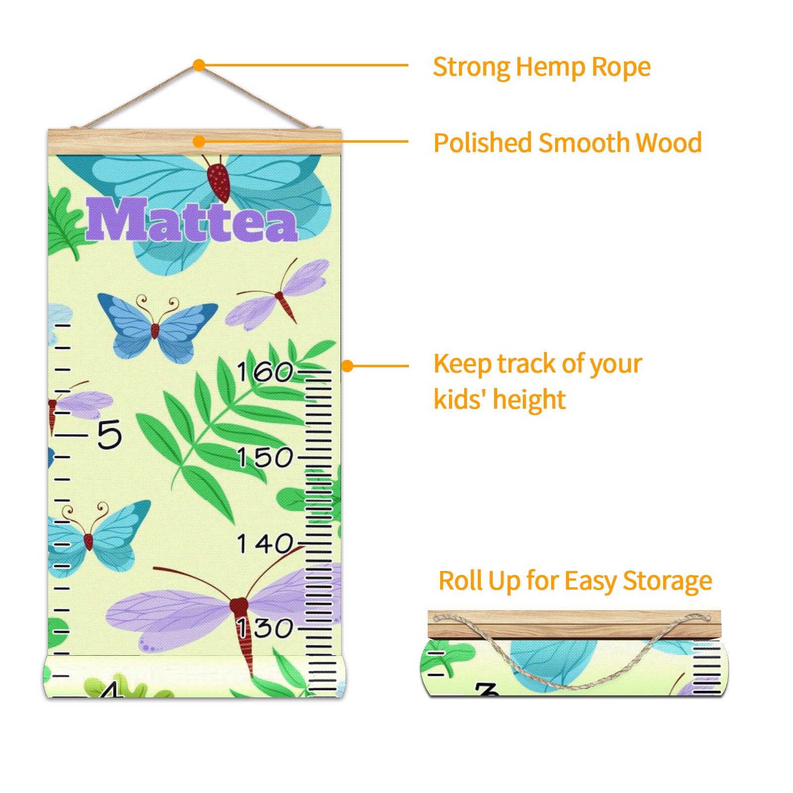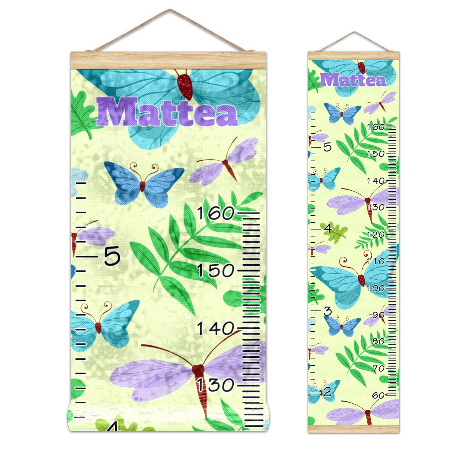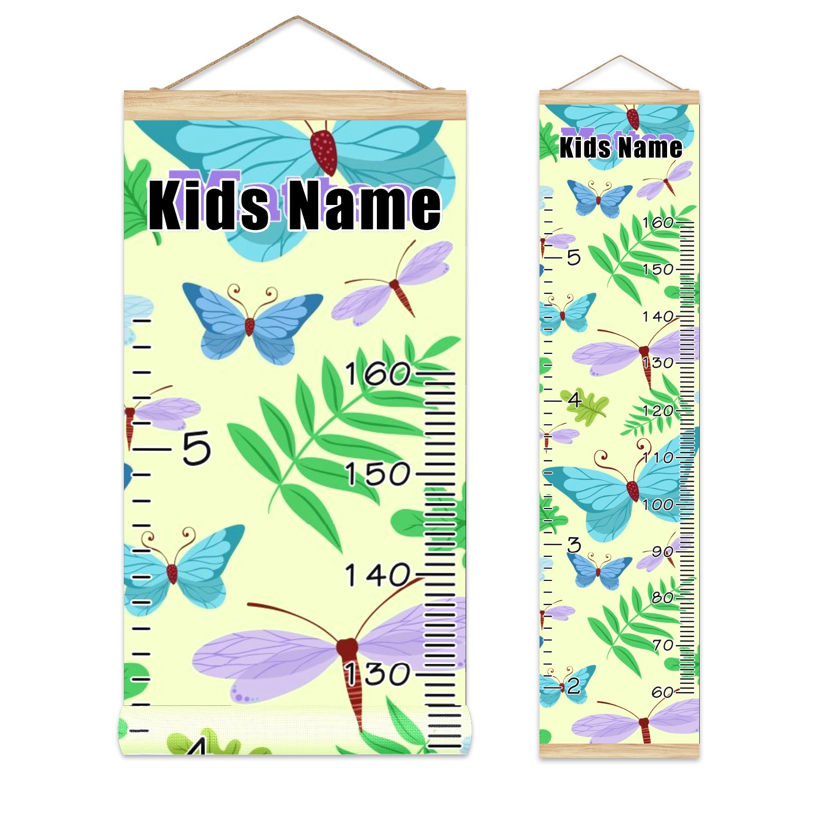 Personalized Kids Name Growth Chart Ruler for Wall Wood Frame Canvas Height Measure Chart 13.4x56 in Hanging Growth Chart Butterflies Green10.27 Boys Girls Room Decor