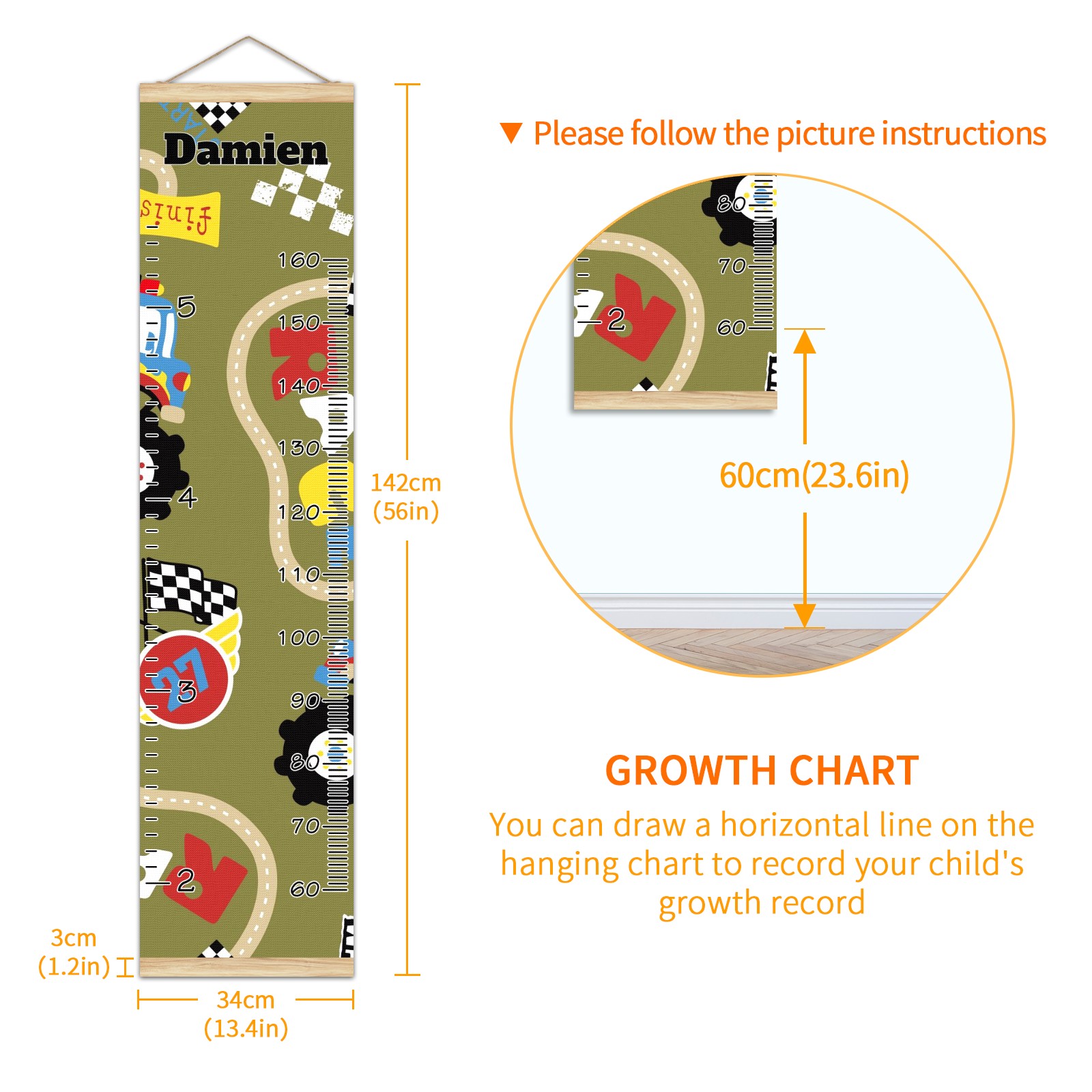 <p><b>Features:</b></p> <p>Rope for Hanging</p> <p>Material: Linen + Wood</p> <p>Dimensions: 13.4x56 inches</p> <p>Package Included: 1 * Baby Growth Chart</p> <p><b>Baby height growth chart can be used anywhere</b></p> <p>Ideal for kids nursery decoration, kids bedroom, interior walls or windows, playroom, living room, homedecoration.Add name and make the growth chart special!</p> <p><b>Easy to fold and carry</b></p> <p>With rope at the top of the growth chart, it is easy to install and remove.You can fold it and unfold any time any where.</p> <p><b>Perfect Gift Idea for Kids</b></p> <p>Environmental and non-toxic for kids use, it must be a perfect gift for baby, kids, girls, and boys.This is a best choice for your friend who have kids or baby as a popular gift.</p> <p><b>Easy to read</b></p> <p>Measurement accrate with 2 scales, Centimeters and feet. The letters are big enough, very easy to read.</p> <p><b>60cm(23.6inch) Over Ground Design</b></p> <p>Not only can protect from dust and other damage, but also will not interfere in floor cleaning.</p>