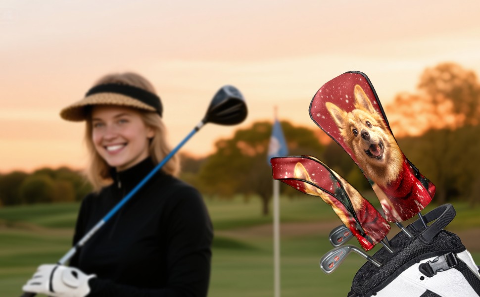 Golf Club Head Cover, High Quality PU Leather Driver and Wood Club Head Cover with Anti-Scratch Lining, Universal Gift for Men and Women Christmas Animals