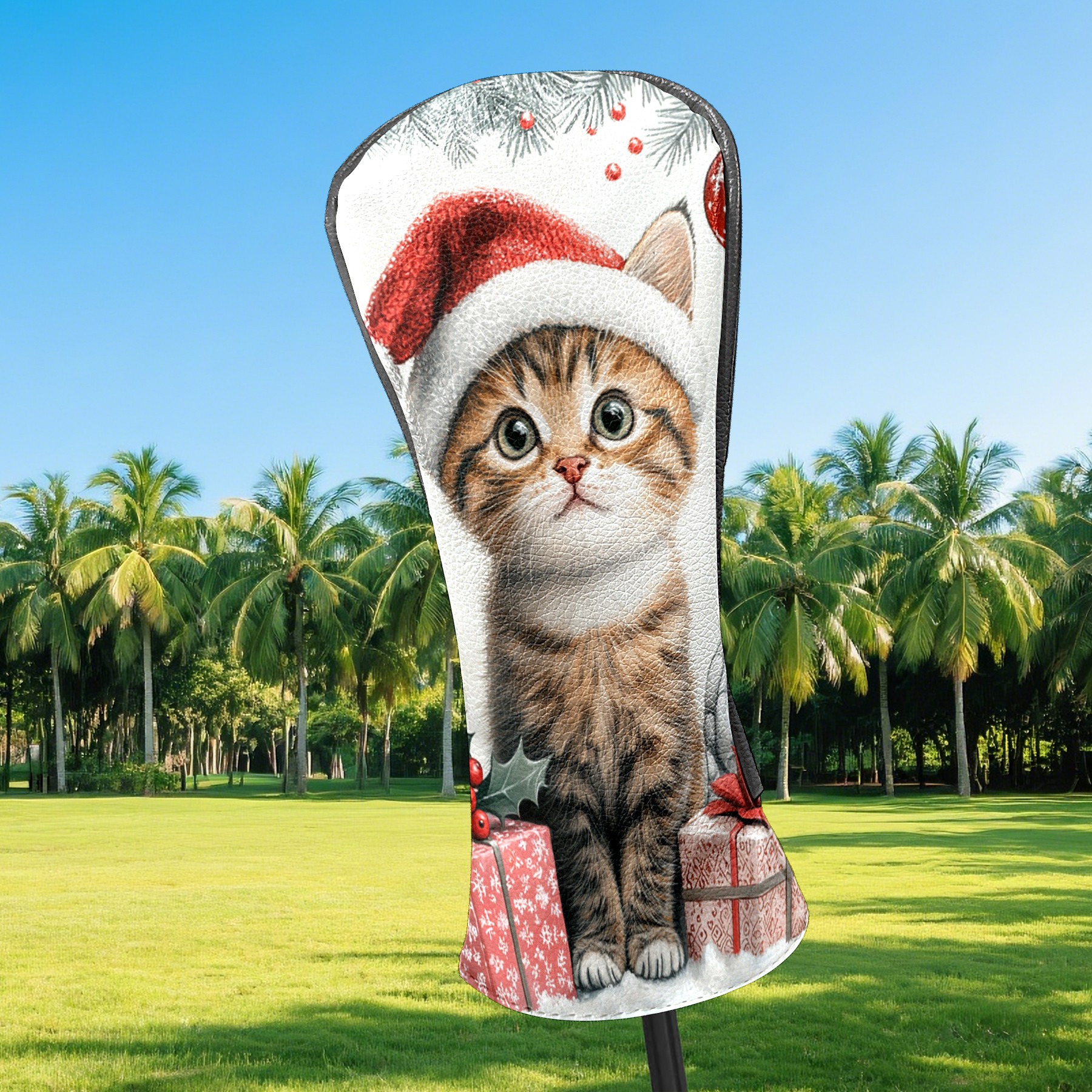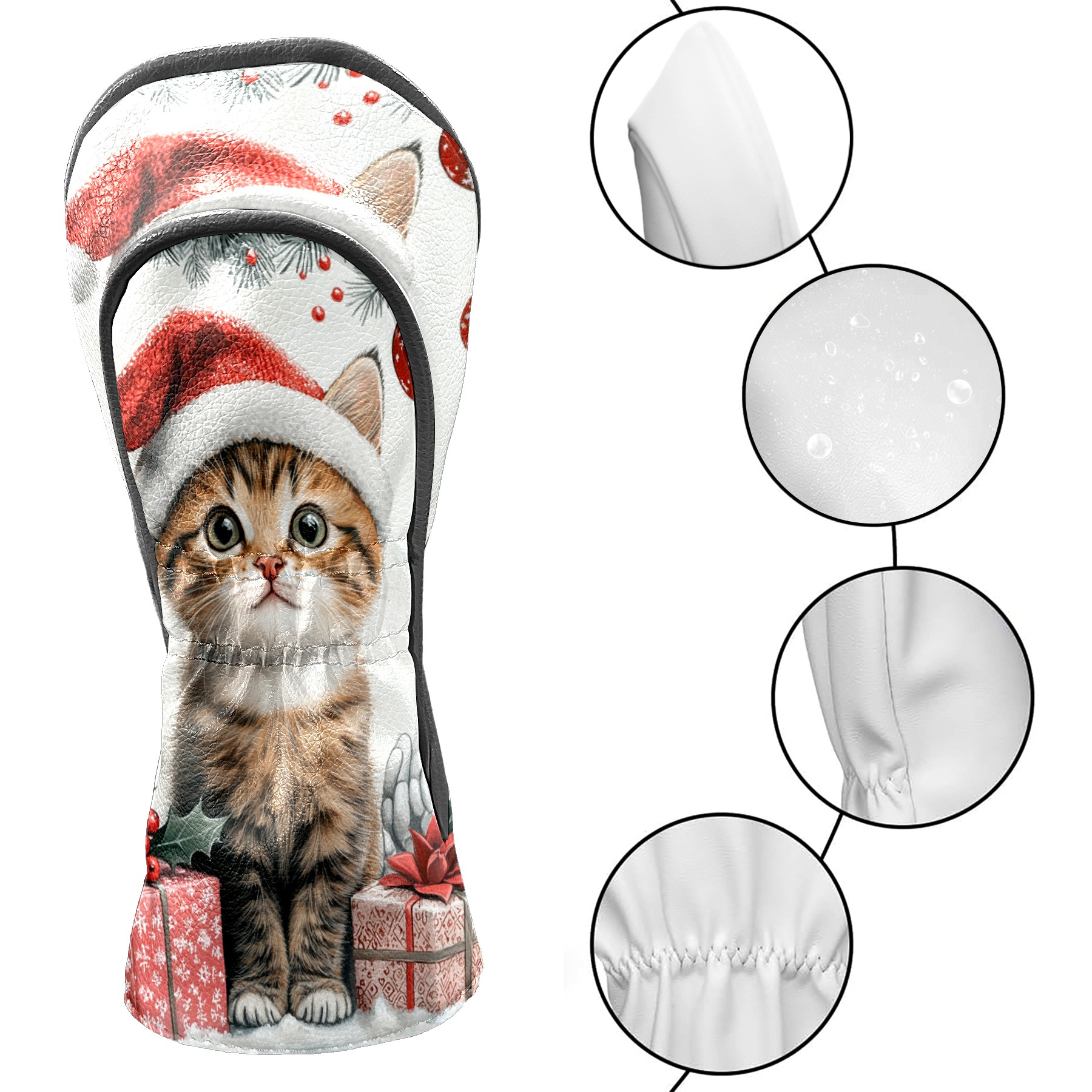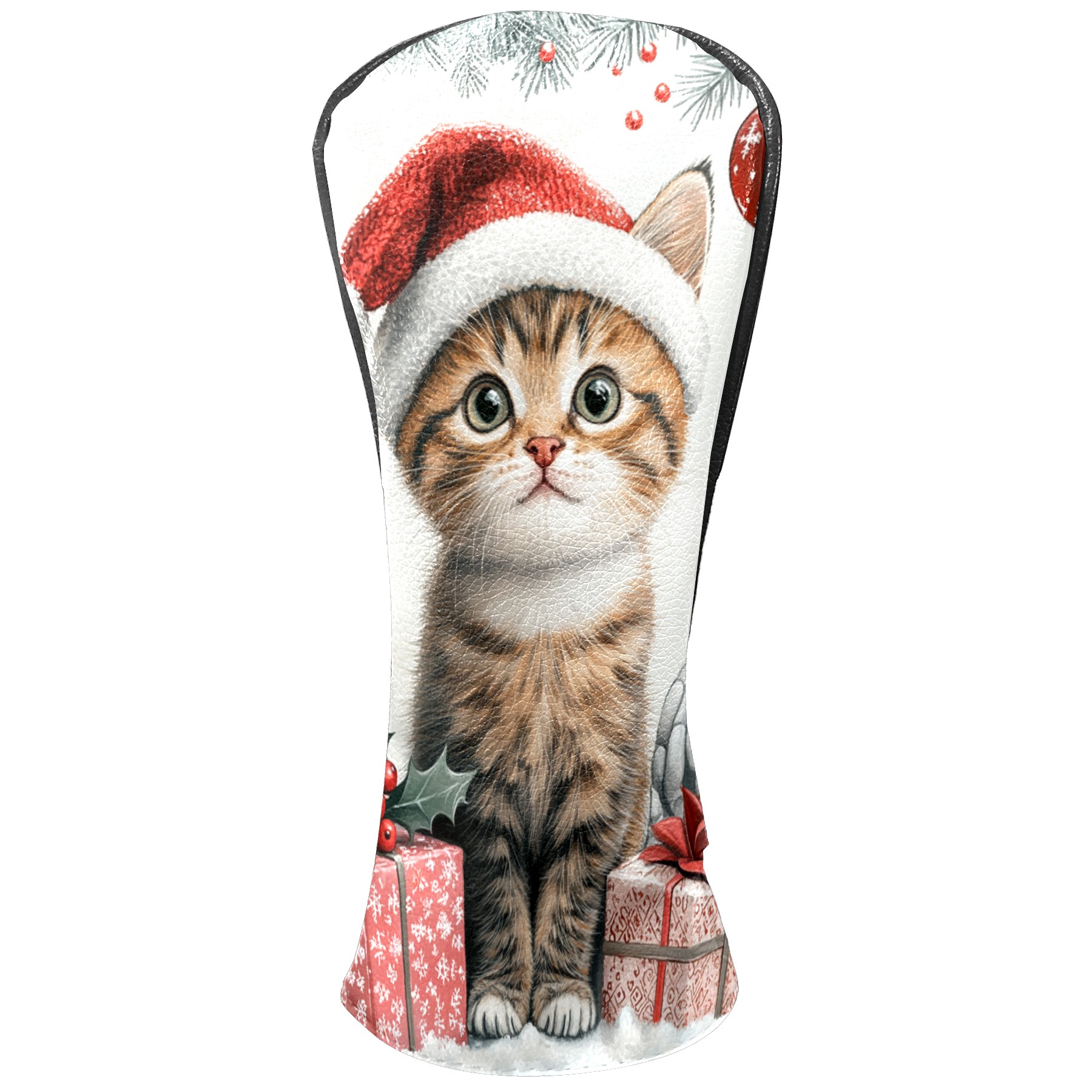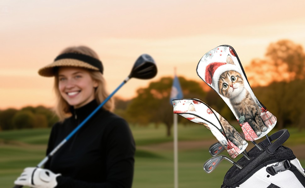 Golf Club Head Cover, High Quality PU Leather Driver and Wood Club Head Cover with Anti-Scratch Lining, Universal Gift for Men and Women Cute Cat Christmas Santa Hat