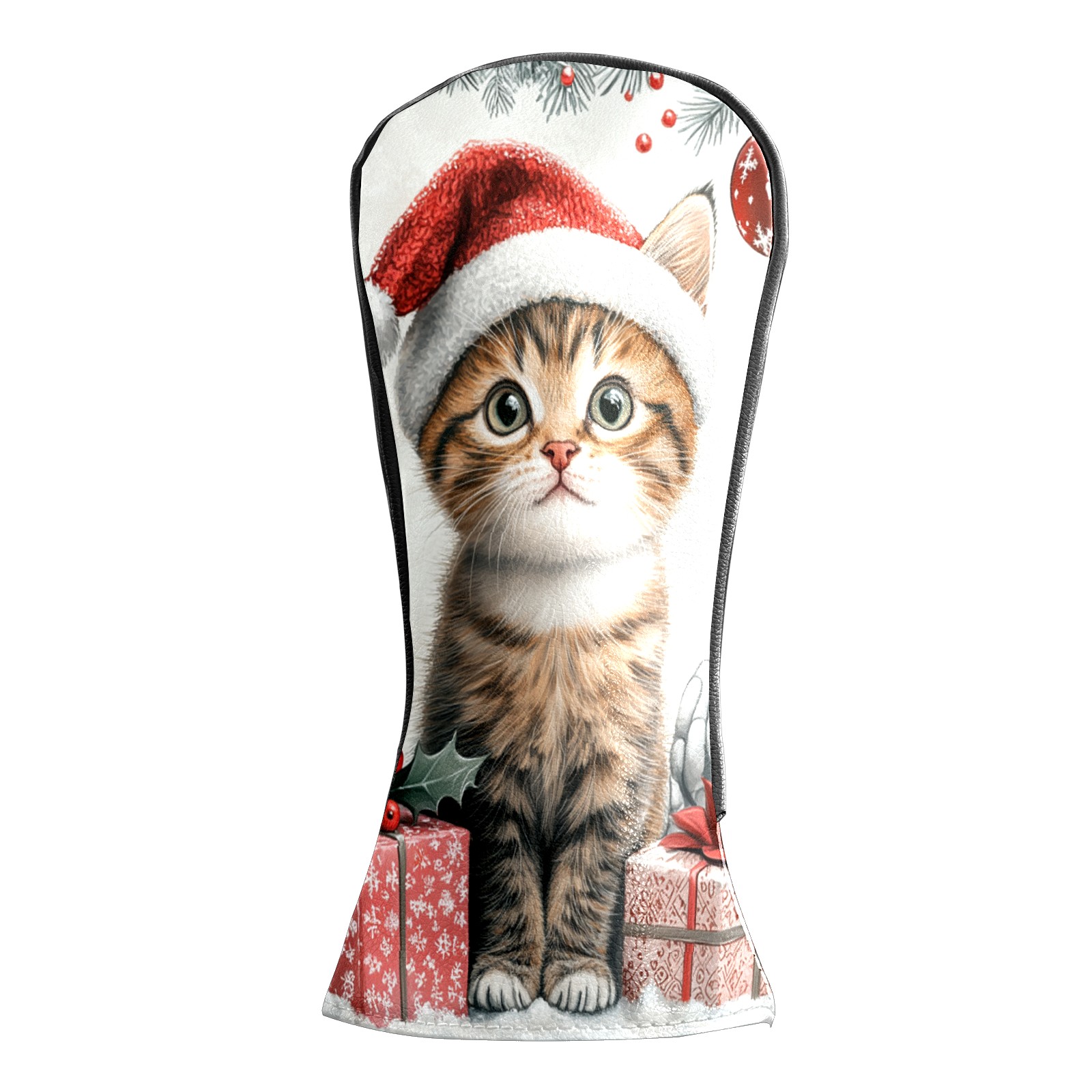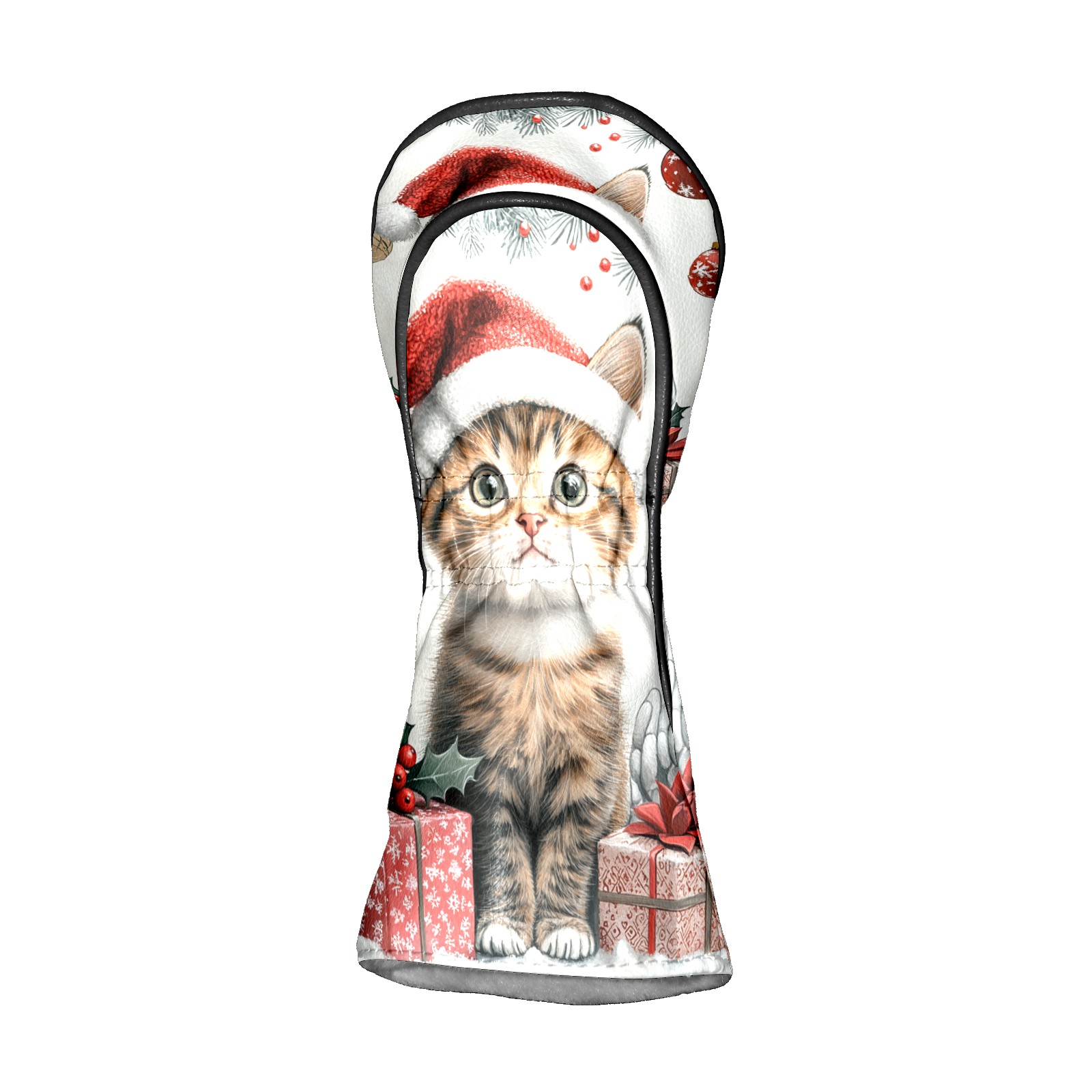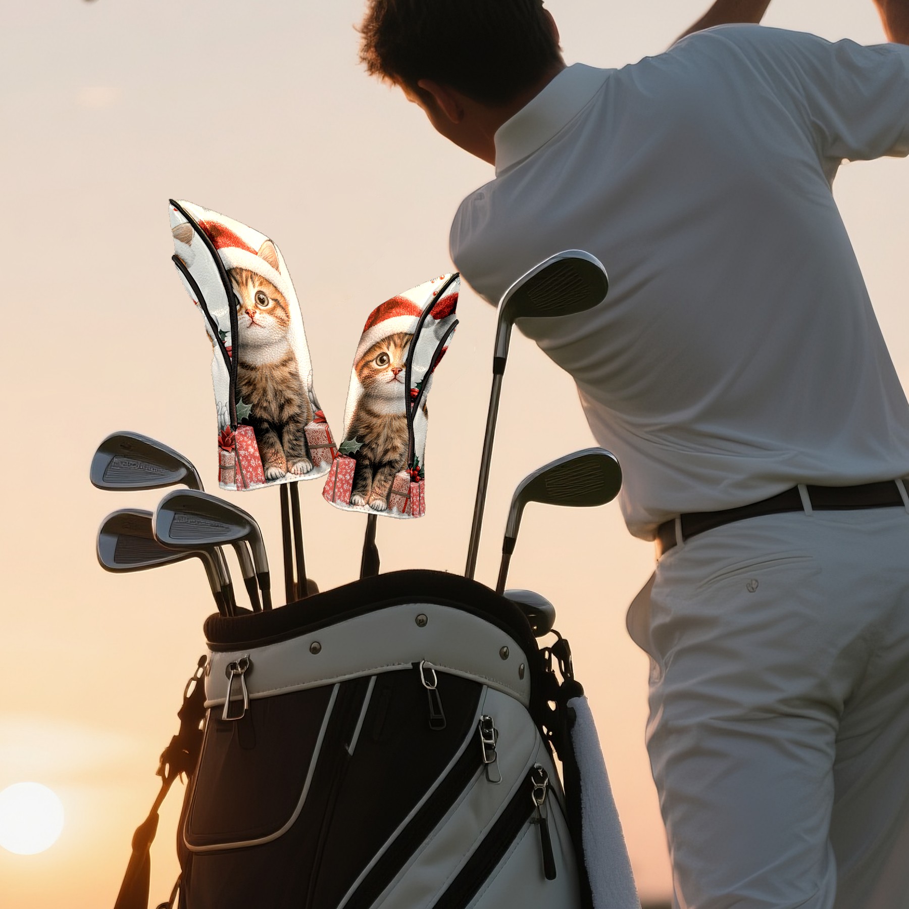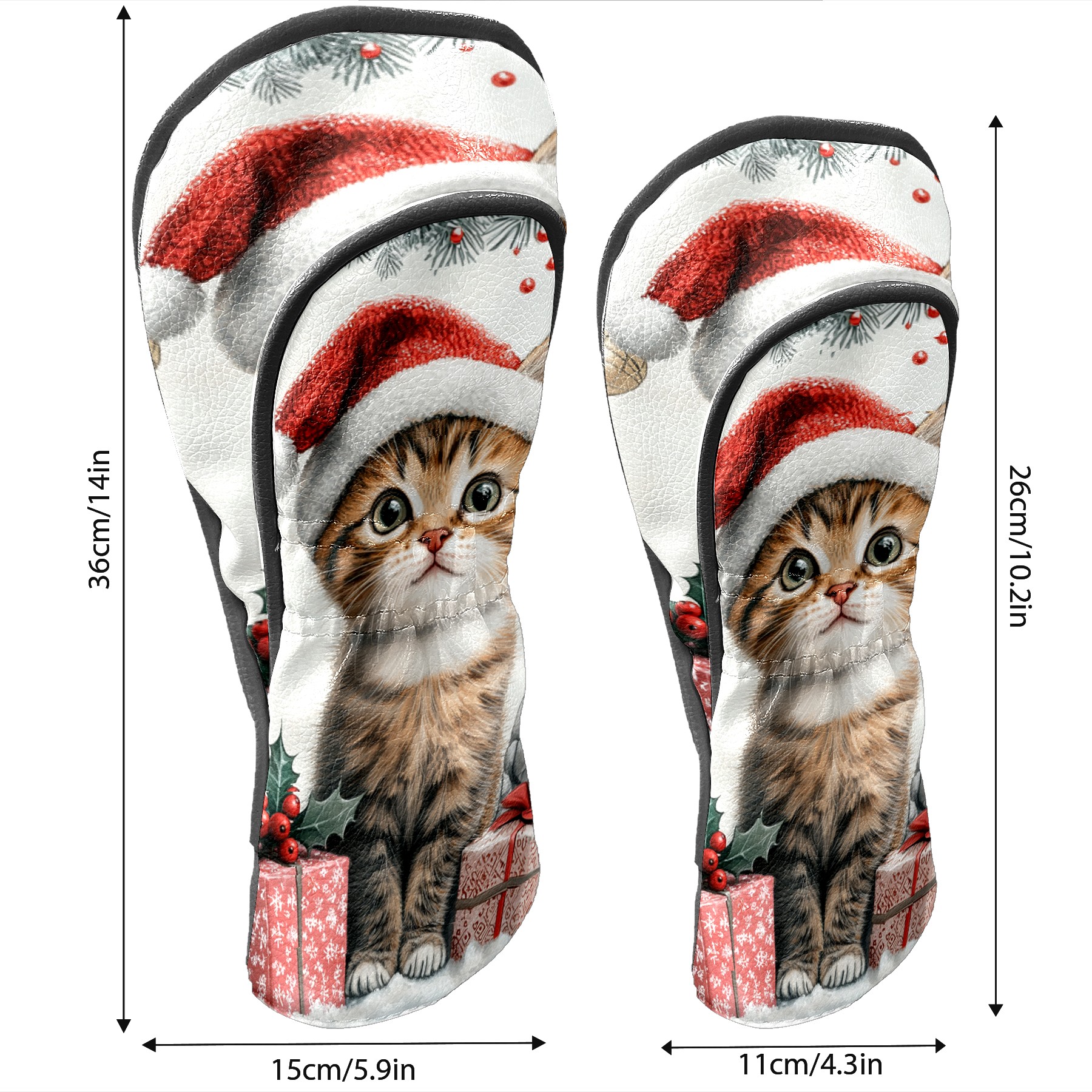 Golf Club Head Cover, High Quality PU Leather Driver and Wood Club Head Cover with Anti-Scratch Lining, Universal Gift for Men and Women Cute Cat Christmas Santa Hat