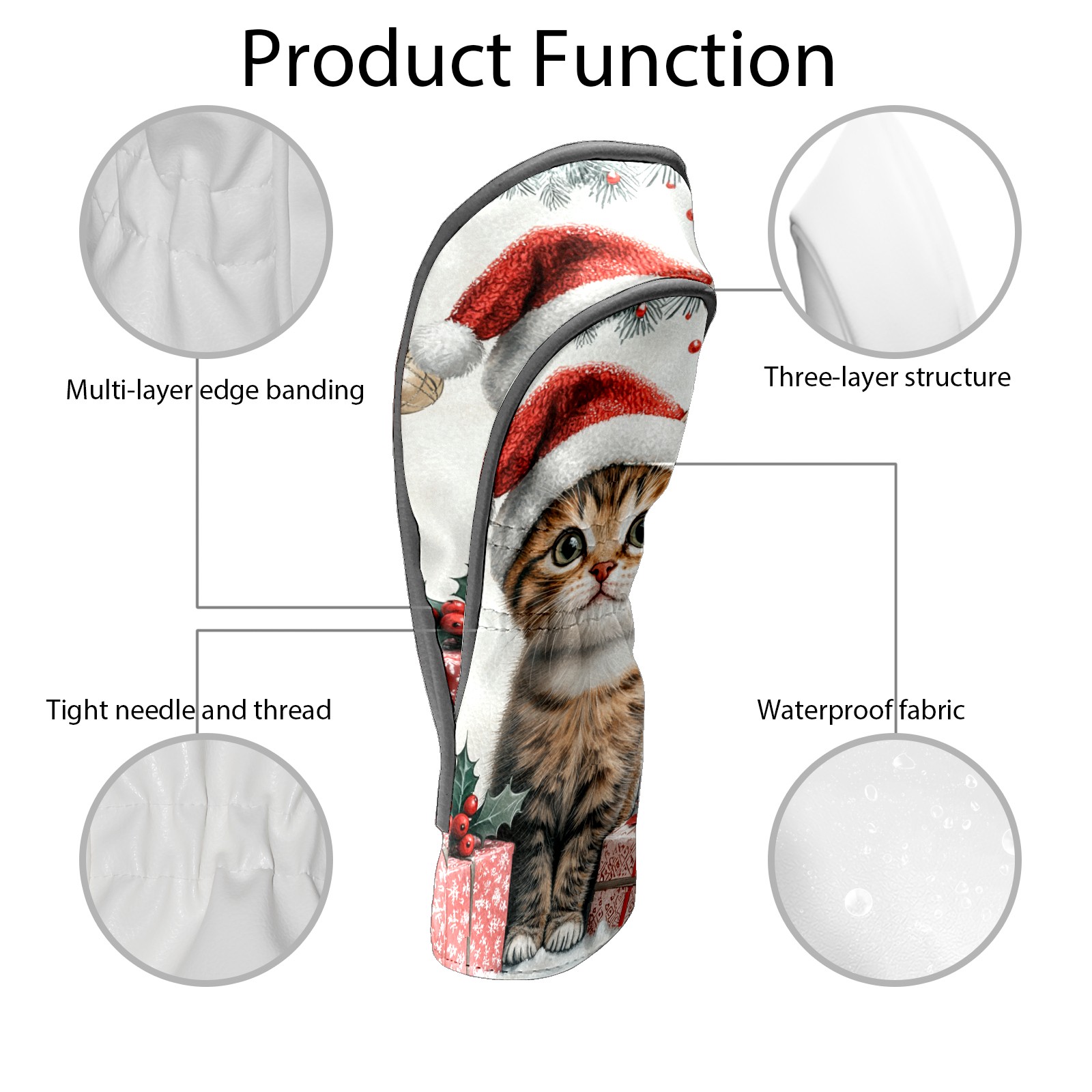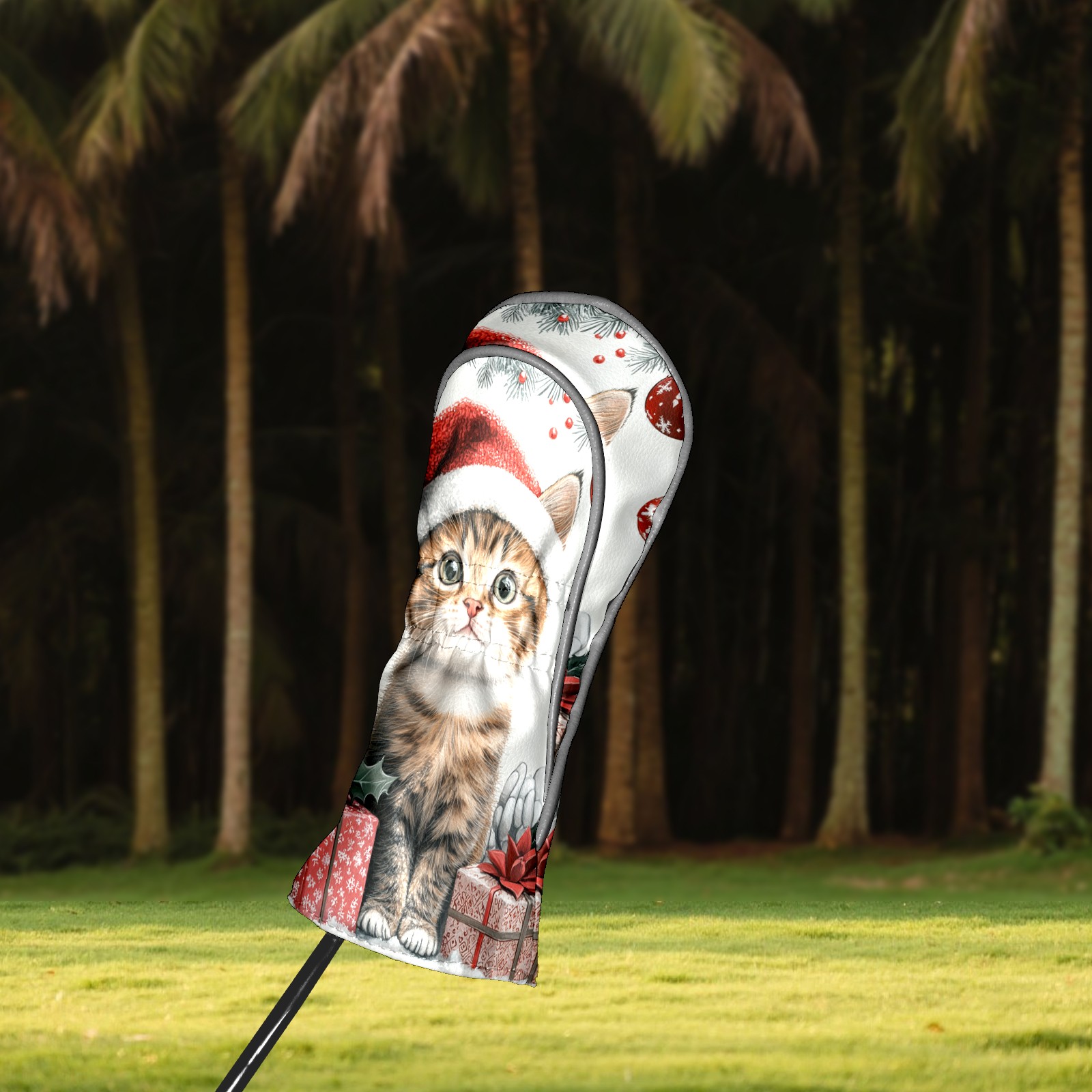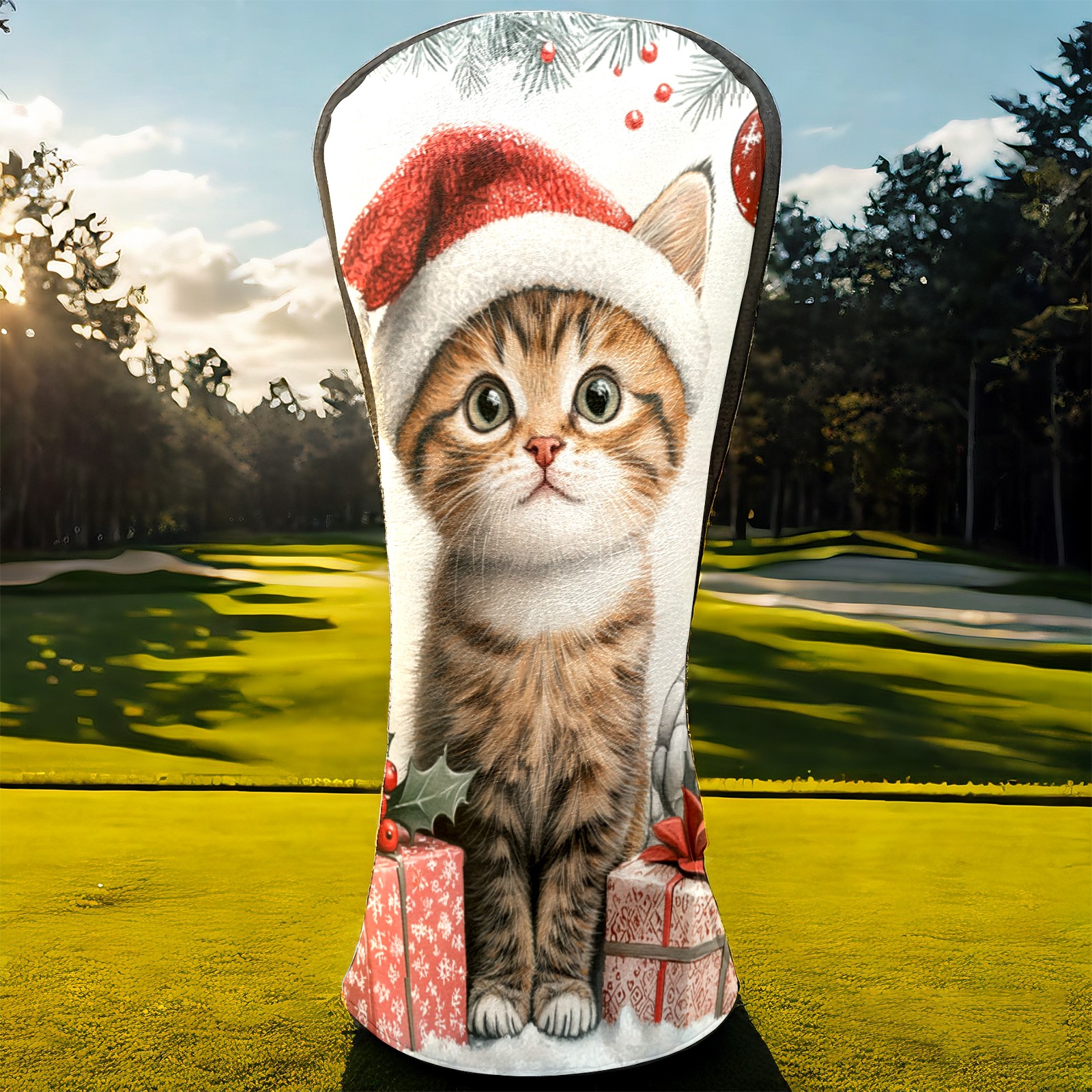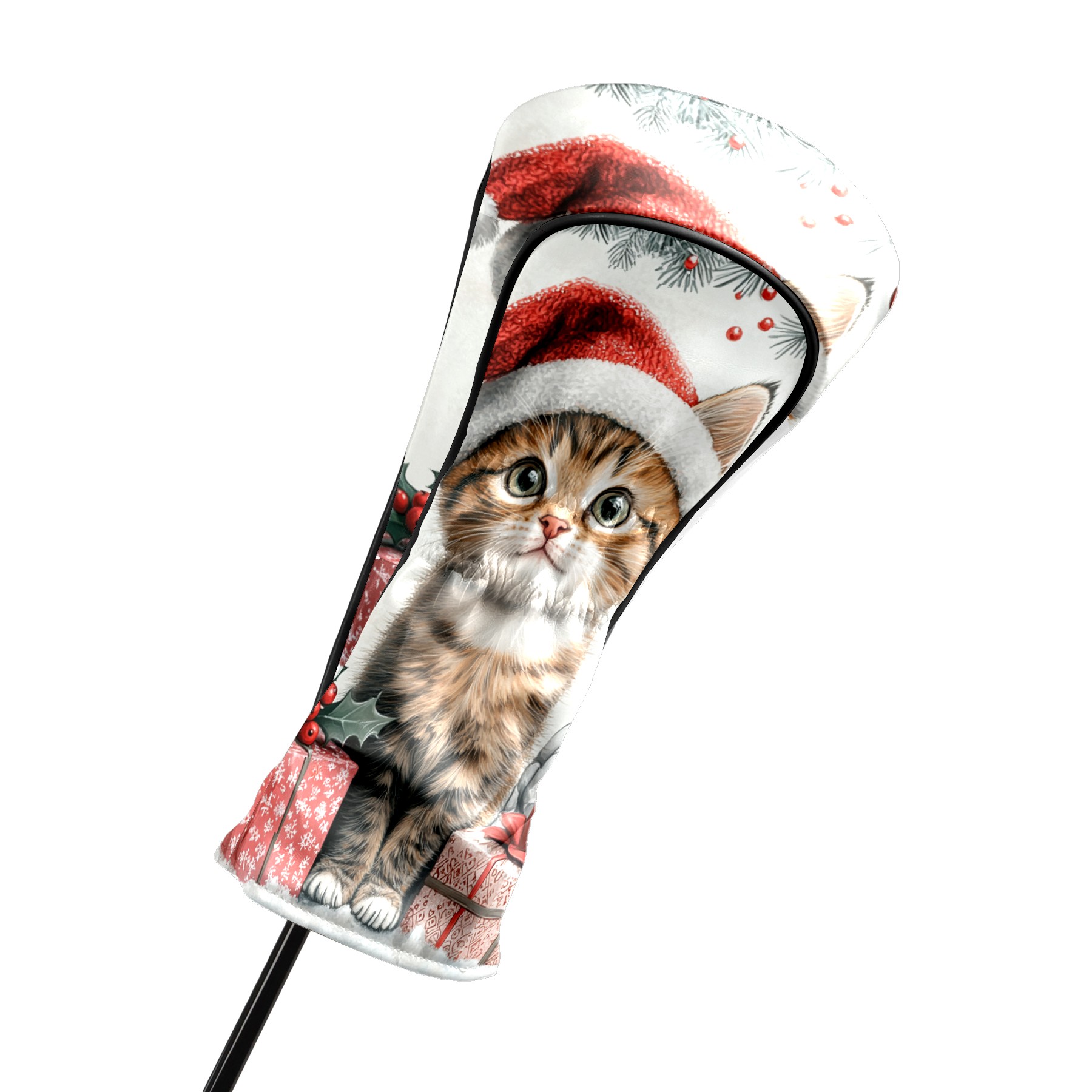 Golf Club Head Cover, High Quality PU Leather Driver and Wood Club Head Cover with Anti-Scratch Lining, Universal Gift for Men and Women Cute Cat Christmas Santa Hat