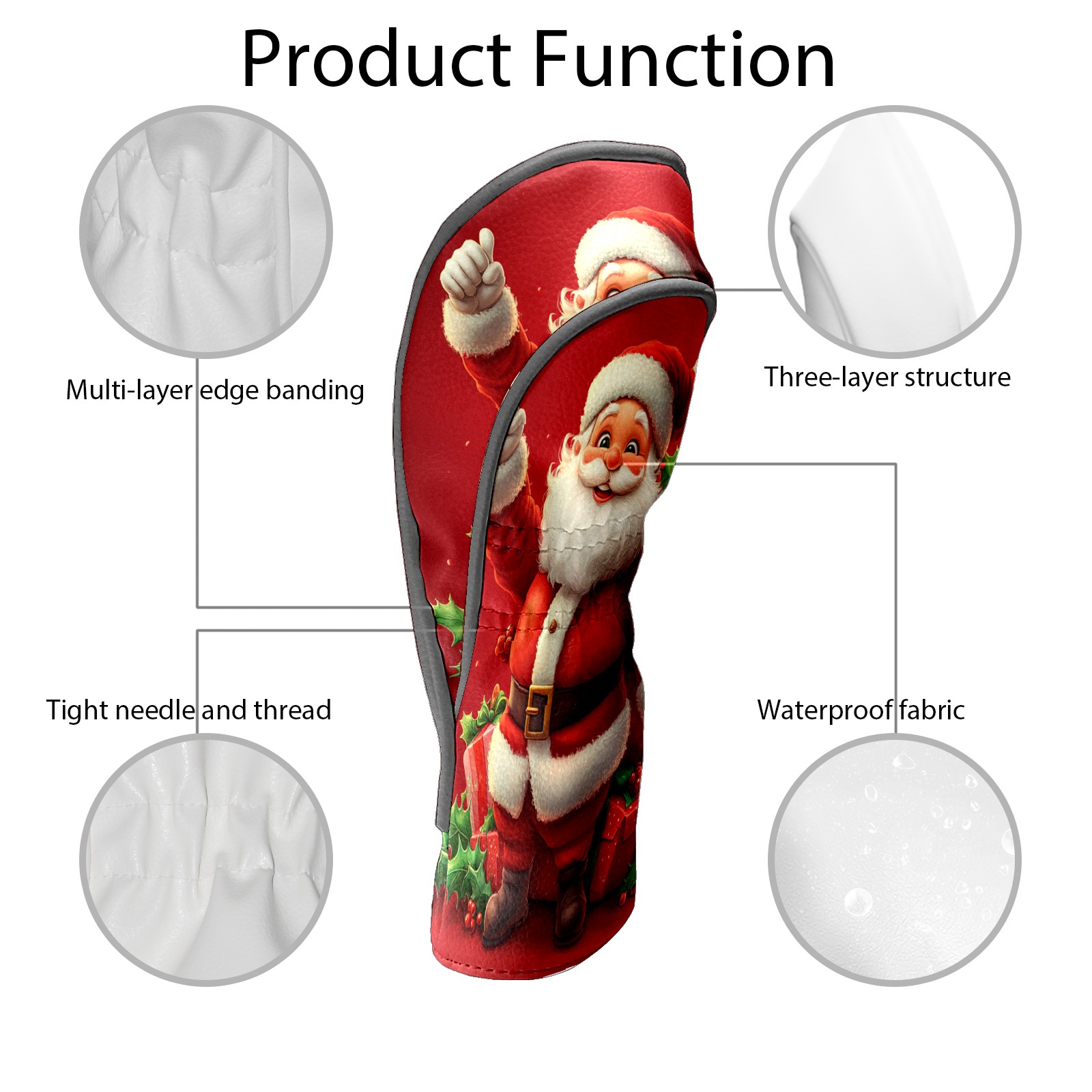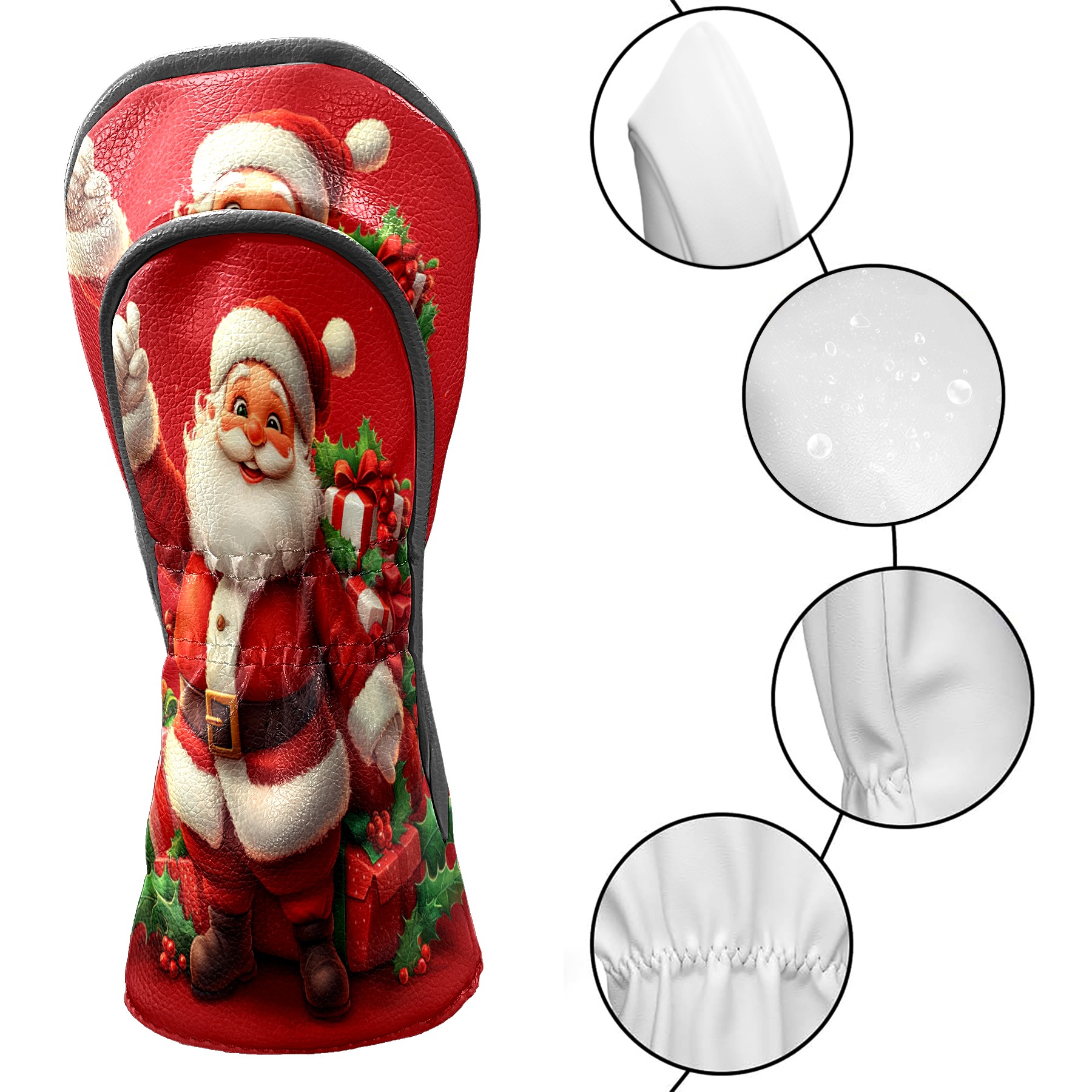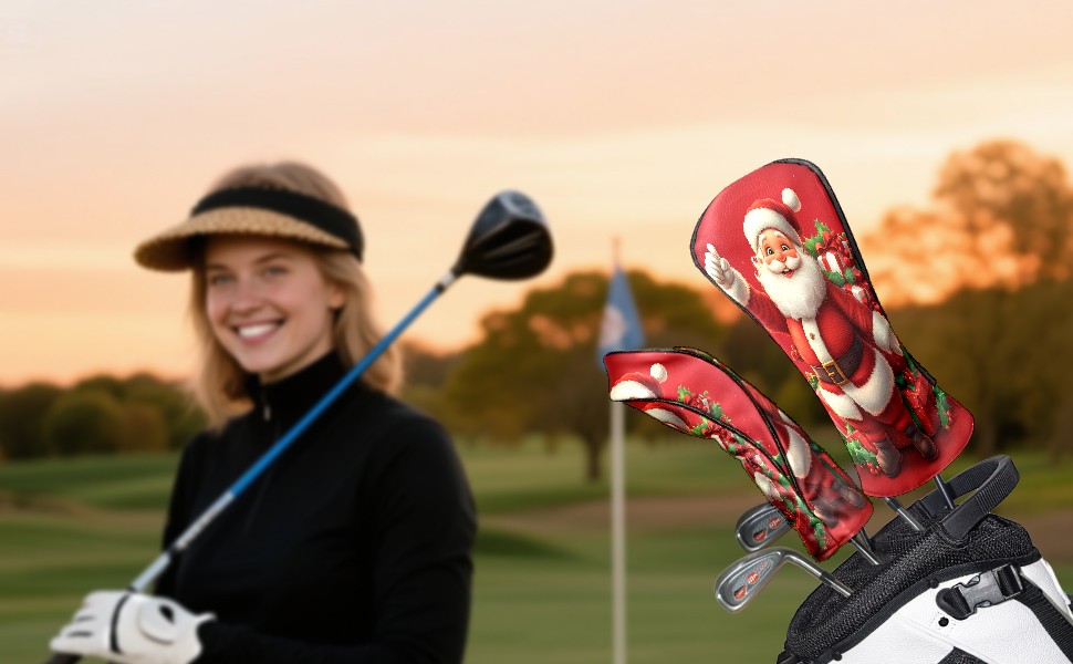 Golf Club Head Cover, High Quality PU Leather Driver and Wood Club Head Cover with Anti-Scratch Lining, Universal Gift for Men and Women Kind Santa Claus