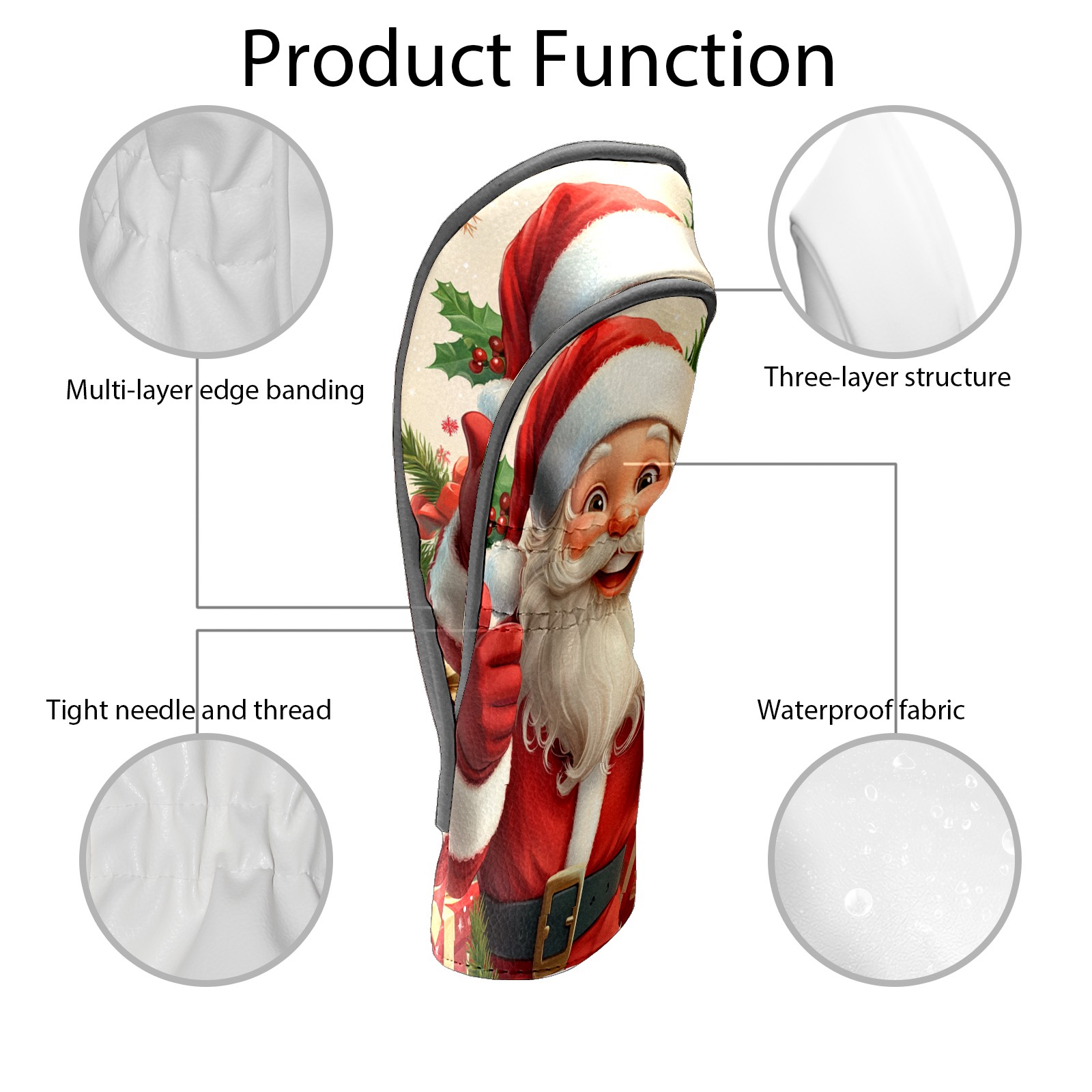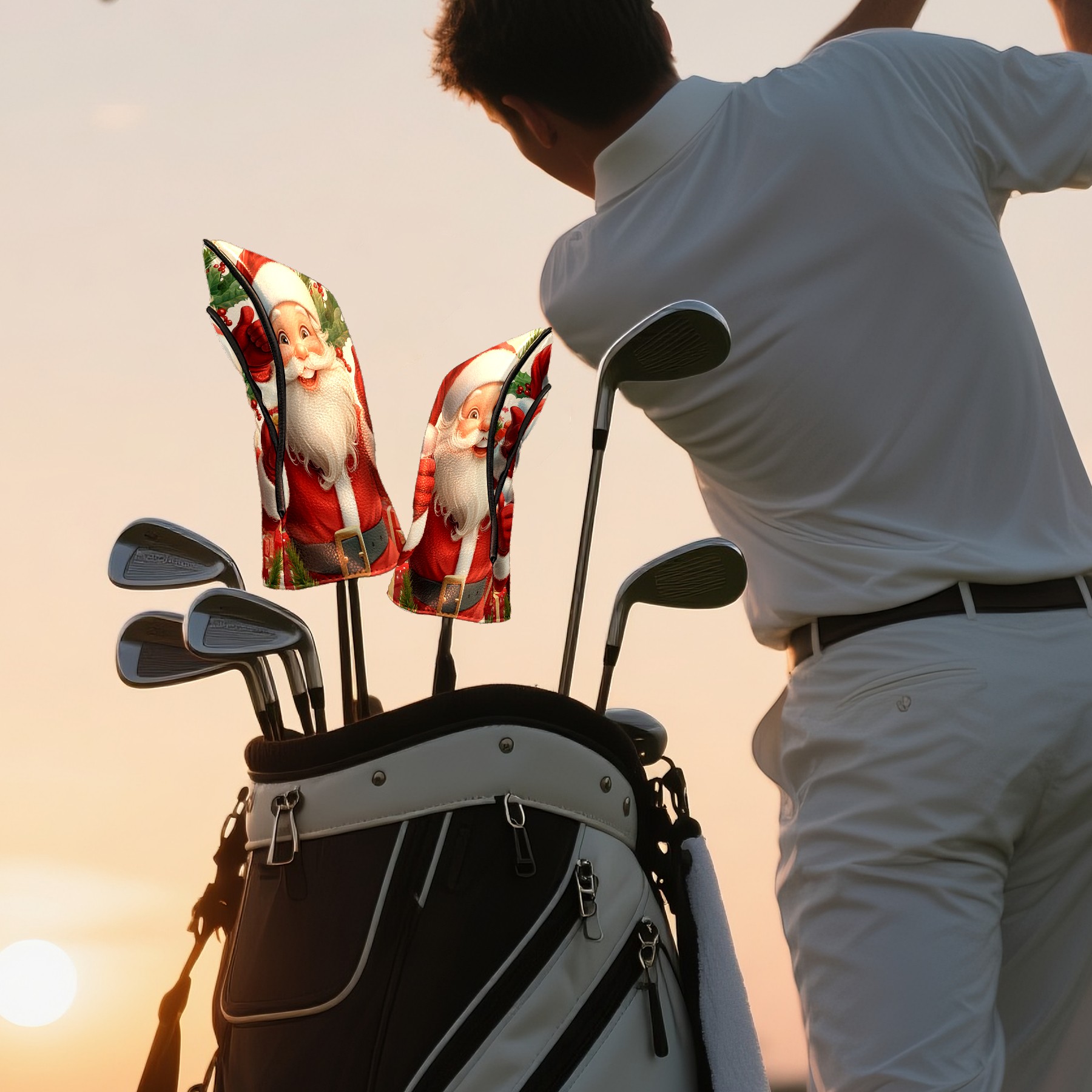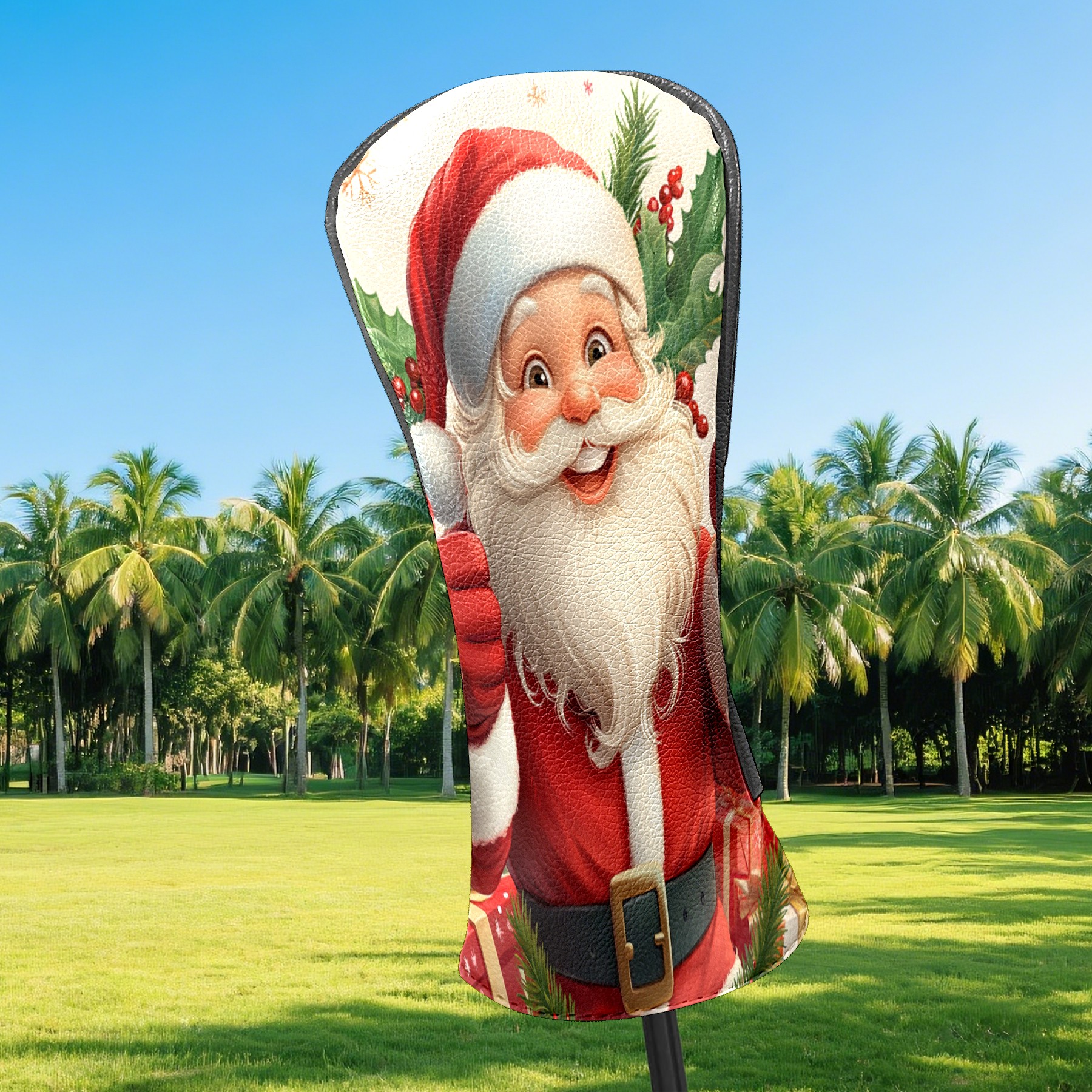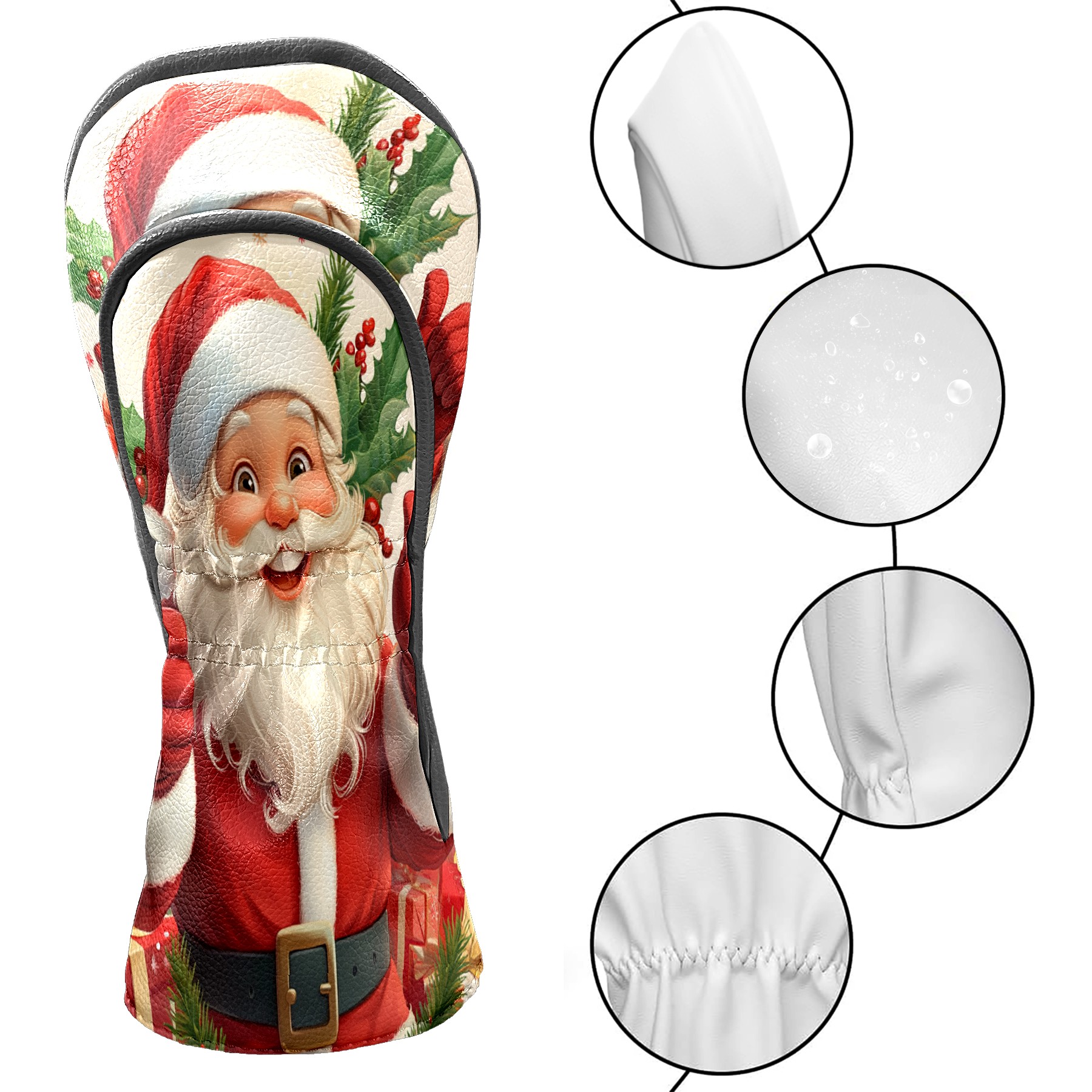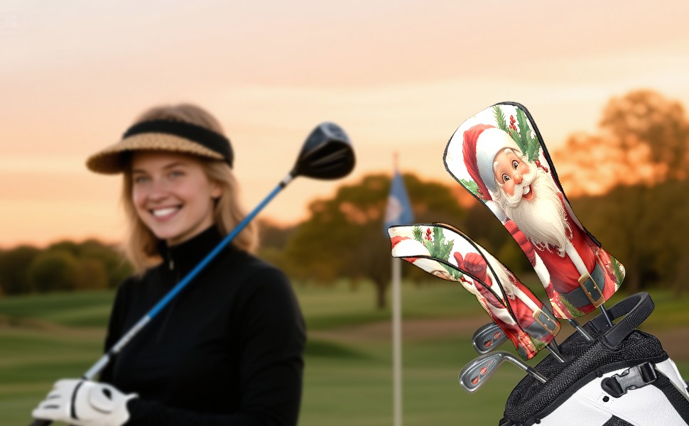 Golf Club Head Cover, High Quality PU Leather Driver and Wood Club Head Cover with Anti-Scratch Lining, Universal Gift for Men and Women Cartoon Christmas Santa Clause