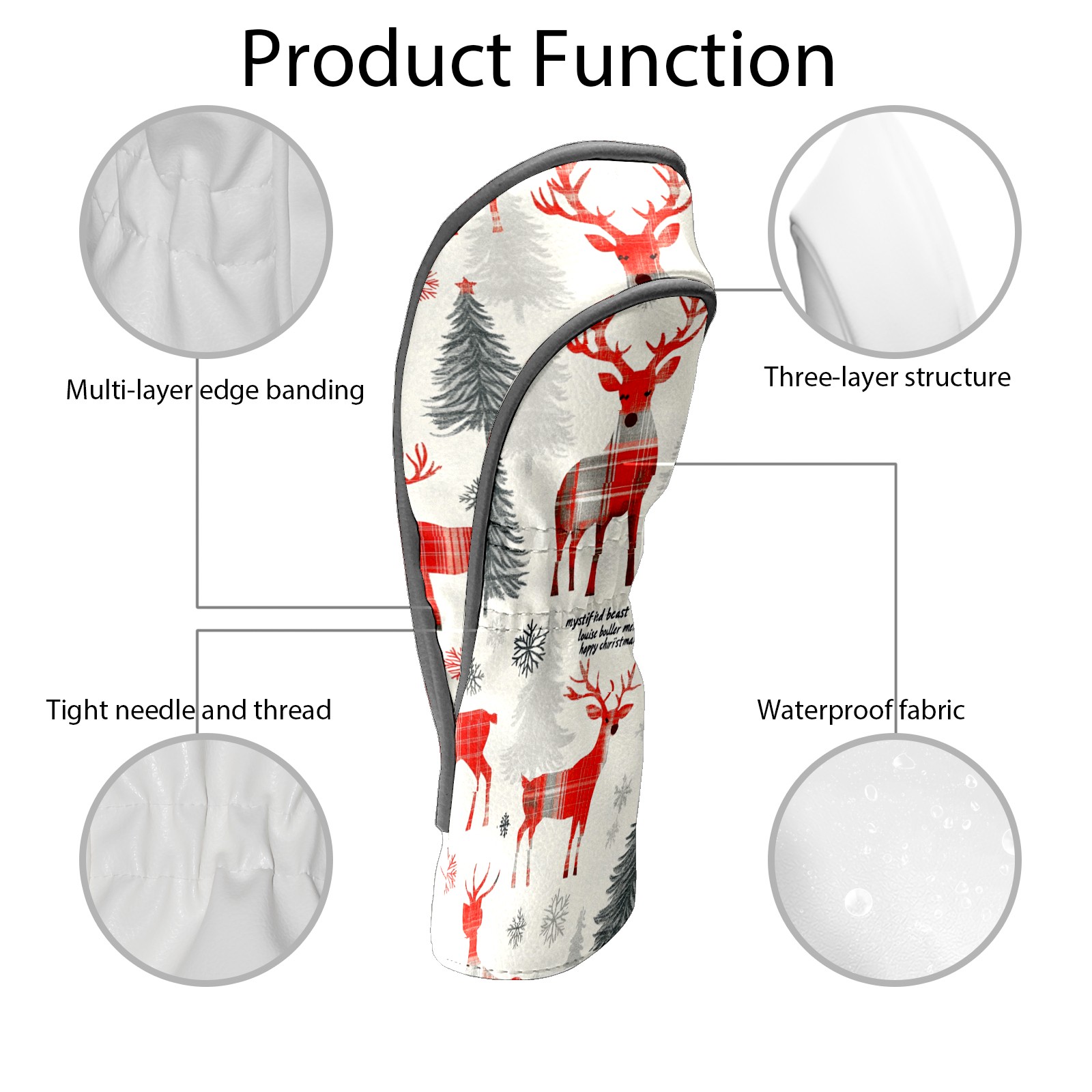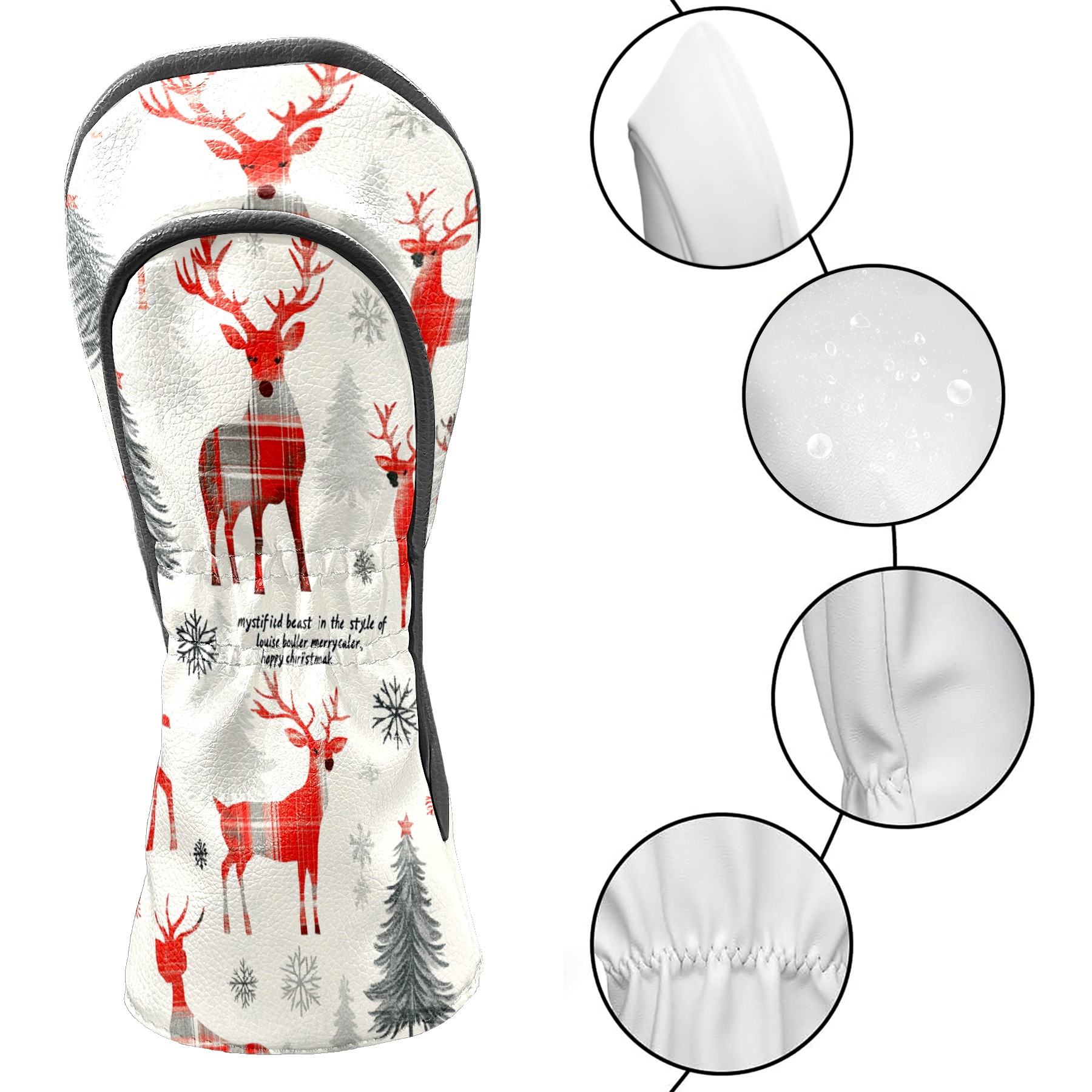 Golf Club Head Cover, High Quality PU Leather Driver and Wood Club Head Cover with Anti-Scratch Lining, Universal Gift for Men and Women Red Checkered Elk
