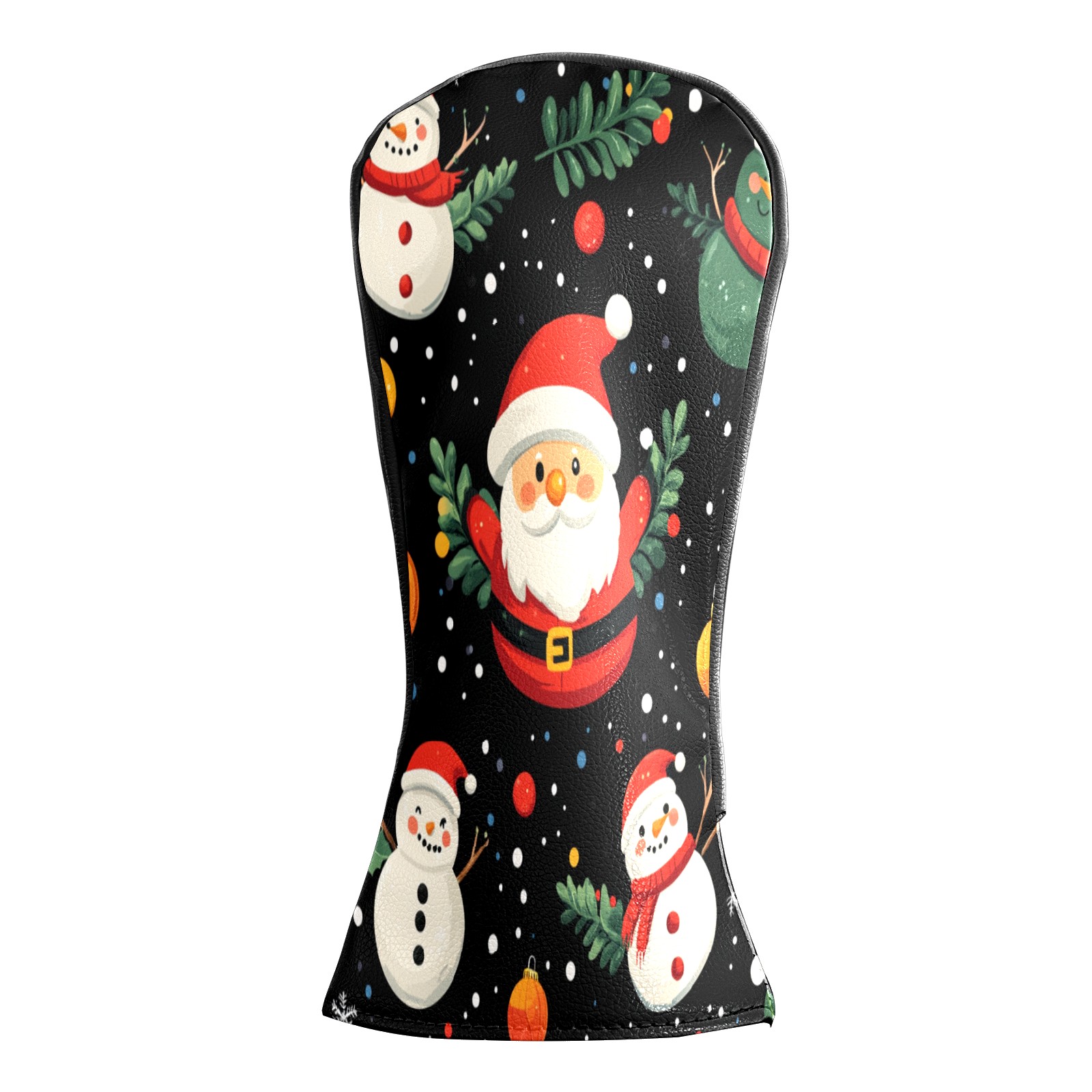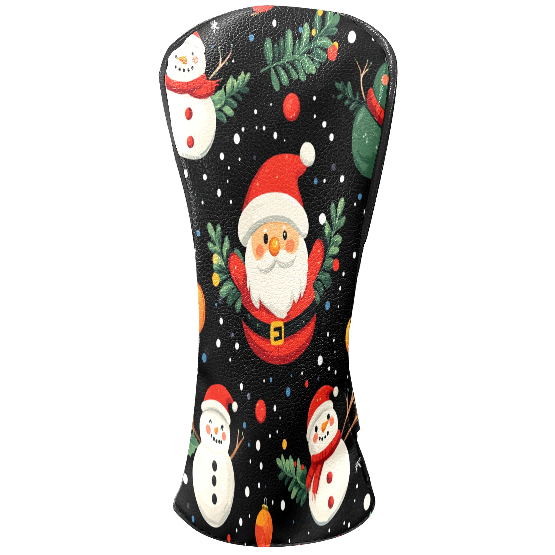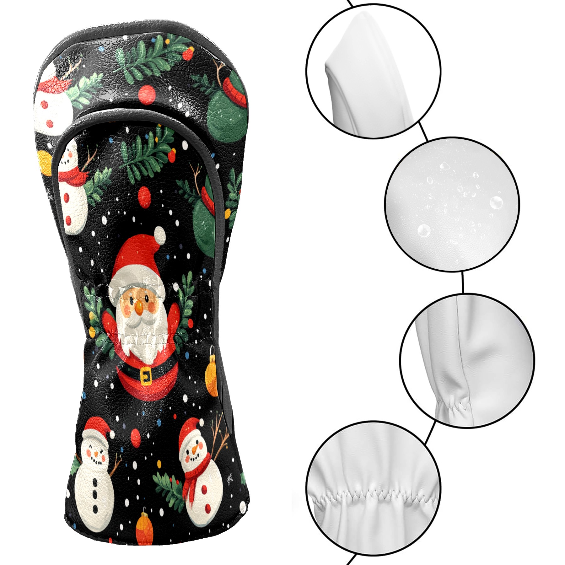 Golf Club Head Cover, High Quality PU Leather Driver and Wood Club Head Cover with Anti-Scratch Lining, Universal Gift for Men and Women Santa Claus Snowman