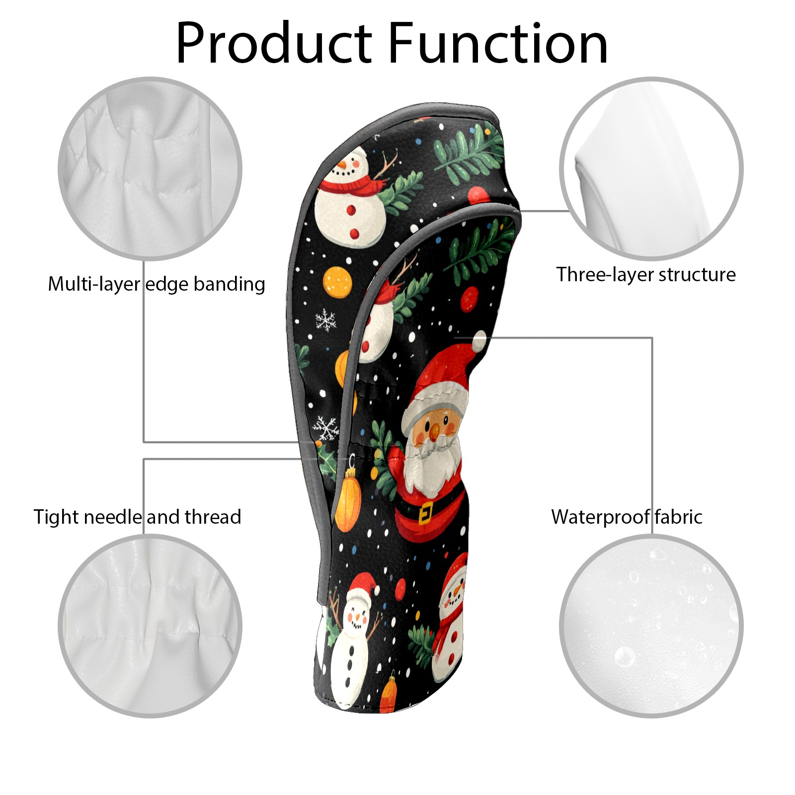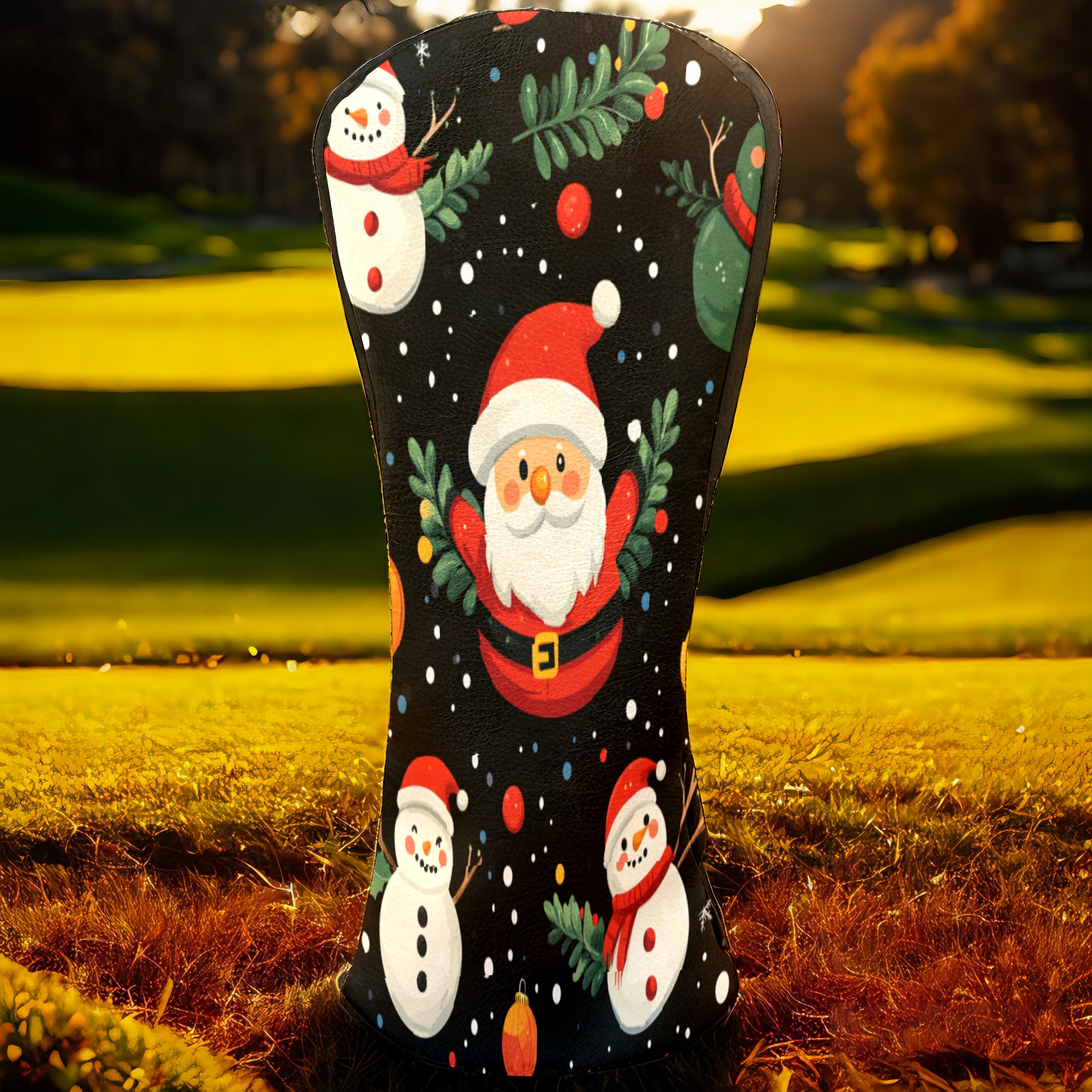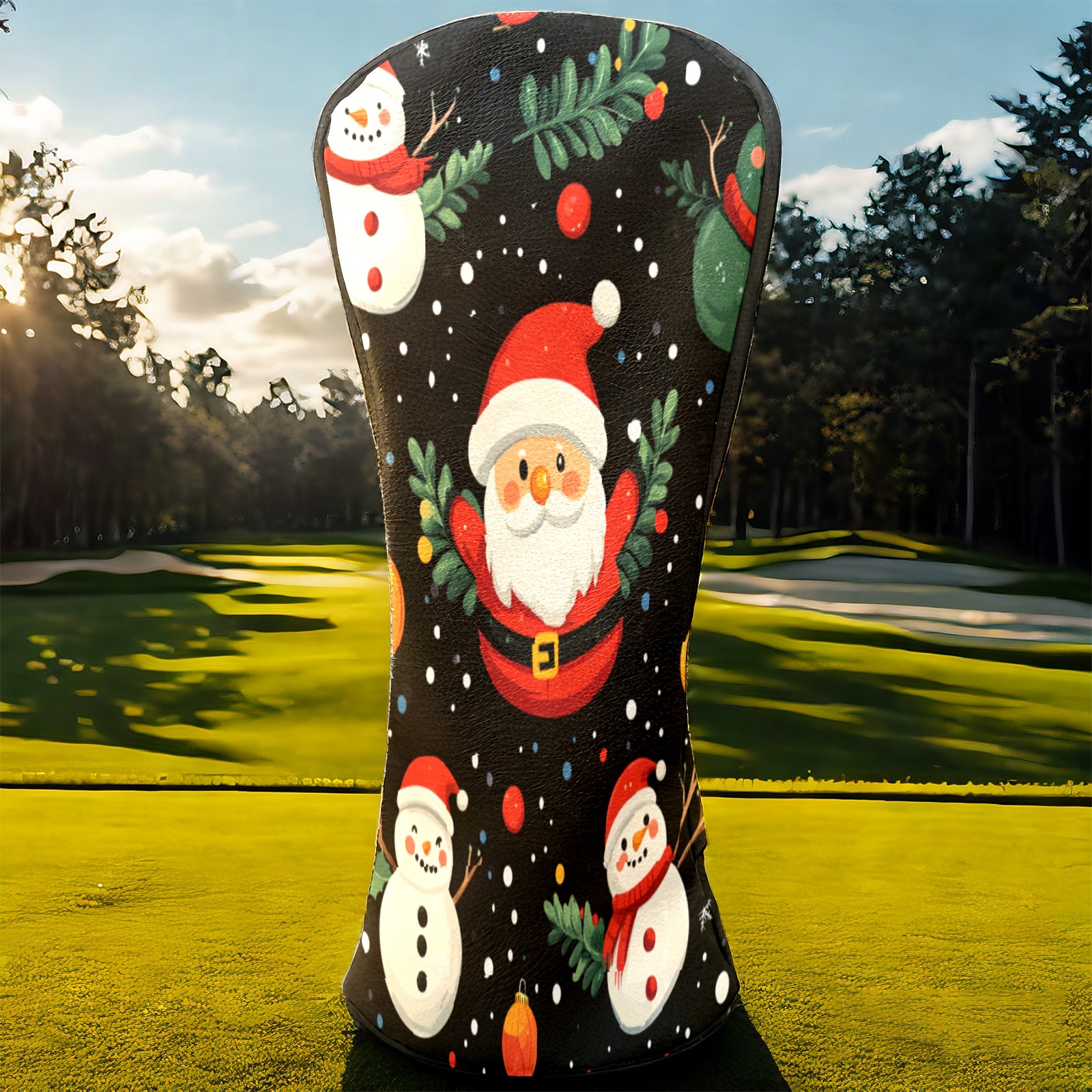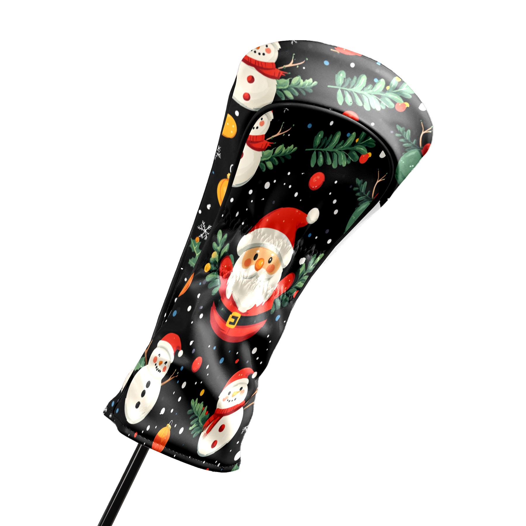 Golf Club Head Cover, High Quality PU Leather Driver and Wood Club Head Cover with Anti-Scratch Lining, Universal Gift for Men and Women Santa Claus Snowman