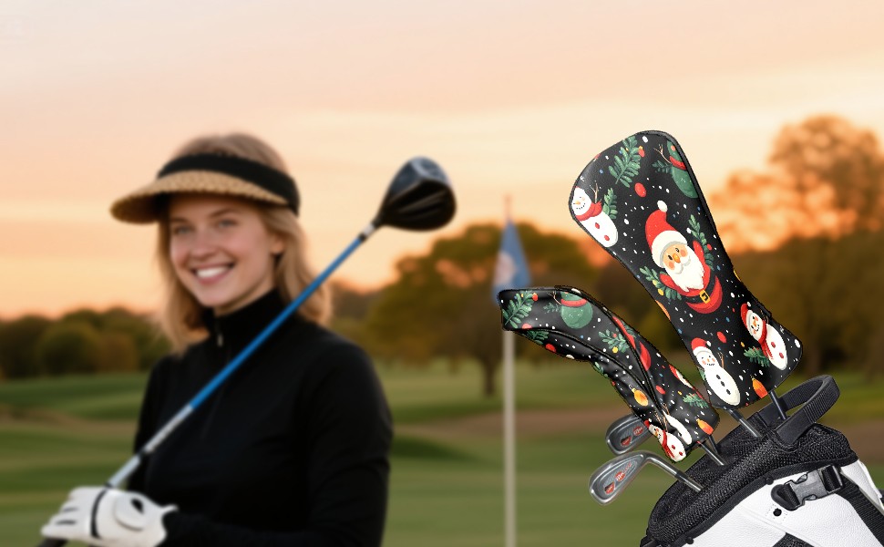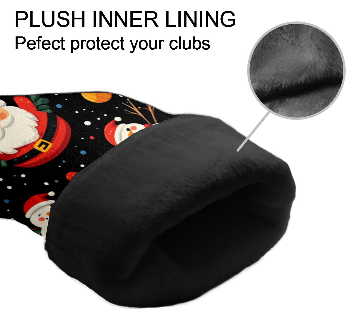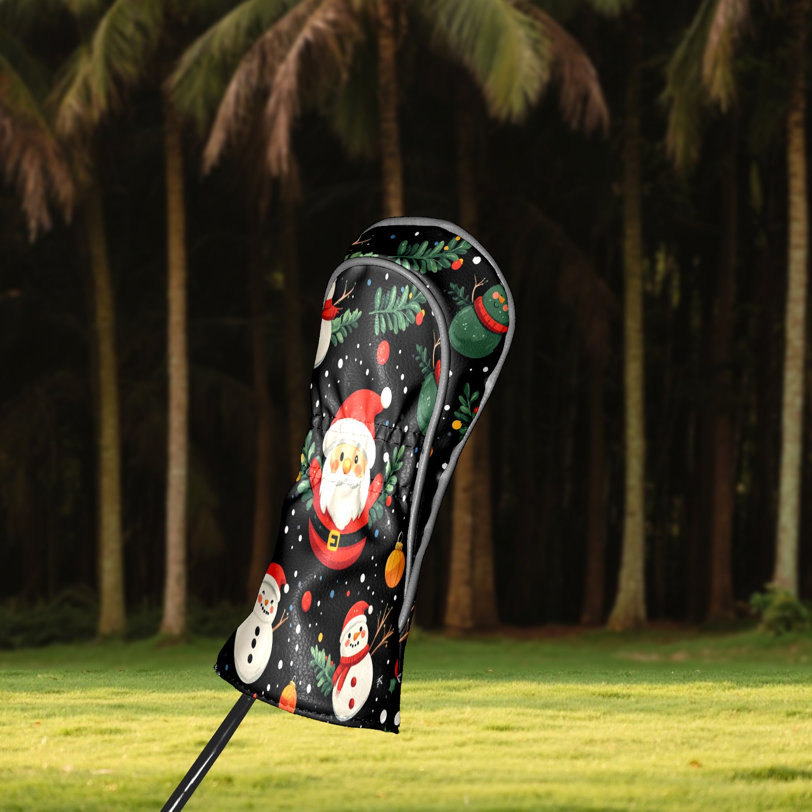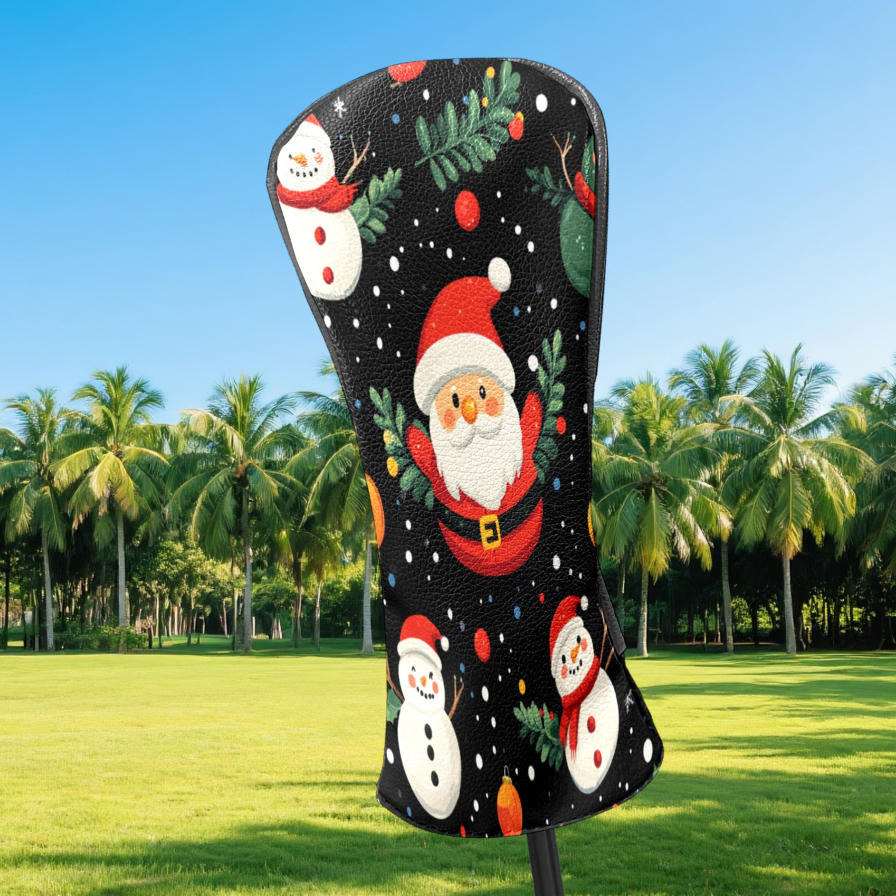 Golf Club Head Cover, High Quality PU Leather Driver and Wood Club Head Cover with Anti-Scratch Lining, Universal Gift for Men and Women Santa Claus Snowman