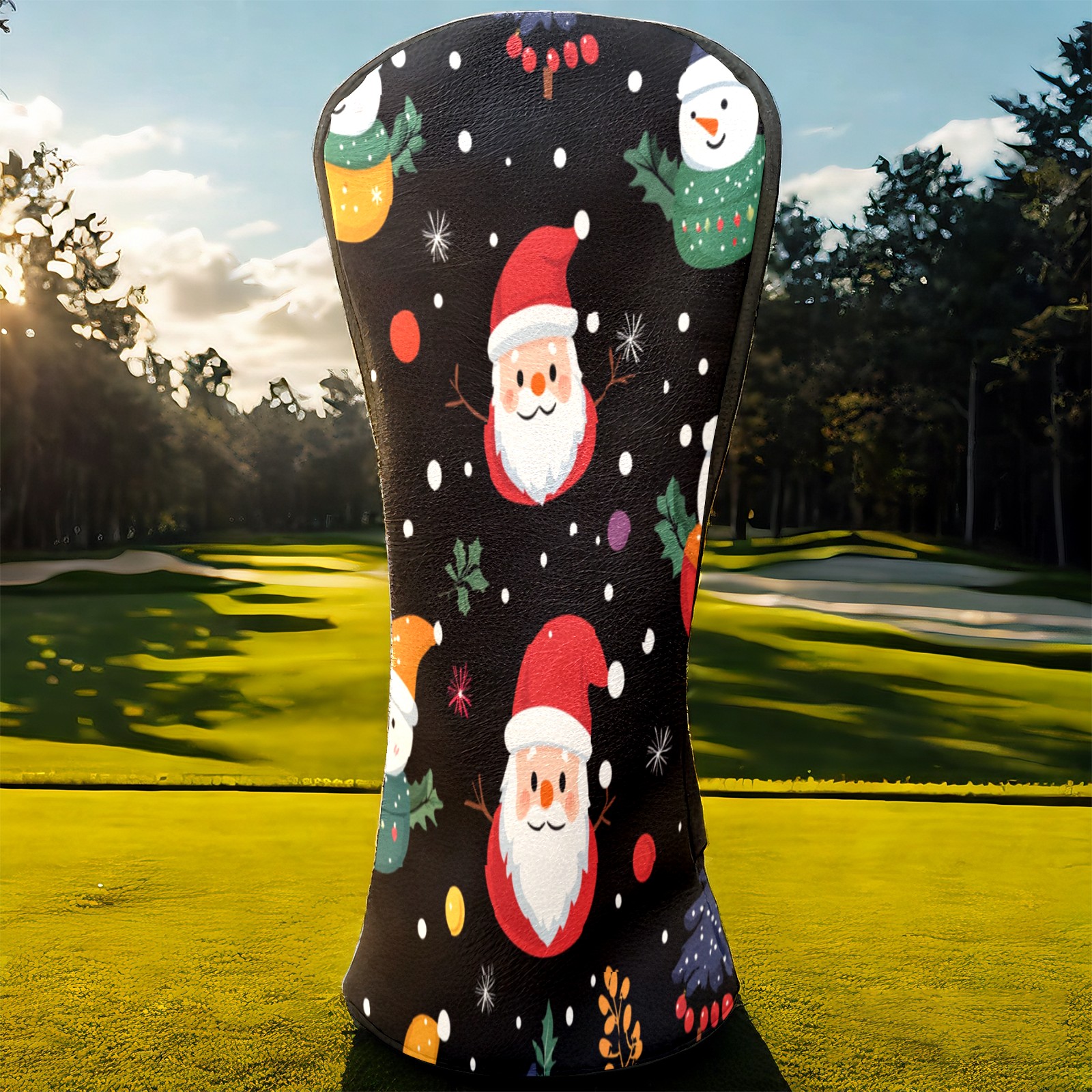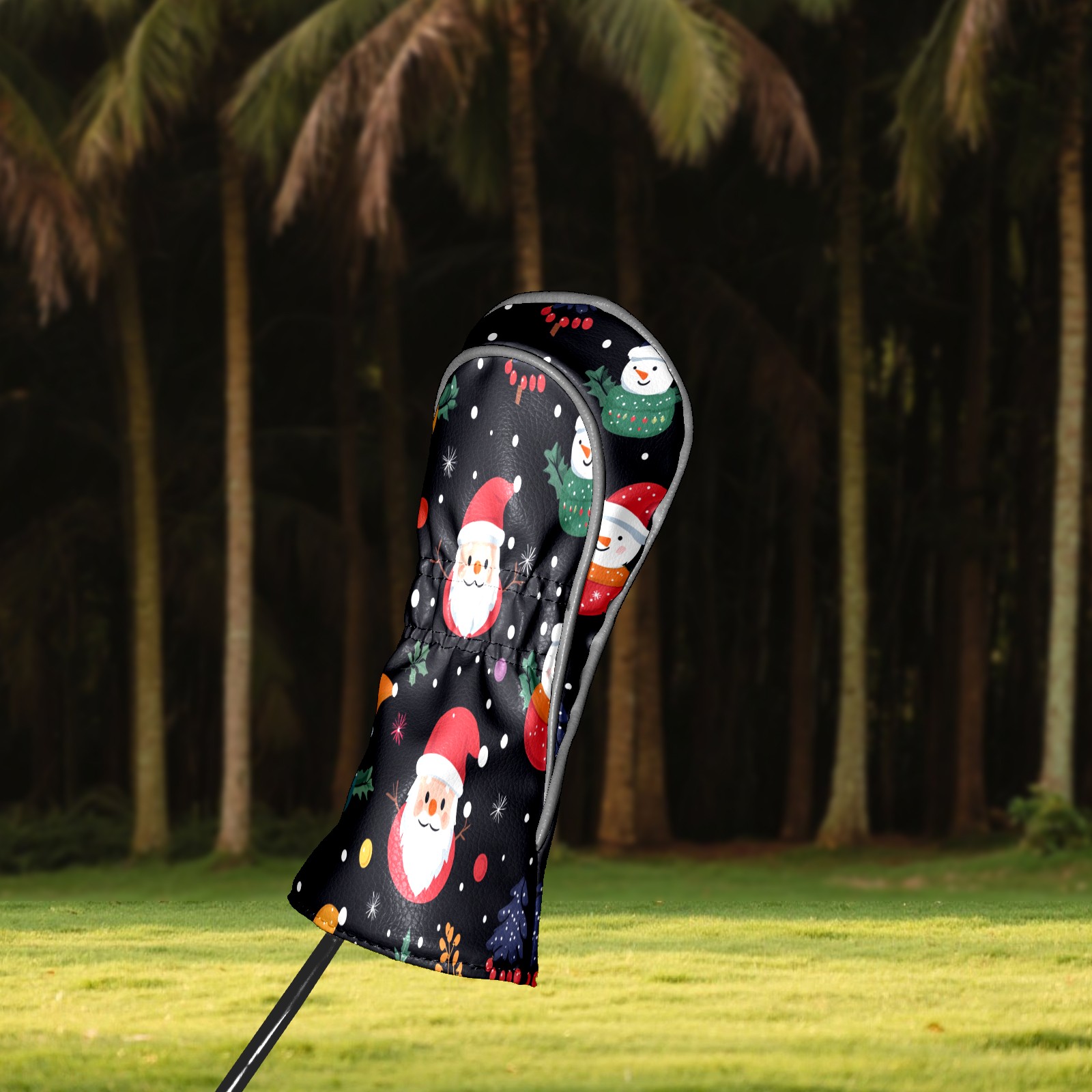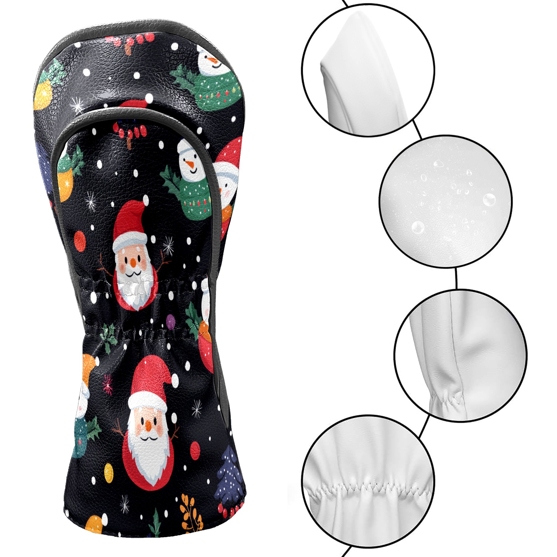 Golf Club Head Cover, High Quality PU Leather Driver and Wood Club Head Cover with Anti-Scratch Lining, Universal Gift for Men and Women Santa Claus