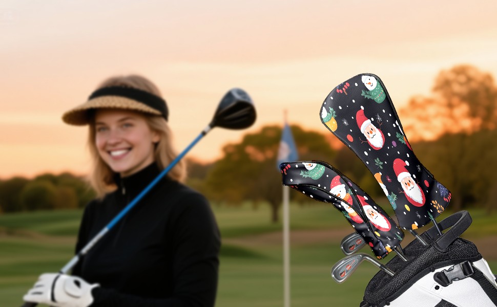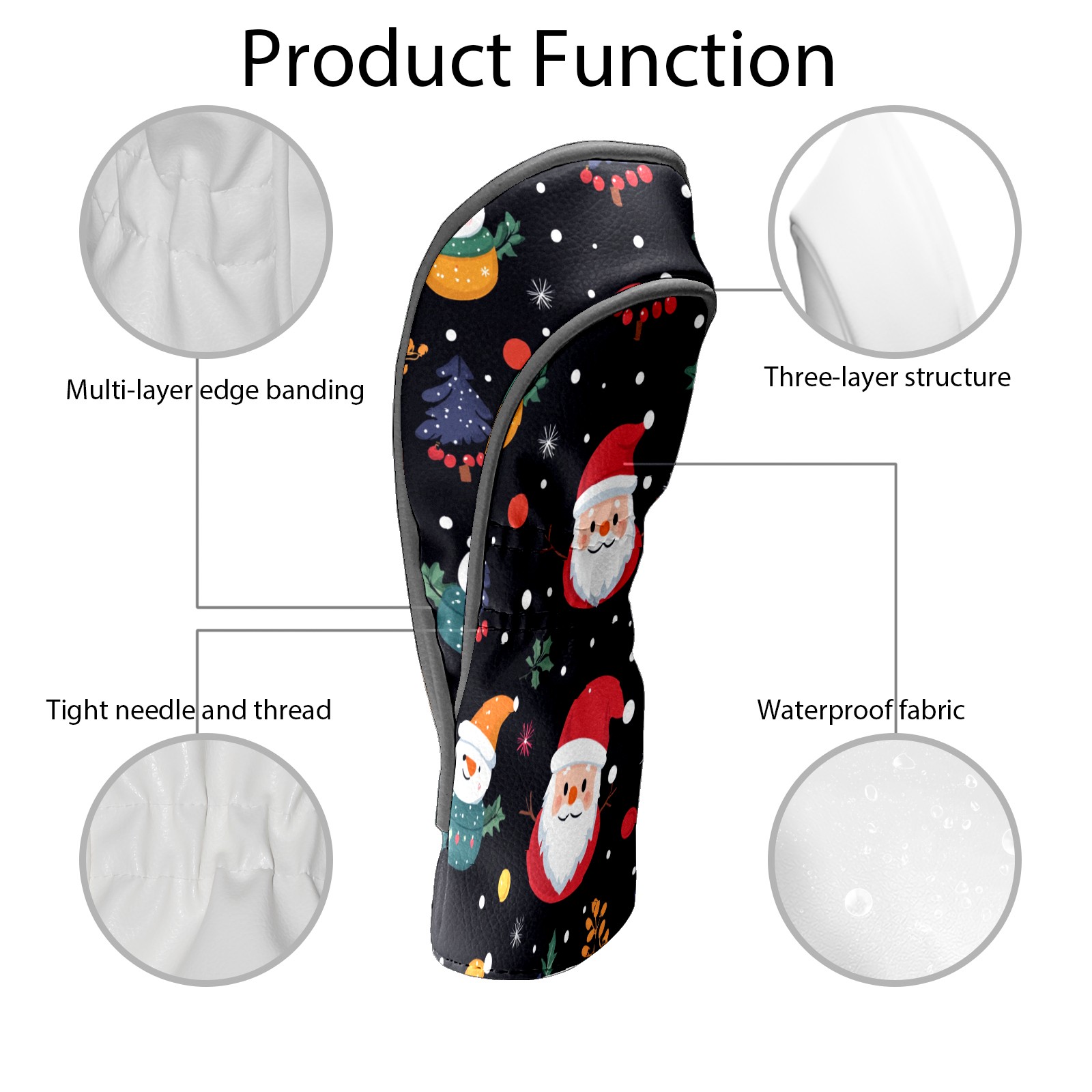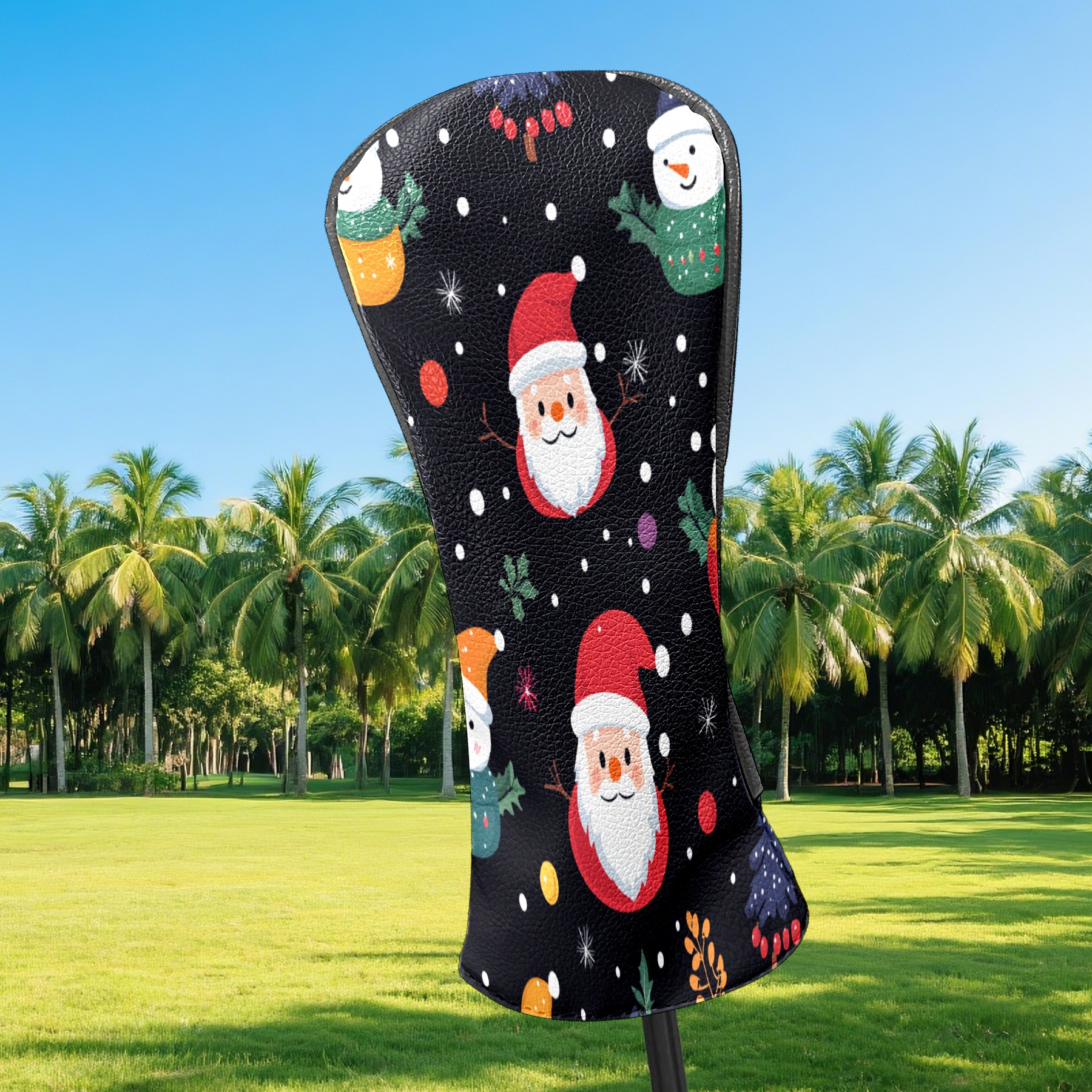 Golf Club Head Cover, High Quality PU Leather Driver and Wood Club Head Cover with Anti-Scratch Lining, Universal Gift for Men and Women Santa Claus