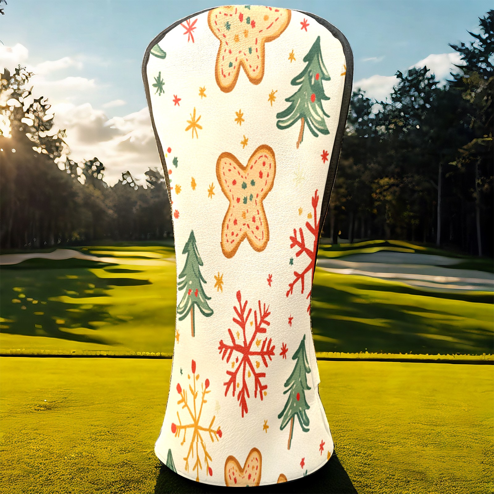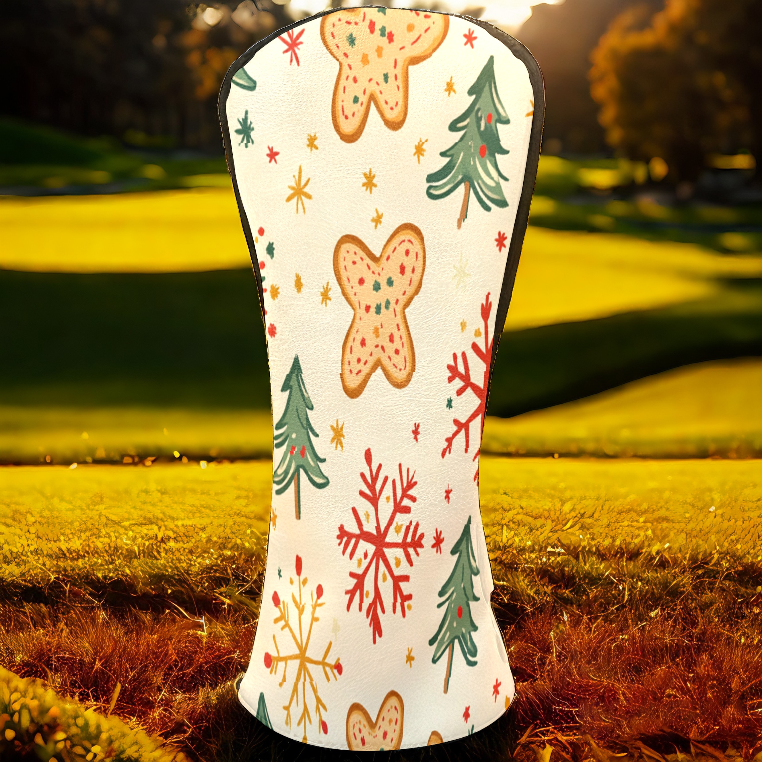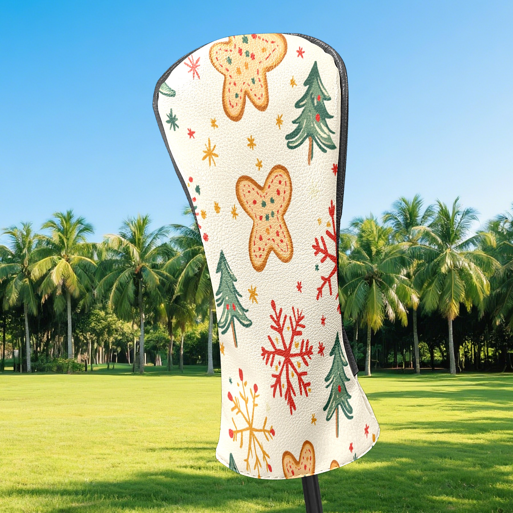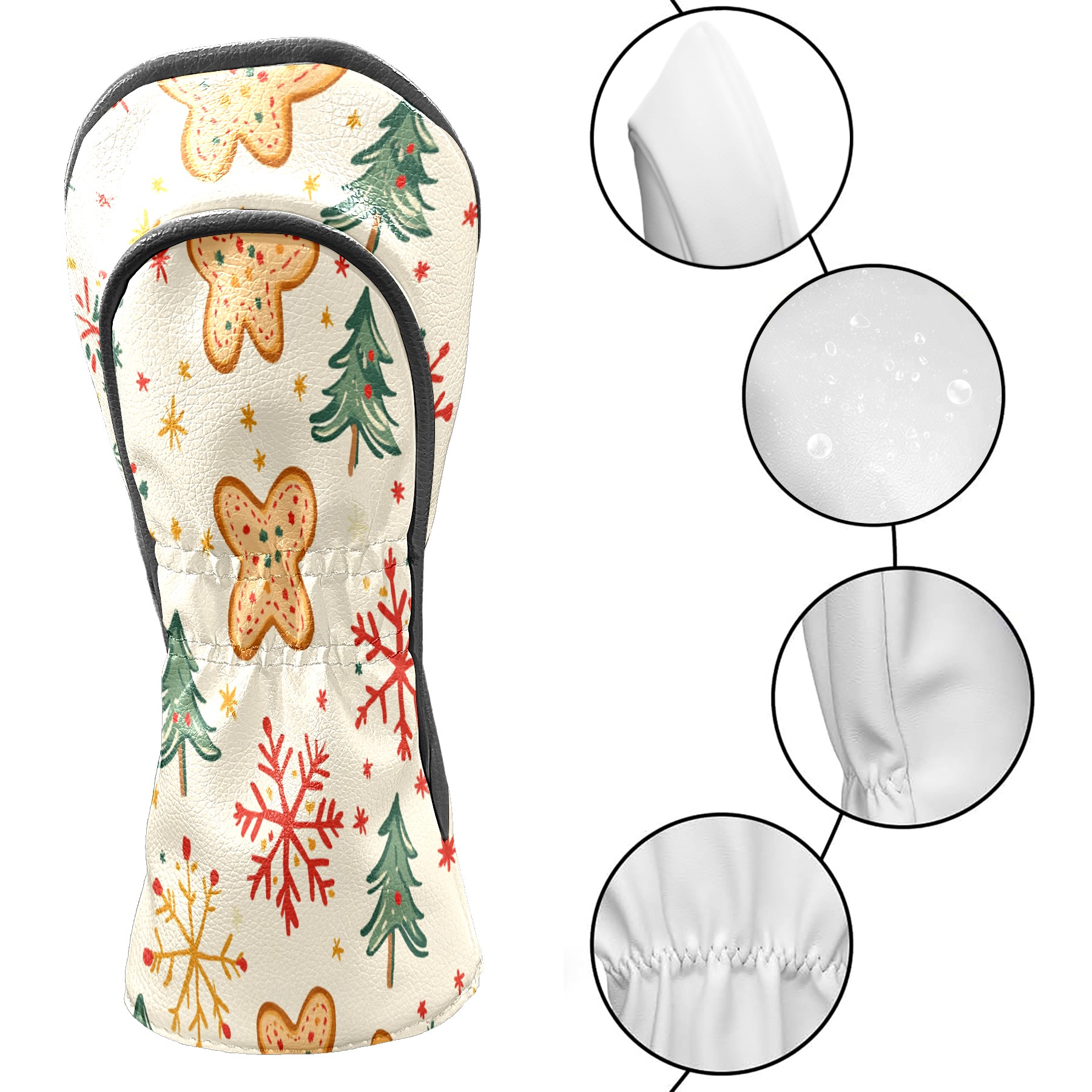 Golf Club Head Cover, High Quality PU Leather Driver and Wood Club Head Cover with Anti-Scratch Lining, Universal Gift for Men and Women Gingerbread Man Christmas Tree Snowflakes