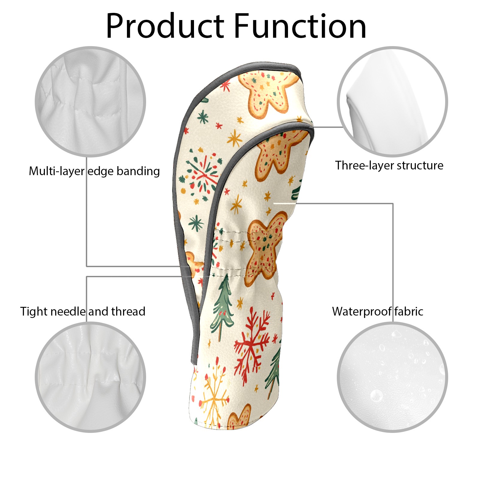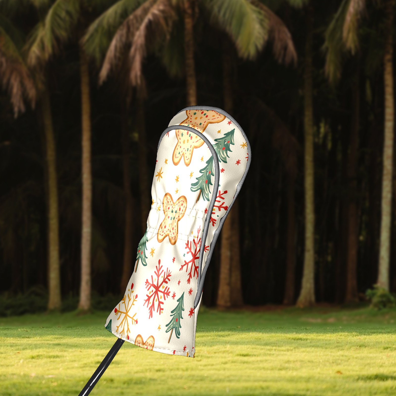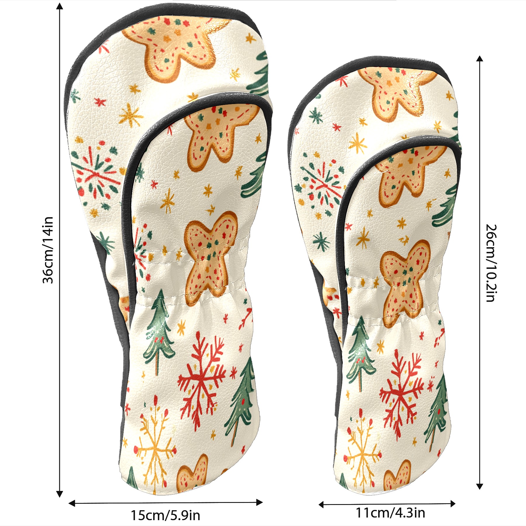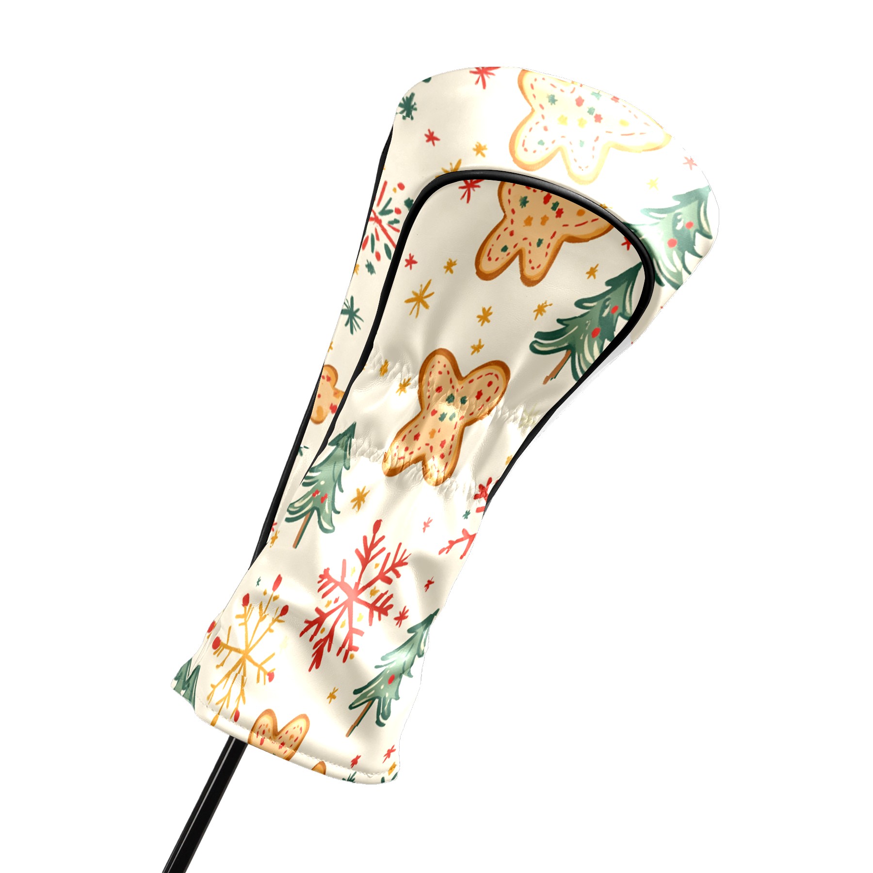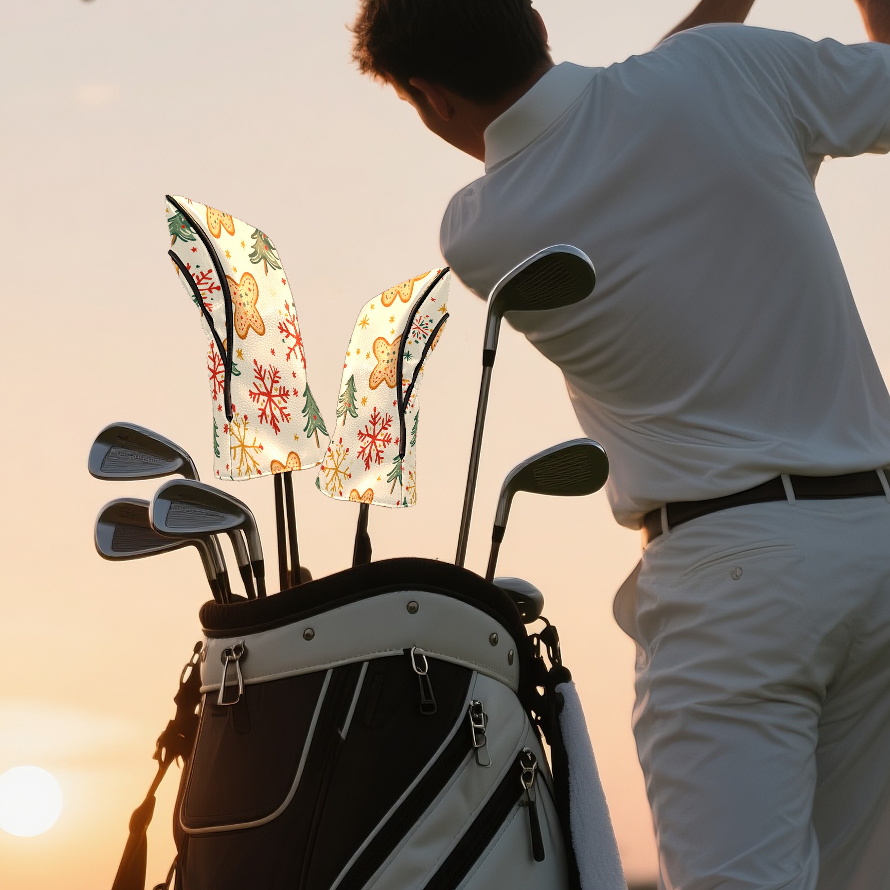 Golf Club Head Cover, High Quality PU Leather Driver and Wood Club Head Cover with Anti-Scratch Lining, Universal Gift for Men and Women Gingerbread Man Christmas Tree Snowflakes