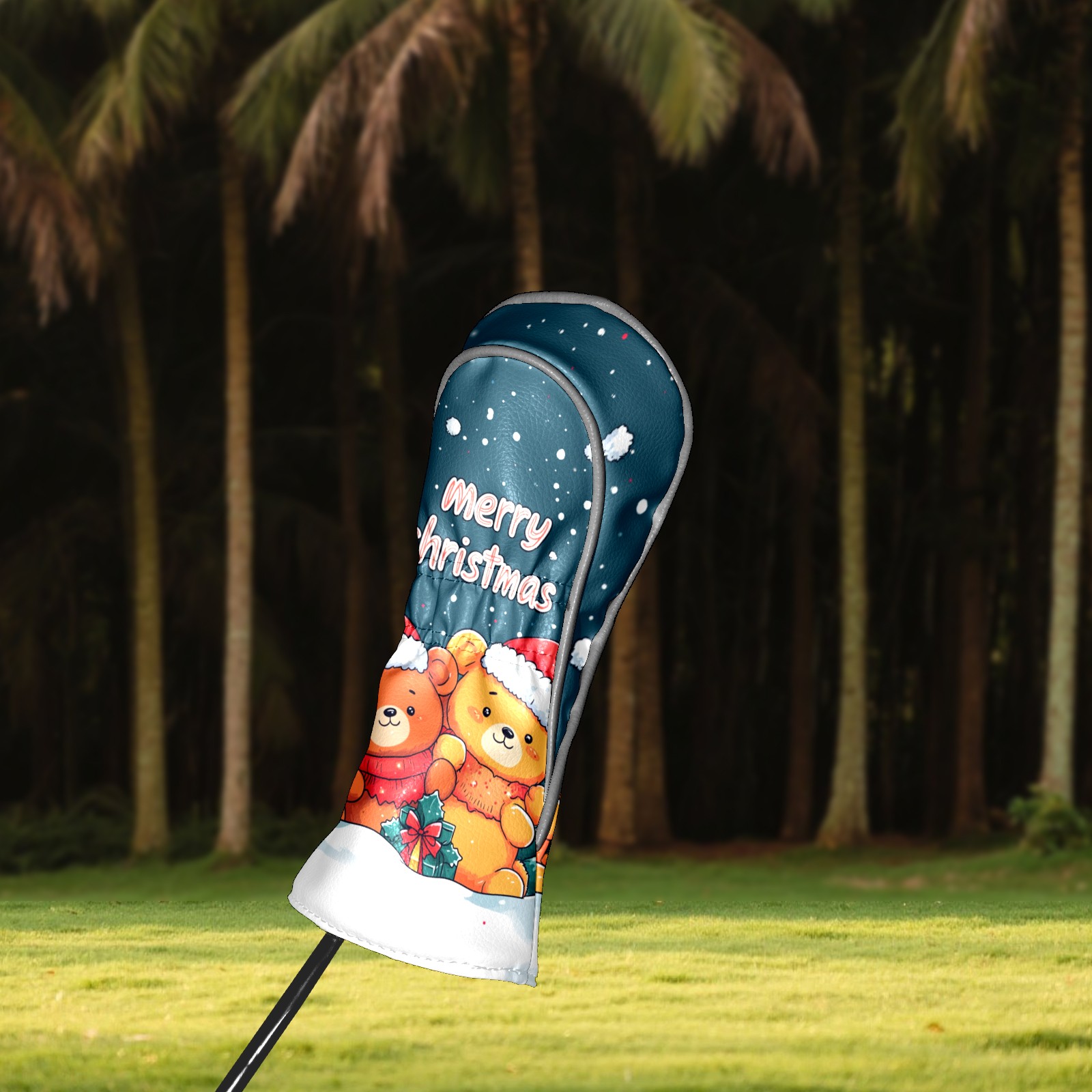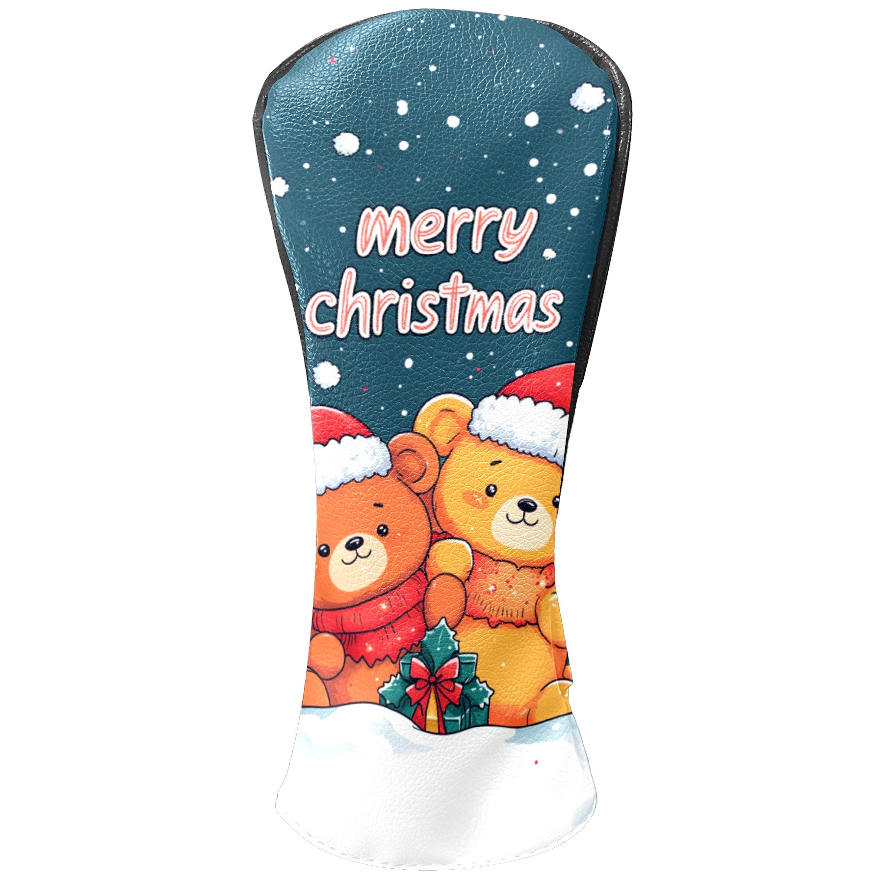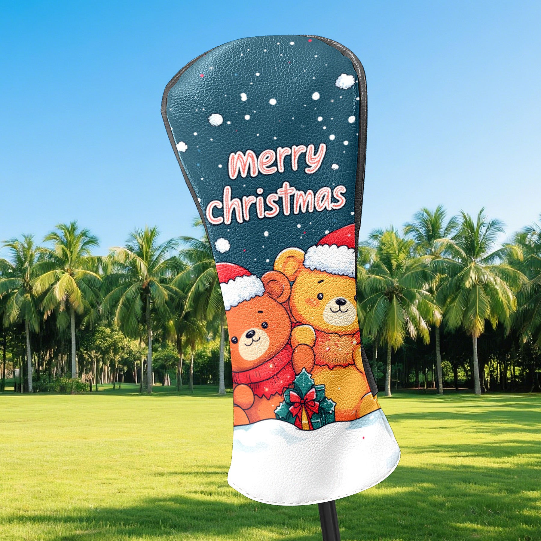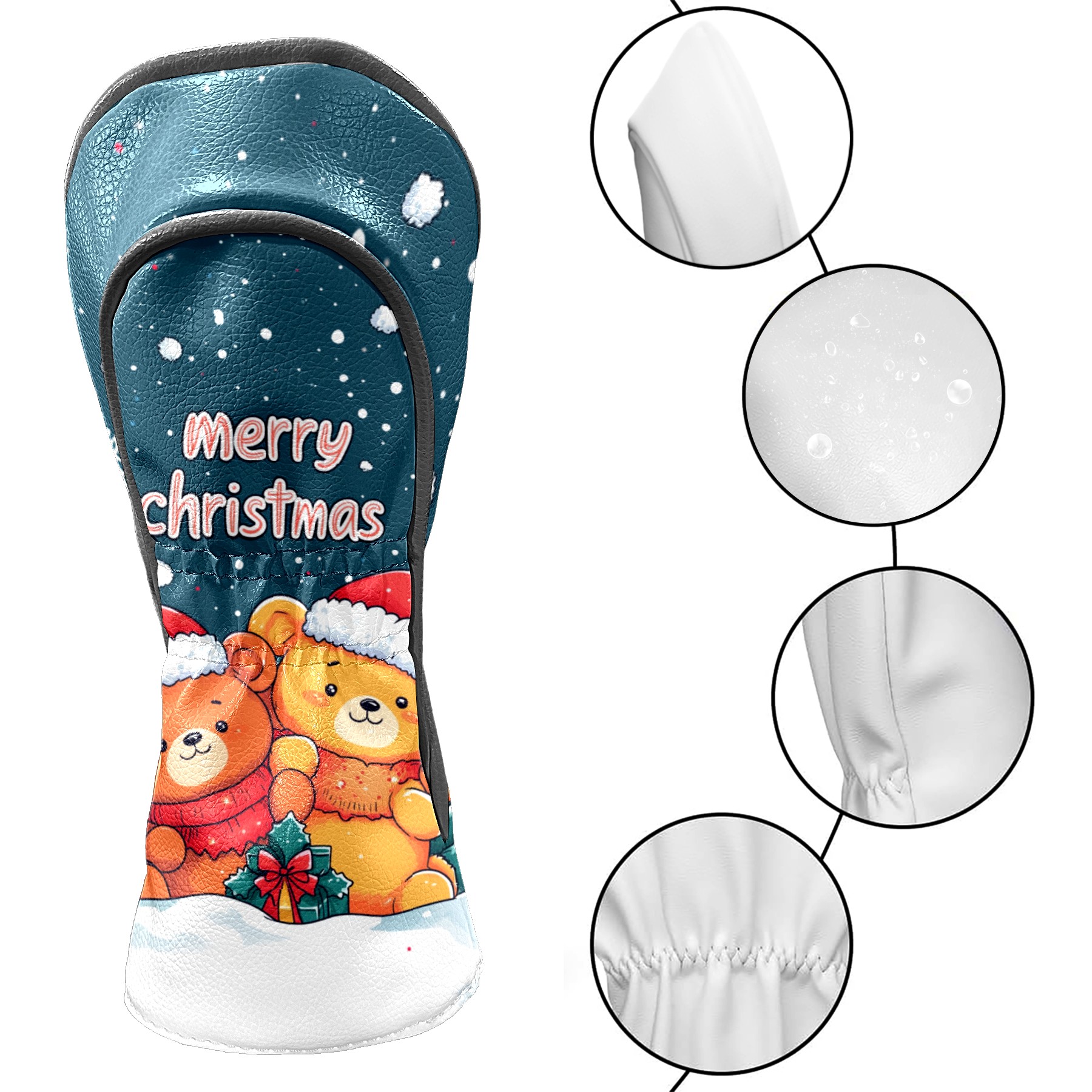 Golf Club Head Cover, High Quality PU Leather Driver and Wood Club Head Cover with Anti-Scratch Lining, Universal Gift for Men and Women Christmas Bear