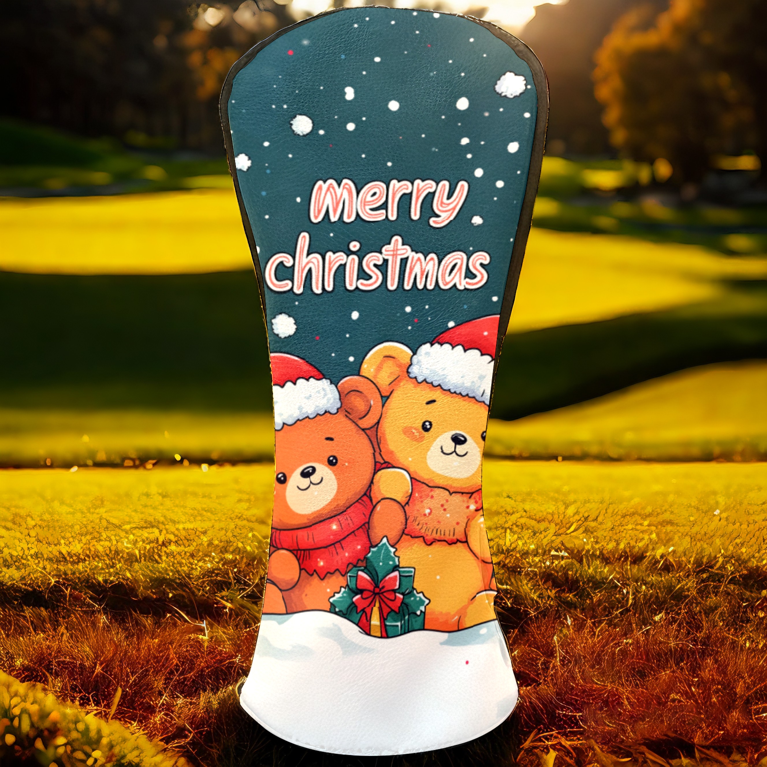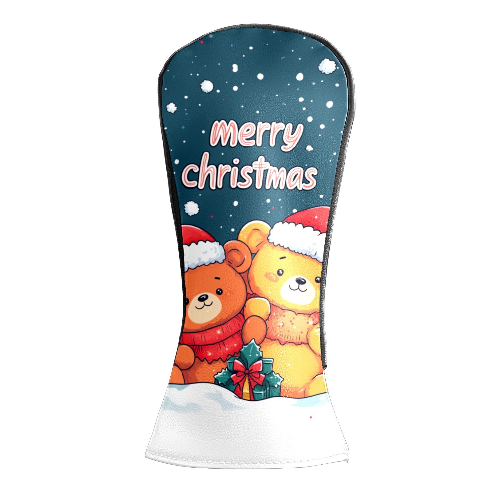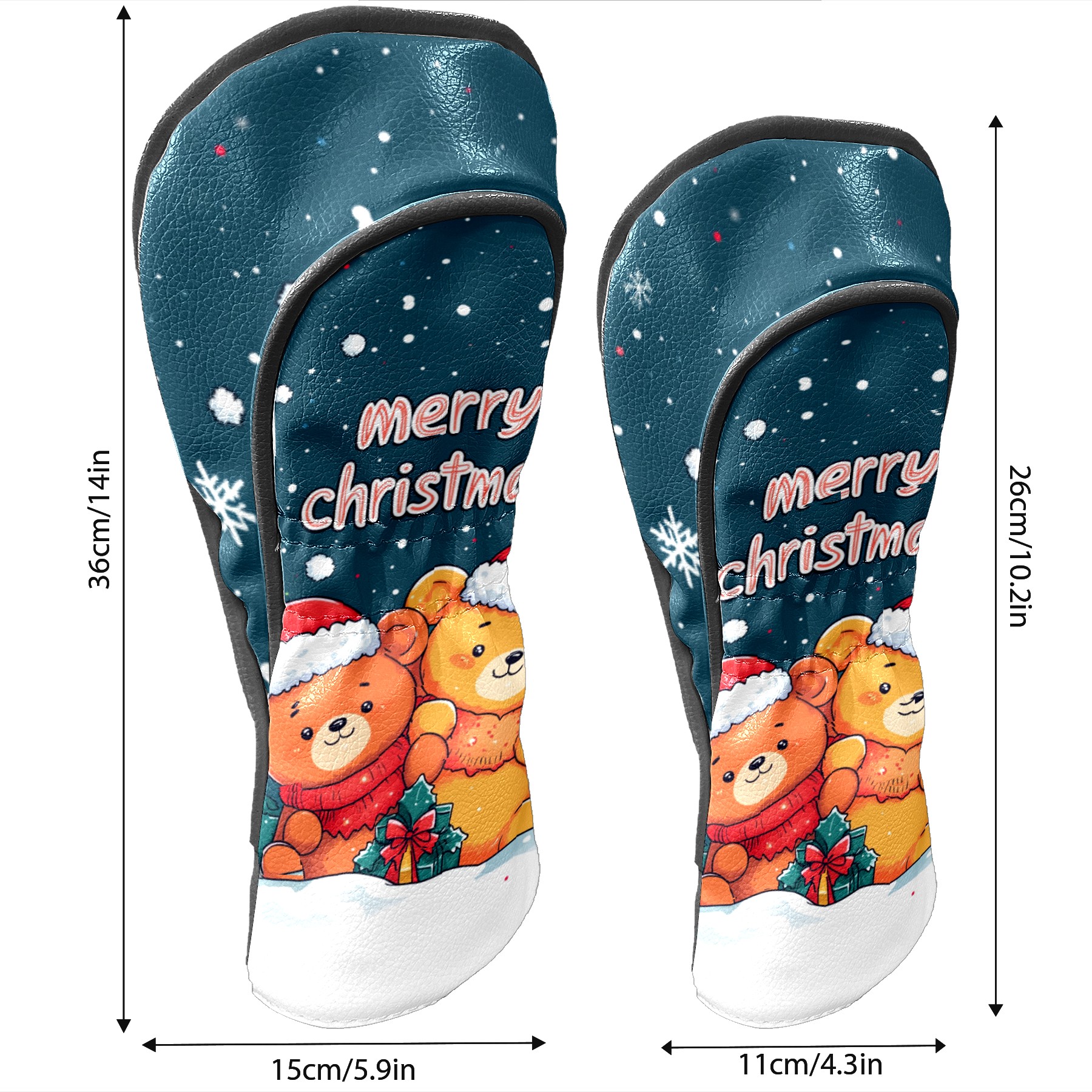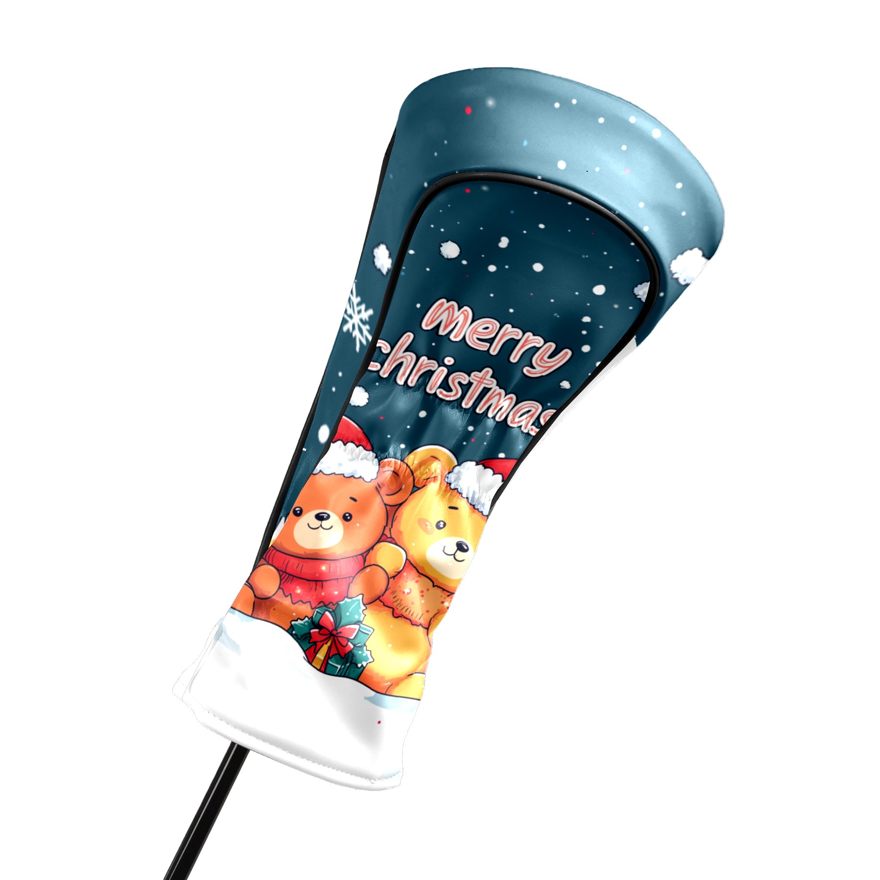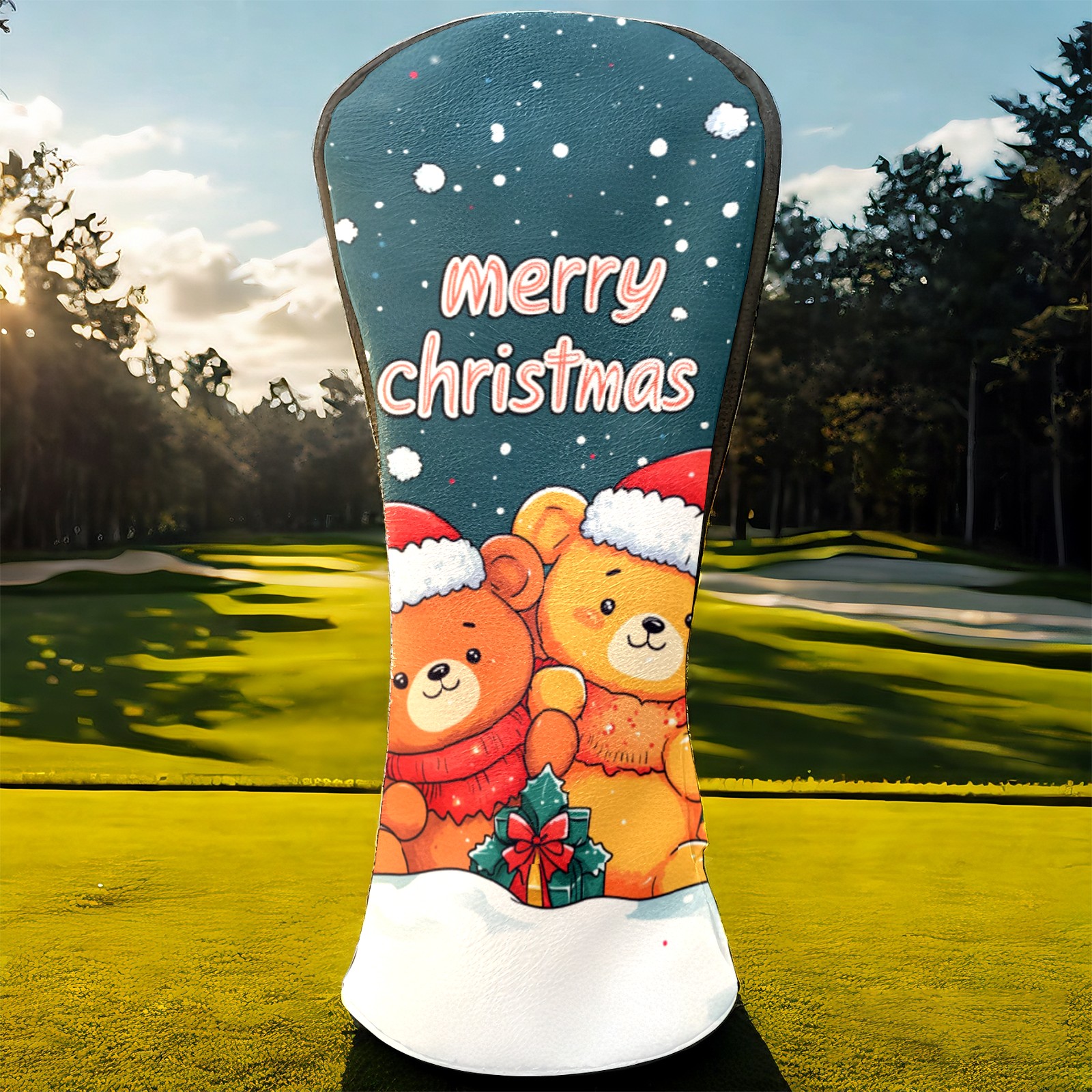 Golf Club Head Cover, High Quality PU Leather Driver and Wood Club Head Cover with Anti-Scratch Lining, Universal Gift for Men and Women Christmas Bear