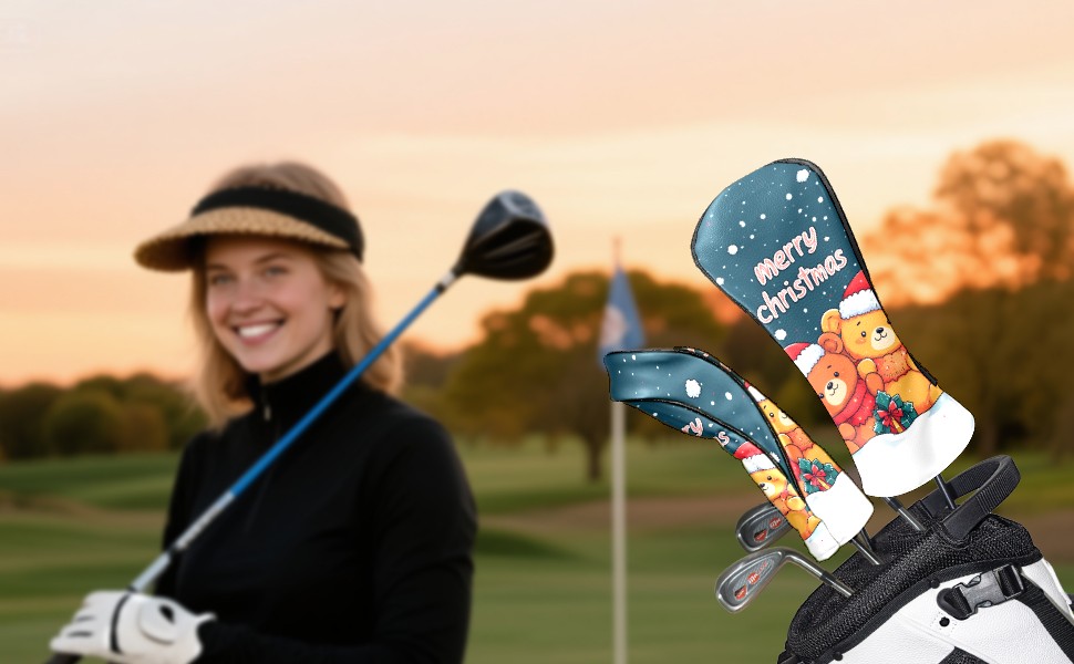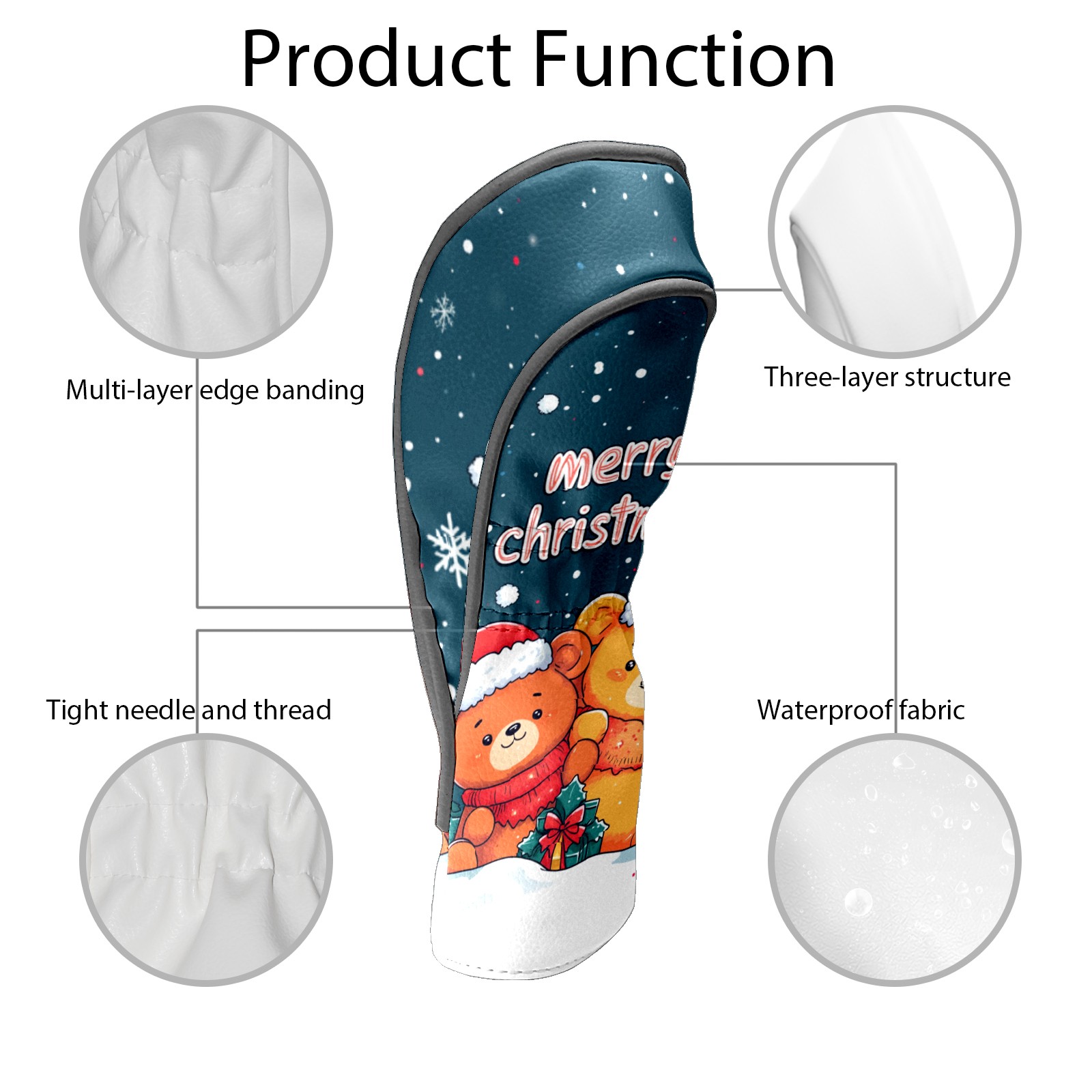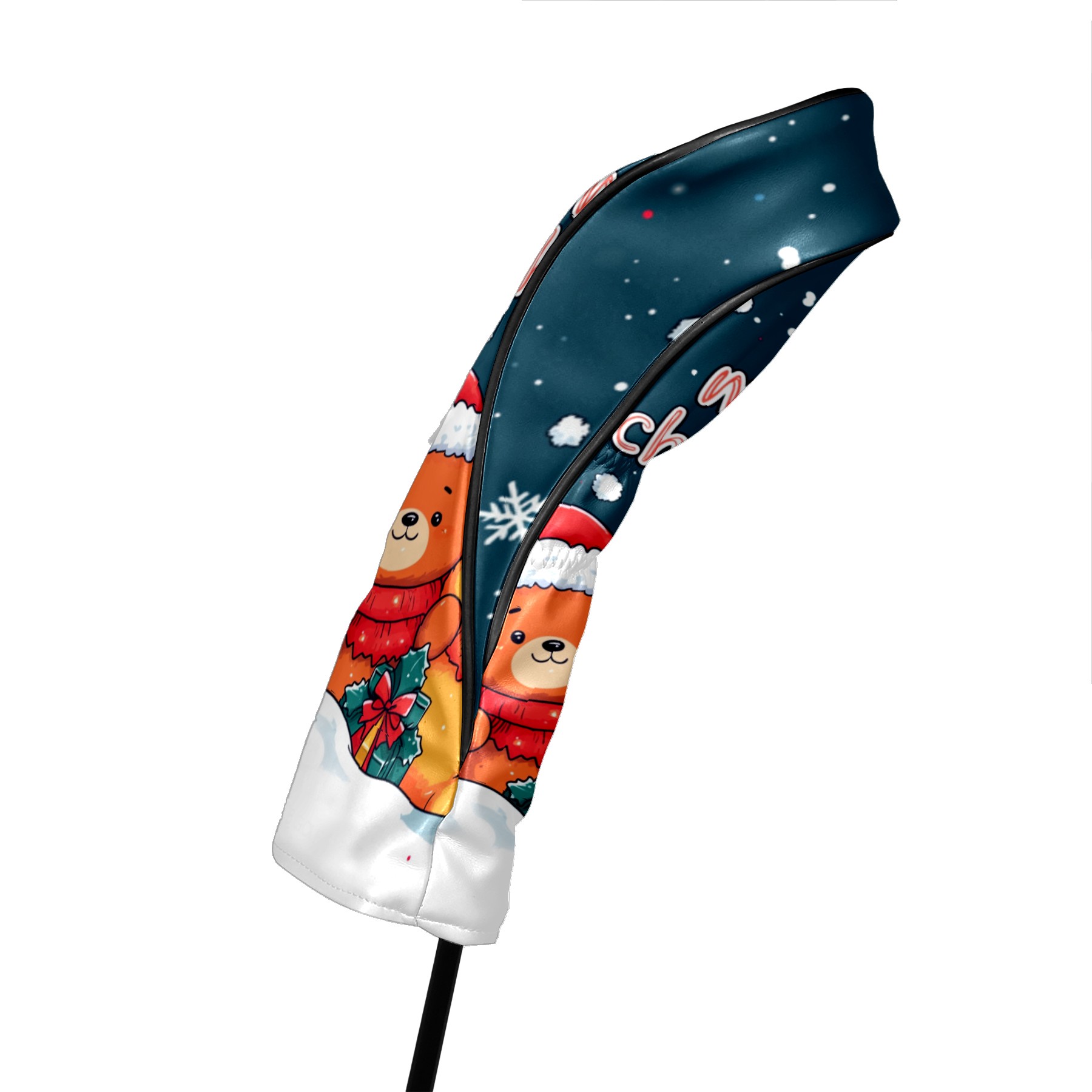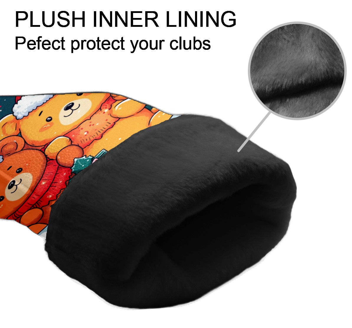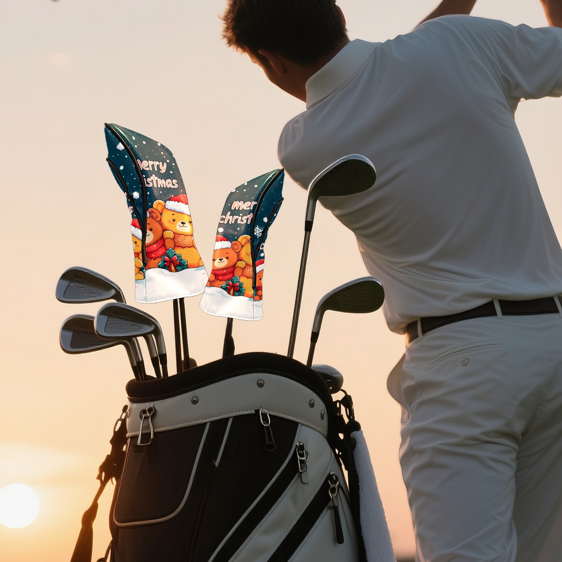 Golf Club Head Cover, High Quality PU Leather Driver and Wood Club Head Cover with Anti-Scratch Lining, Universal Gift for Men and Women Christmas Bear