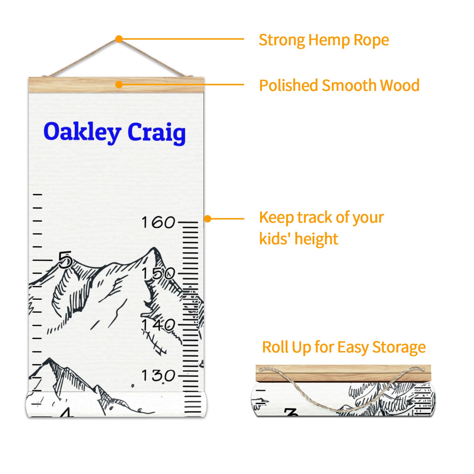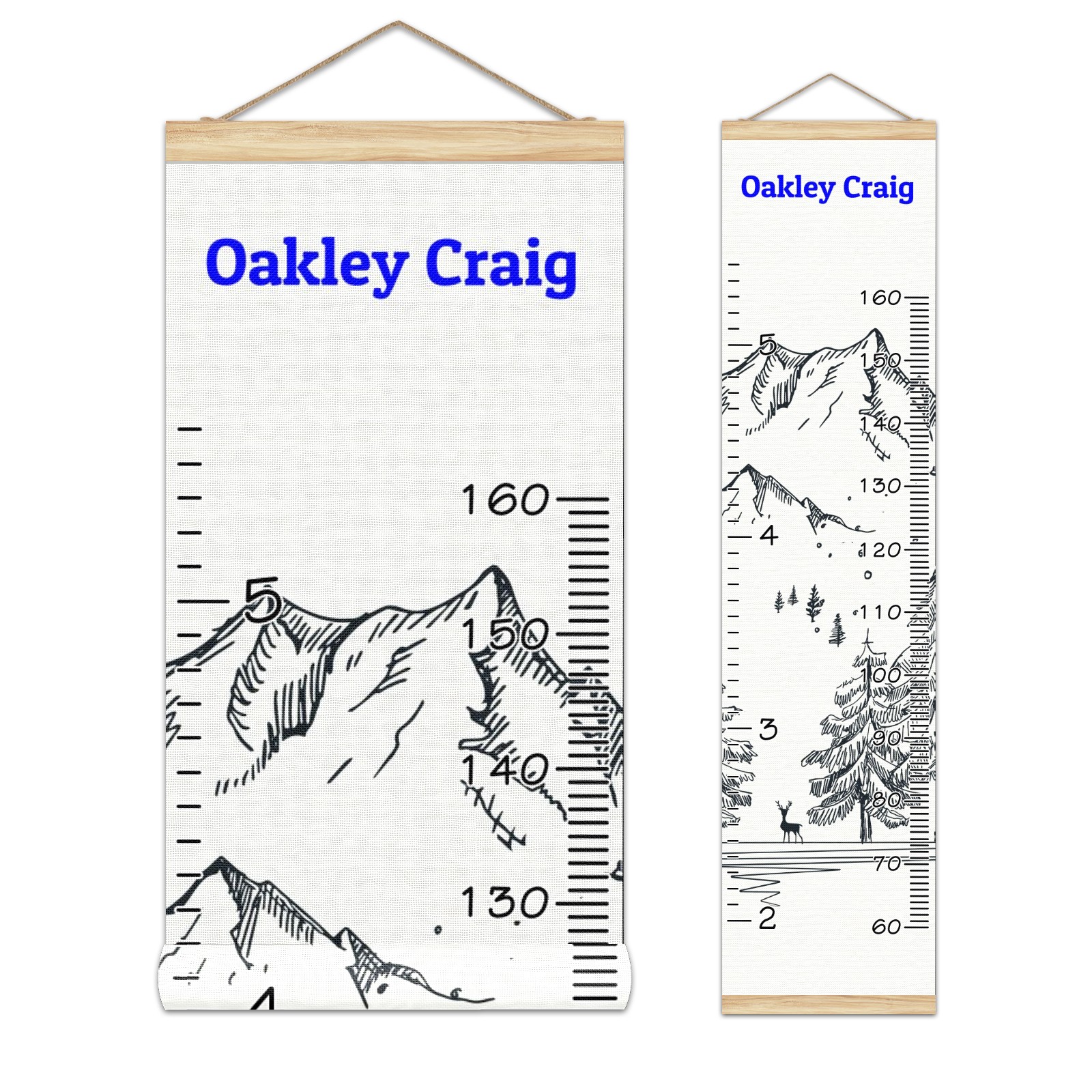Personalized Kids Name Growth Chart Ruler for Wall Wood Frame Canvas Height Measure Chart 13.4x56 in Hanging Growth Chart Winter Mountain10.27 Boys Girls Room Decor