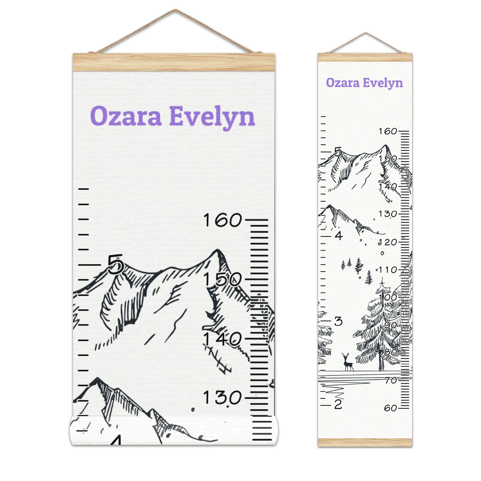 Personalized Kids Name Growth Chart Ruler for Wall Wood Frame Canvas Height Measure Chart 13.4x56 in Hanging Growth Chart Winter Mountain10.27-1 Boys Girls Room Decor