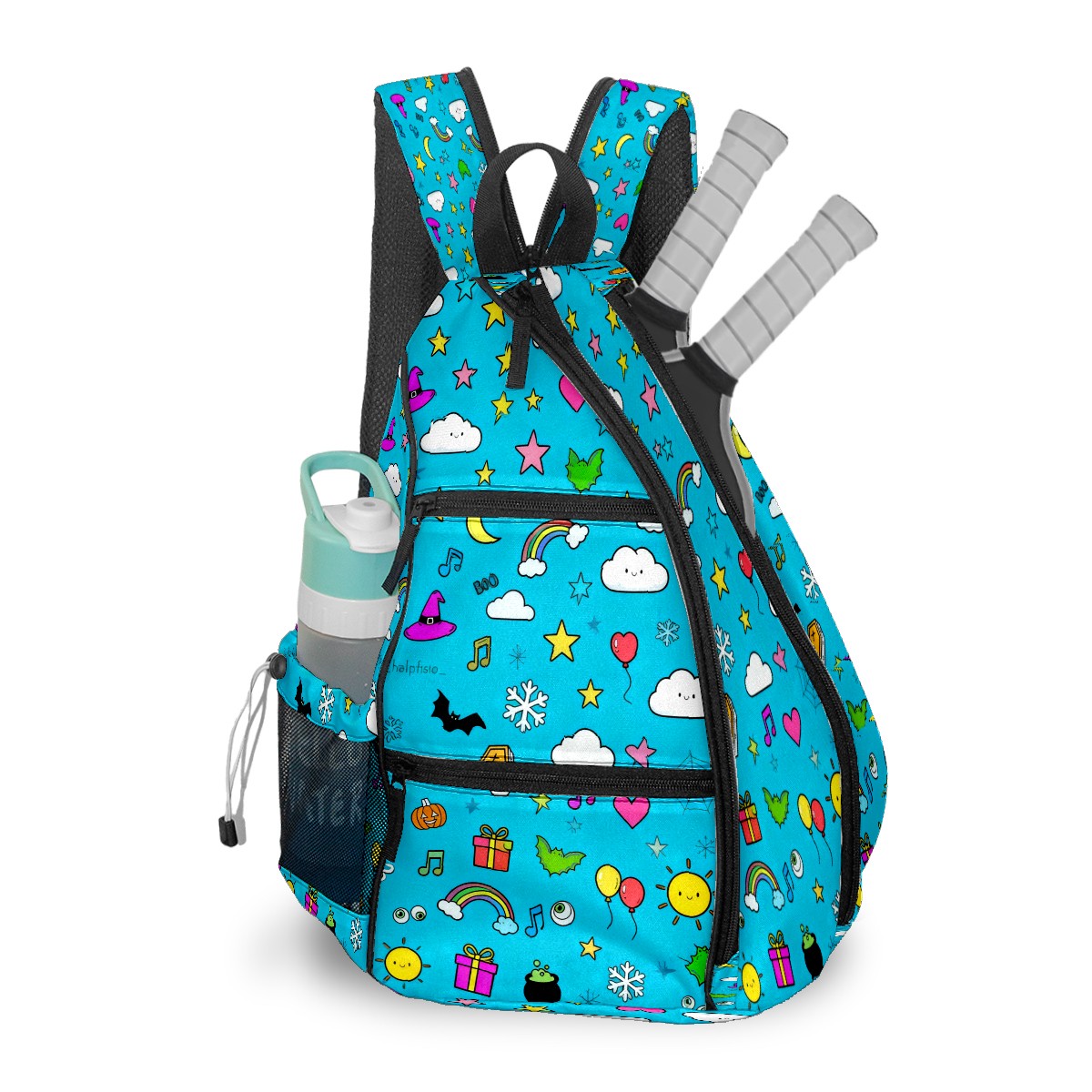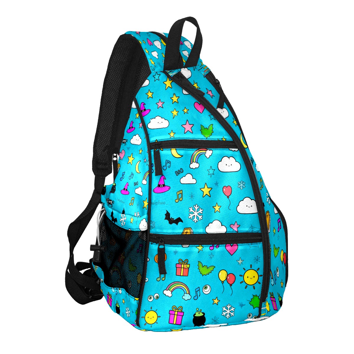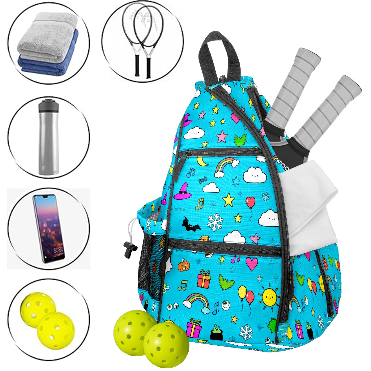 Pickleball Sling Bag for Women and Men - Backpack with Nylon Fabric/Woven Strap/Mesh Pocket/Fence Hook/Large Capacity/Adjustable Sling Bag Colorful Rainbow