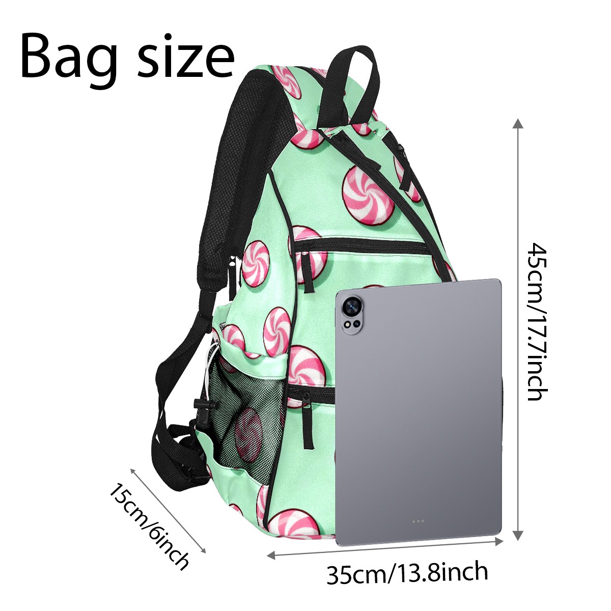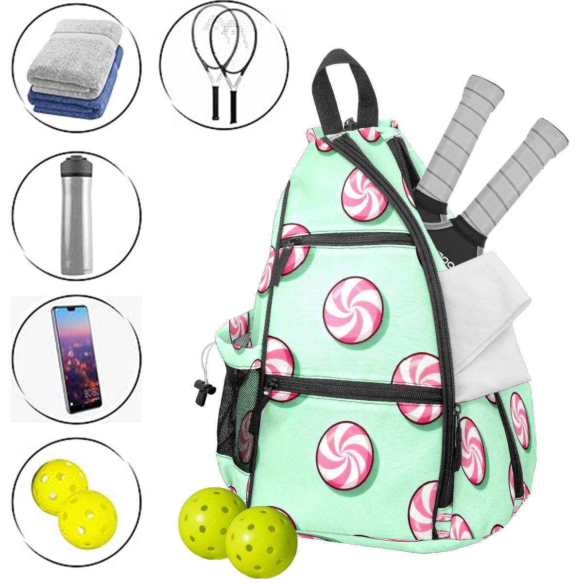Pickleball Sling Bag for Women and Men - Backpack with Nylon Fabric/Woven Strap/Mesh Pocket/Fence Hook/Large Capacity/Adjustable Sling Bag Pink Candy