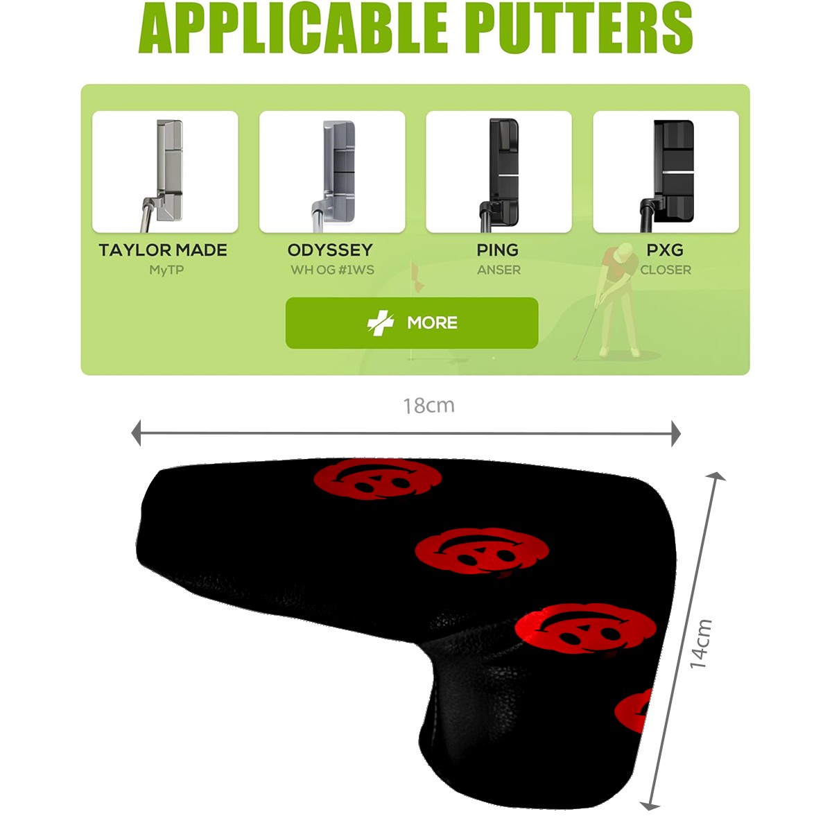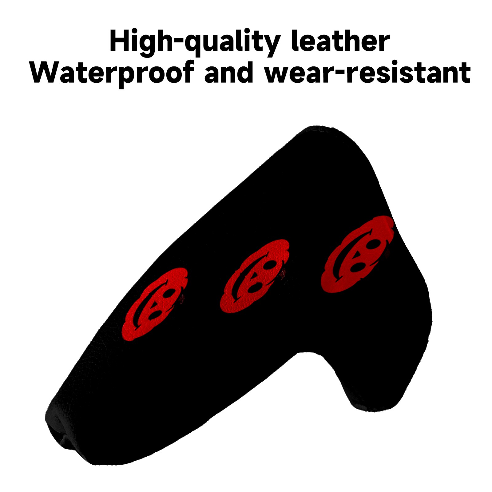 Golf Putter Cover, Water Resistant and Fleece Lined Golf Club Head Covers, PU Leather Head Covers for Men and Women Golfers Red Evil Ghost