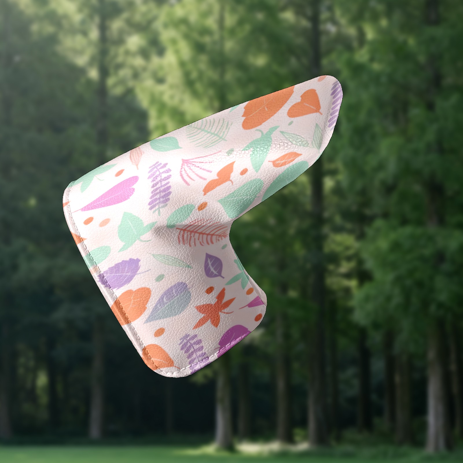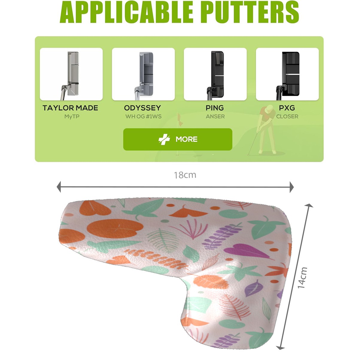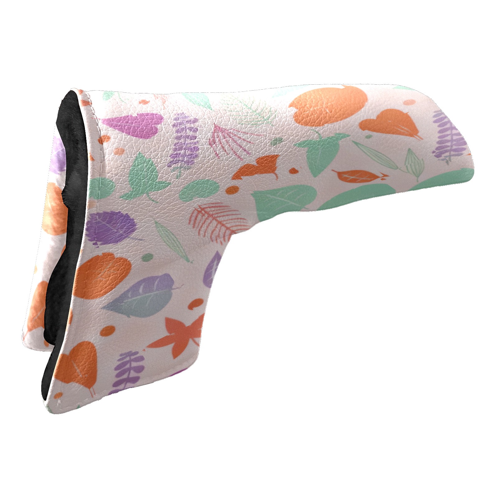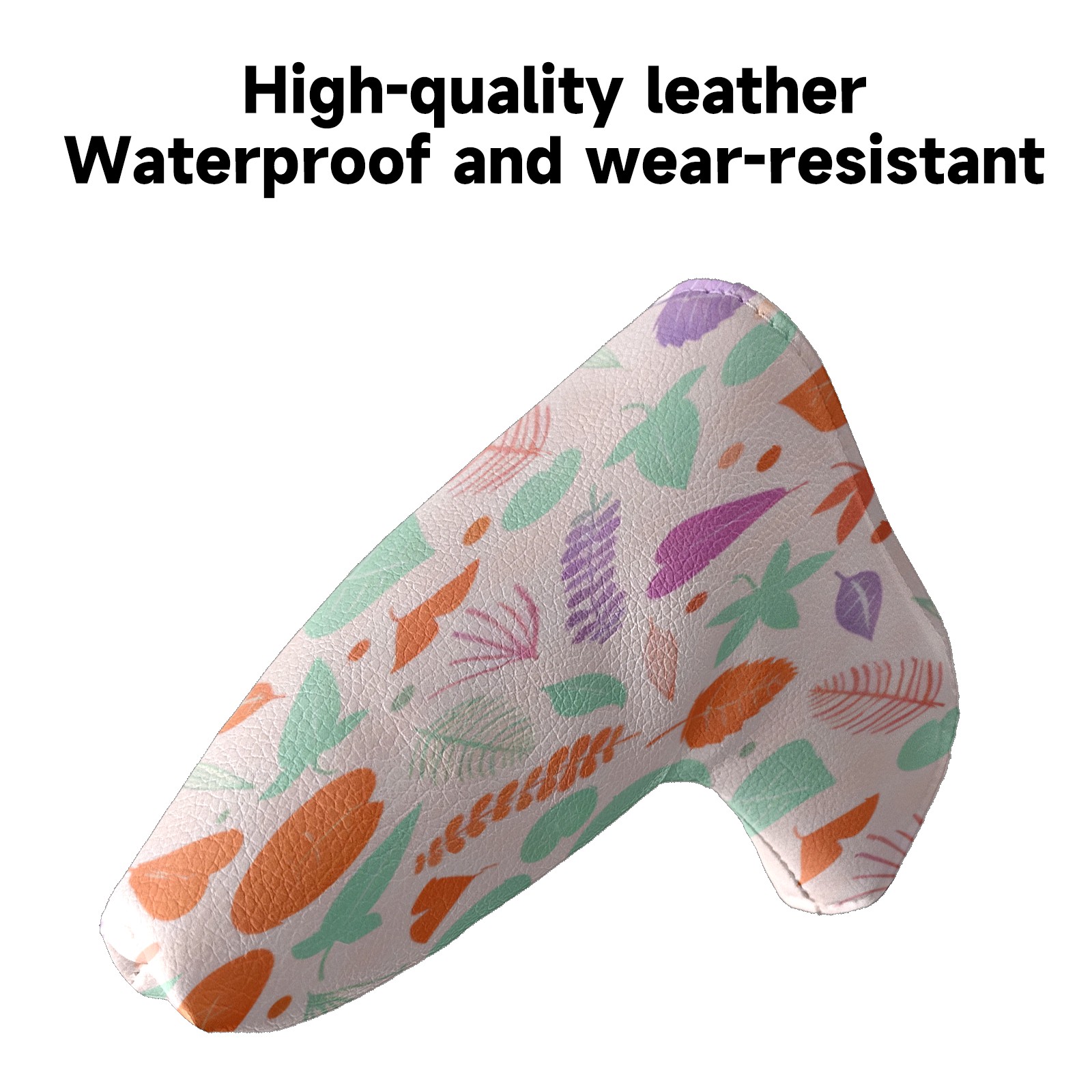 Golf Putter Cover, Water Resistant and Fleece Lined Golf Club Head Covers, PU Leather Head Covers for Men and Women Golfers Colorful Leaf