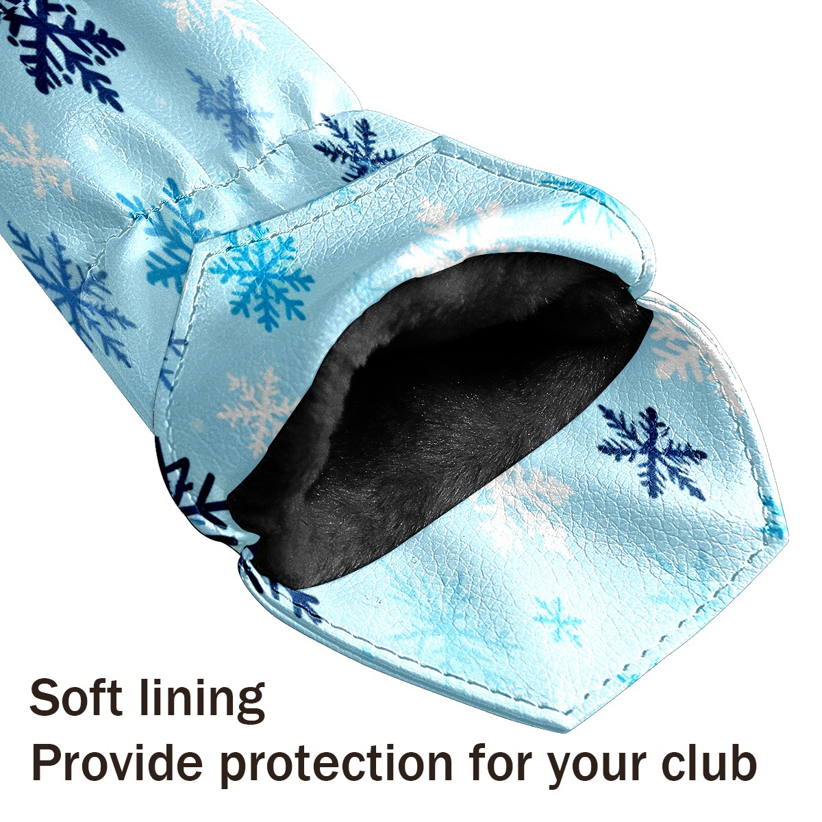 PU Leather Golf Putter Head Covers for Driver, Fairway Wood & Hybrid Clubs, Unisex, Fits All Brands Blue Snowflake