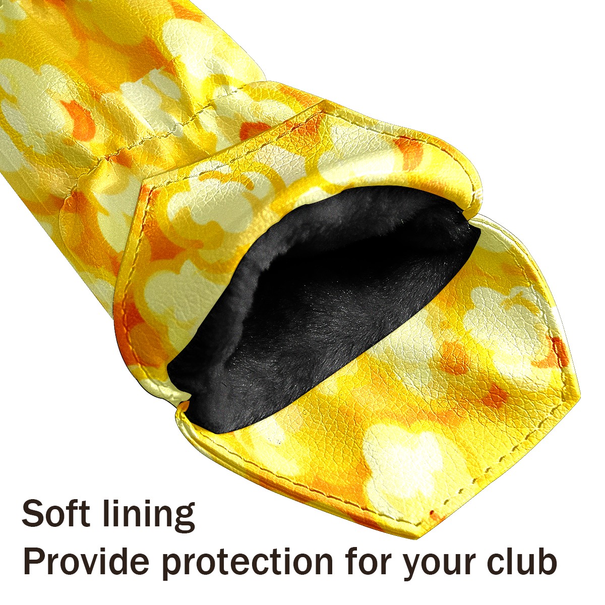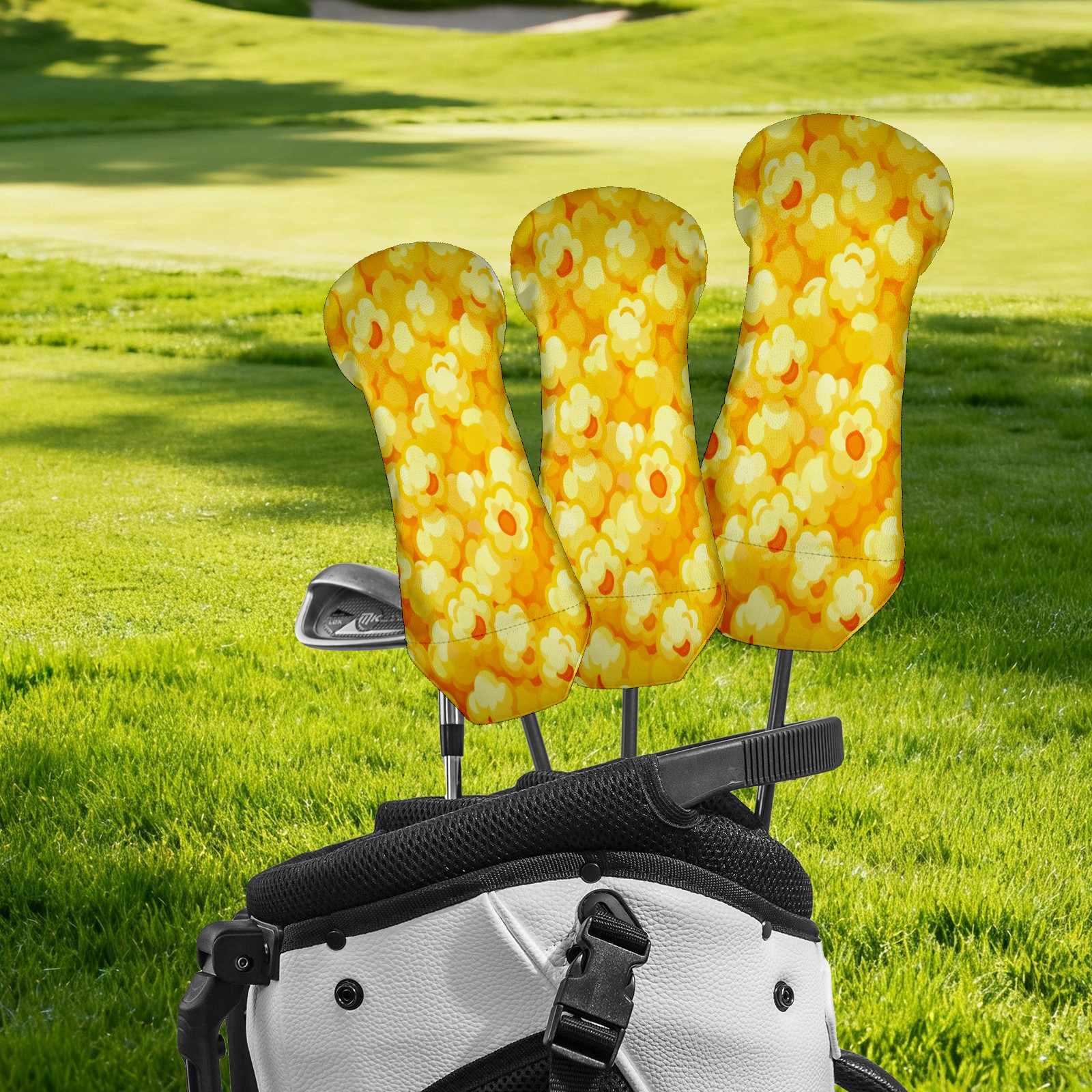PU Leather Golf Putter Head Covers for Driver, Fairway Wood & Hybrid Clubs, Unisex, Fits All Brands Golden Popcorn