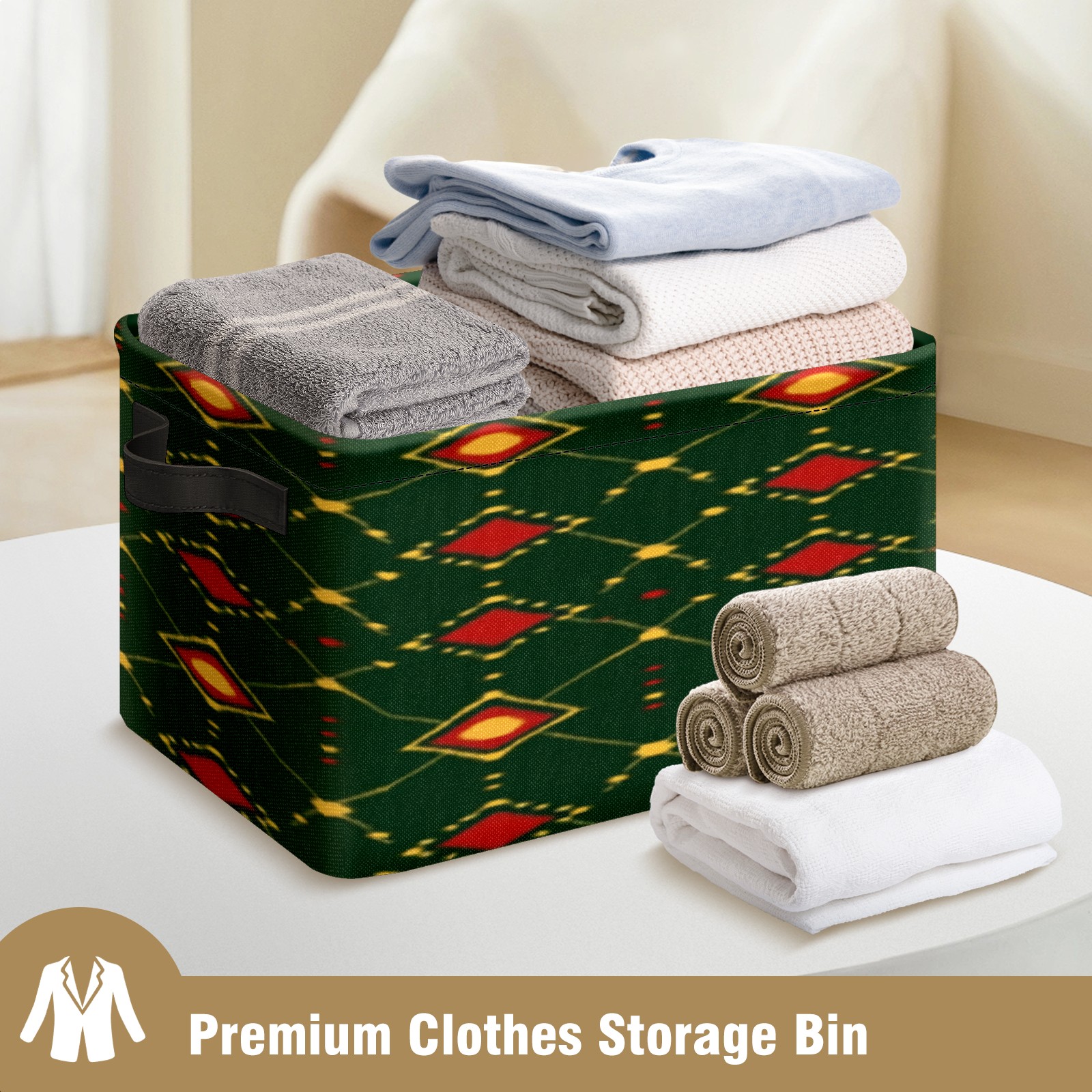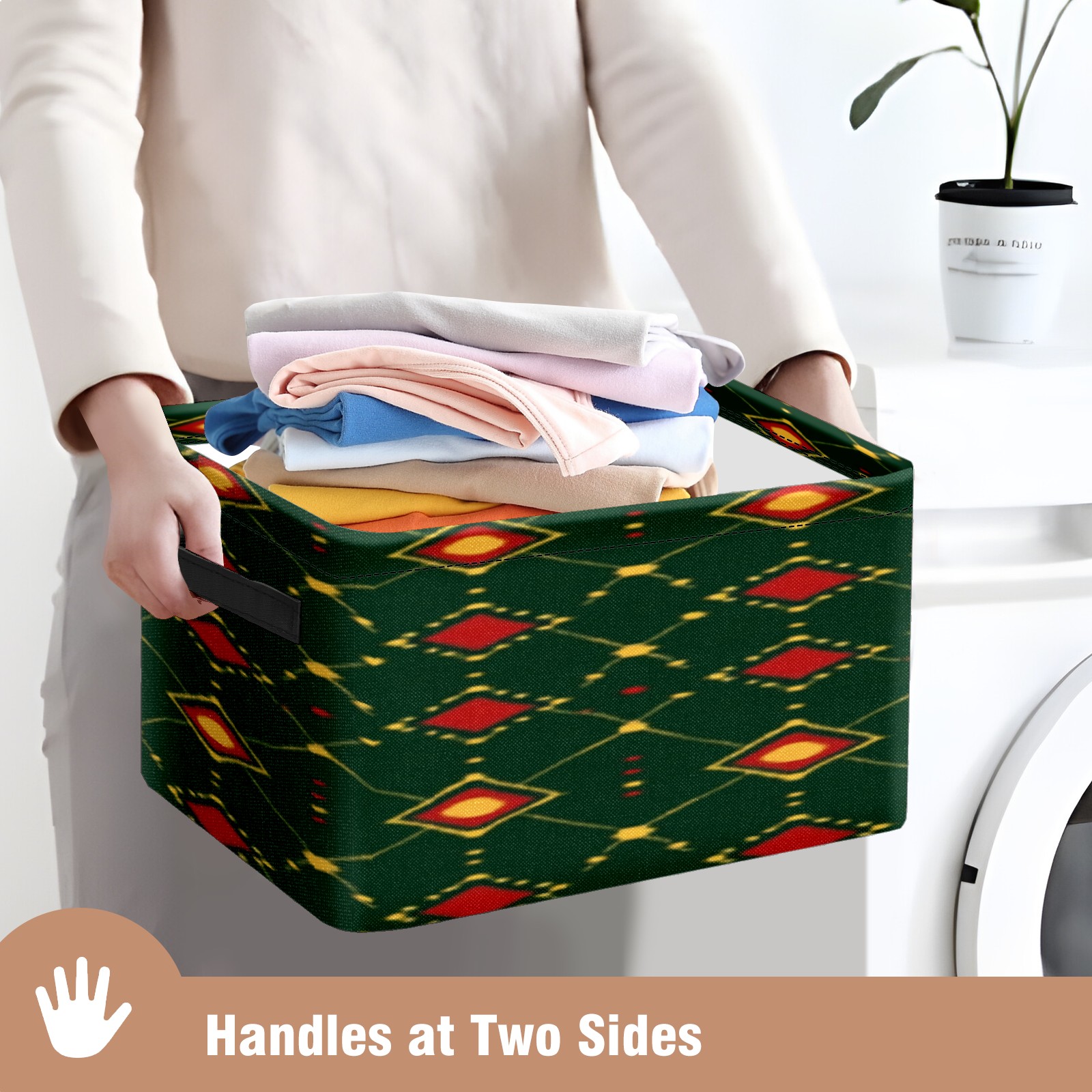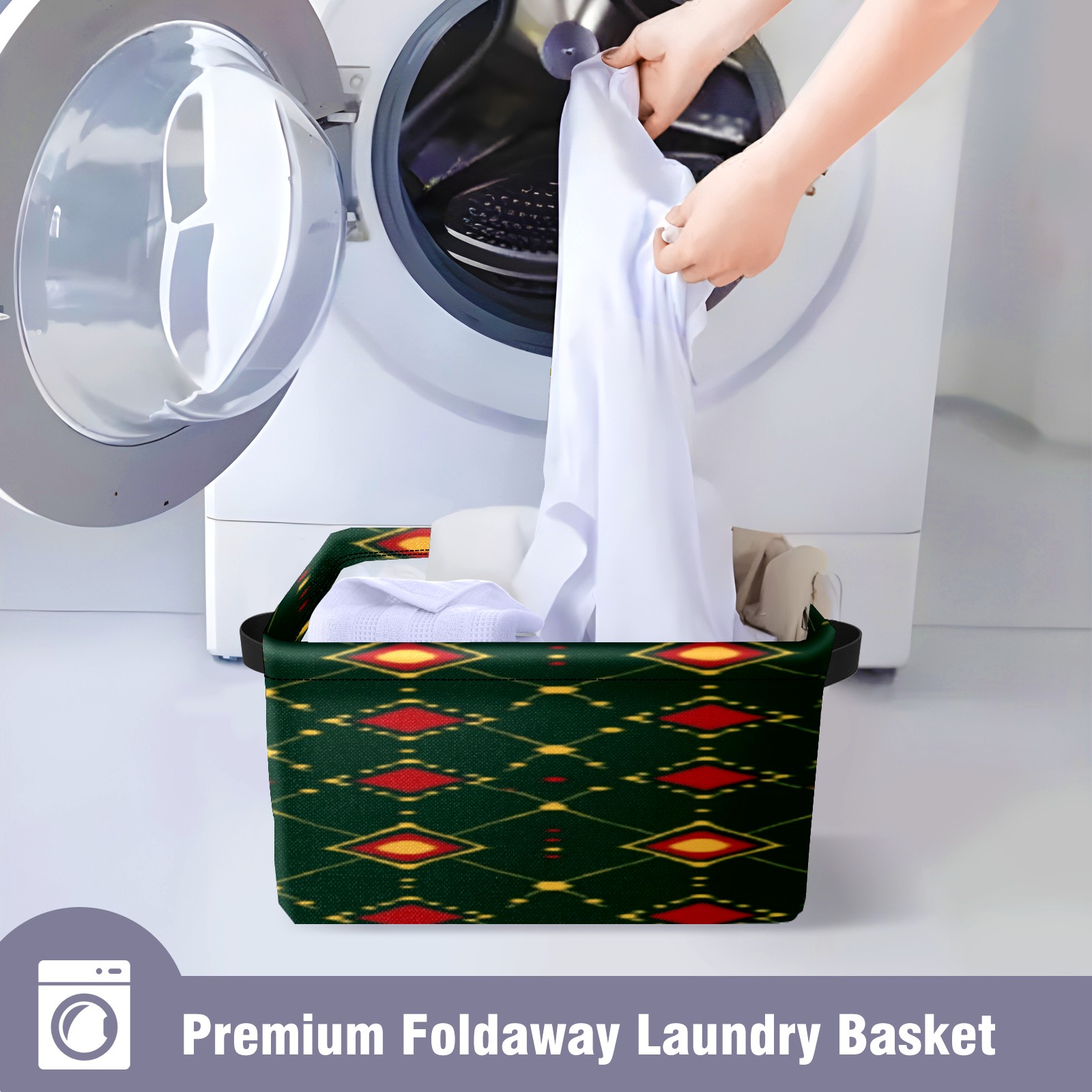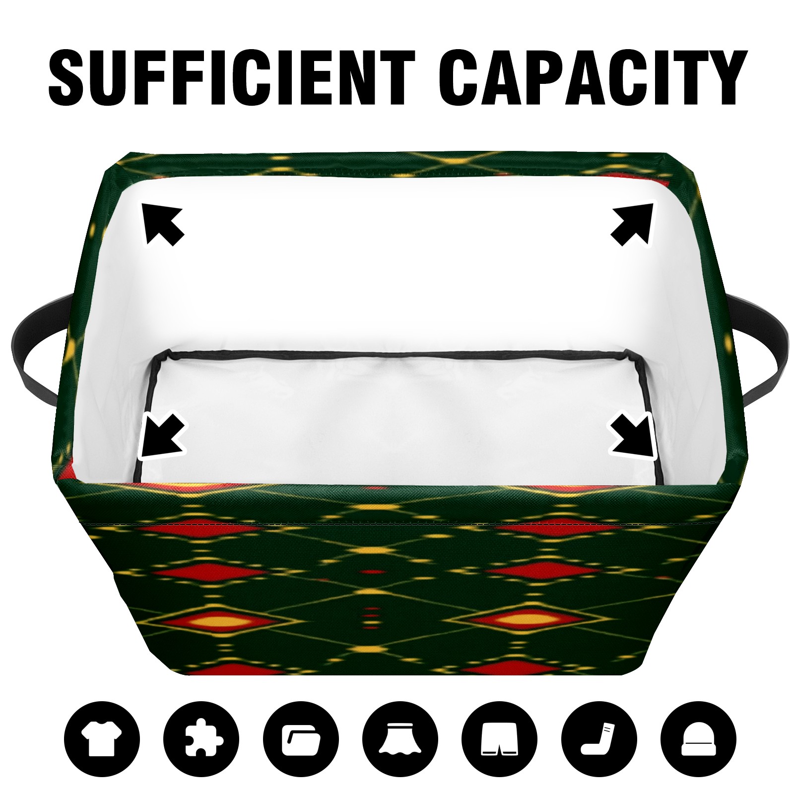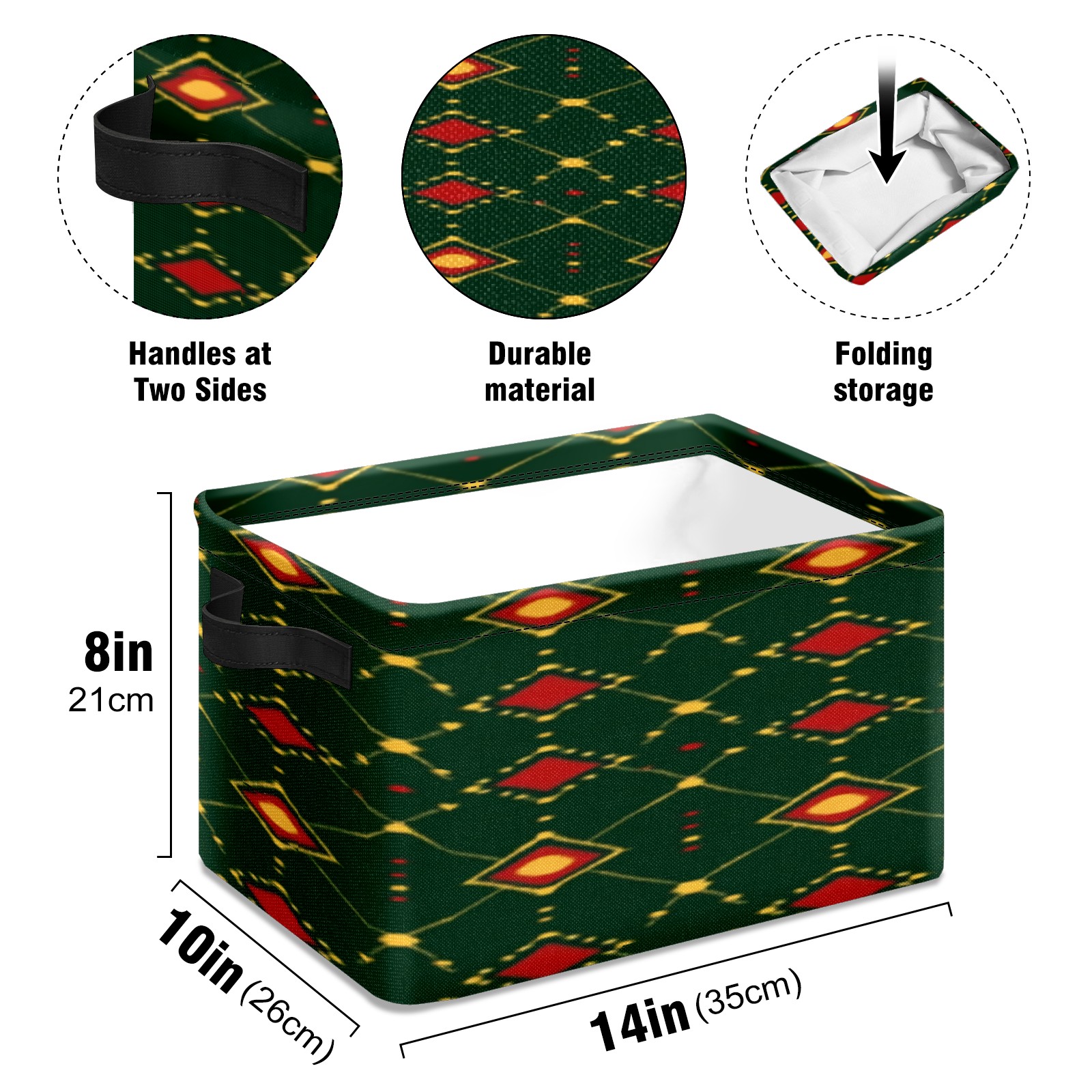 Foldable and Stackable Fabric Storage Basket for Home Organization with Handles, Decorative Closet Bins for Shelves, Laundry, and Toy Storage( Green And Red Christmas)