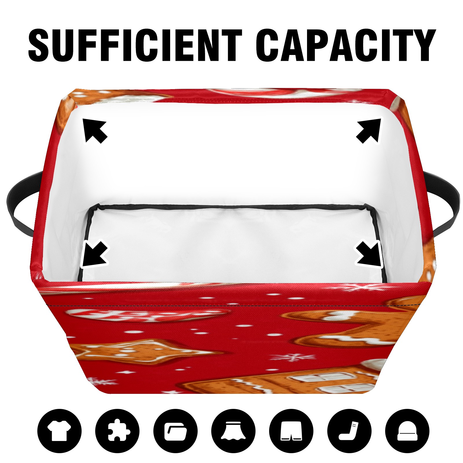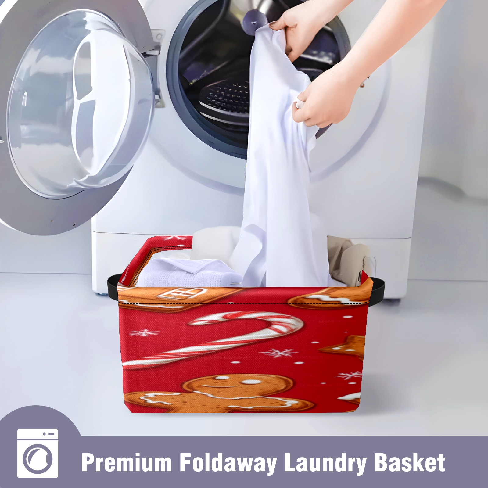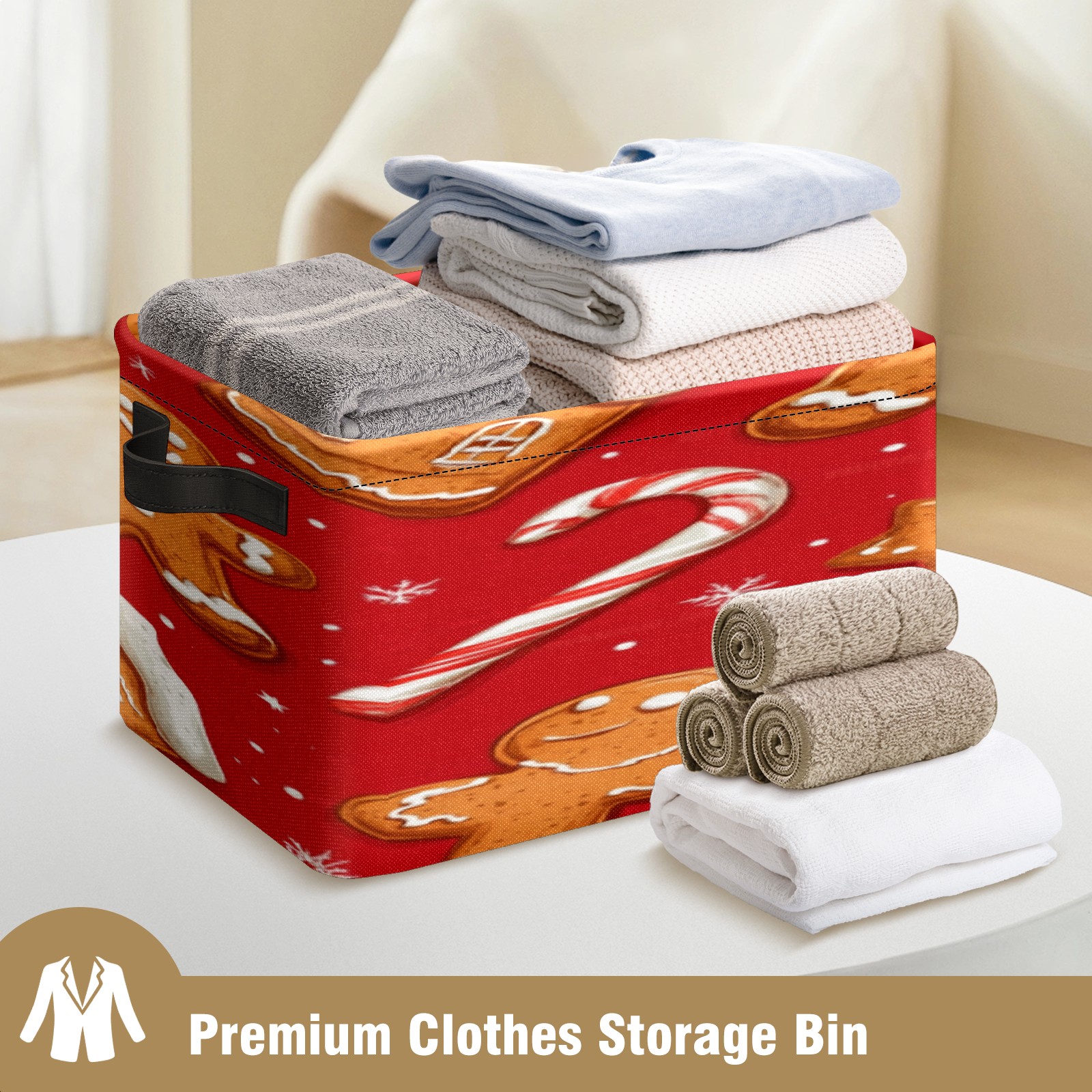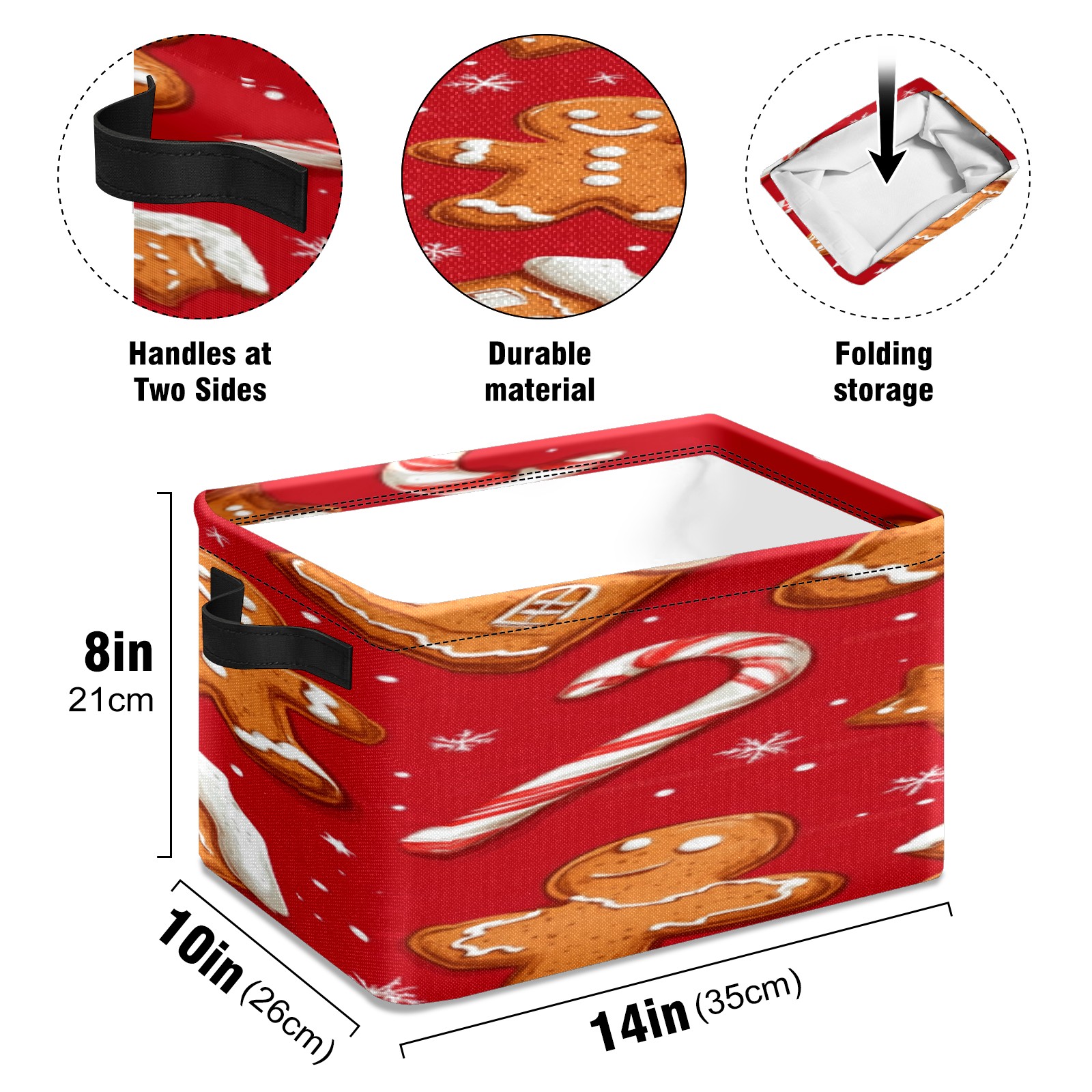 Foldable and Stackable Fabric Storage Basket for Home Organization with Handles, Decorative Closet Bins for Shelves, Laundry, and Toy Storage( Cookies And Candy Cane)