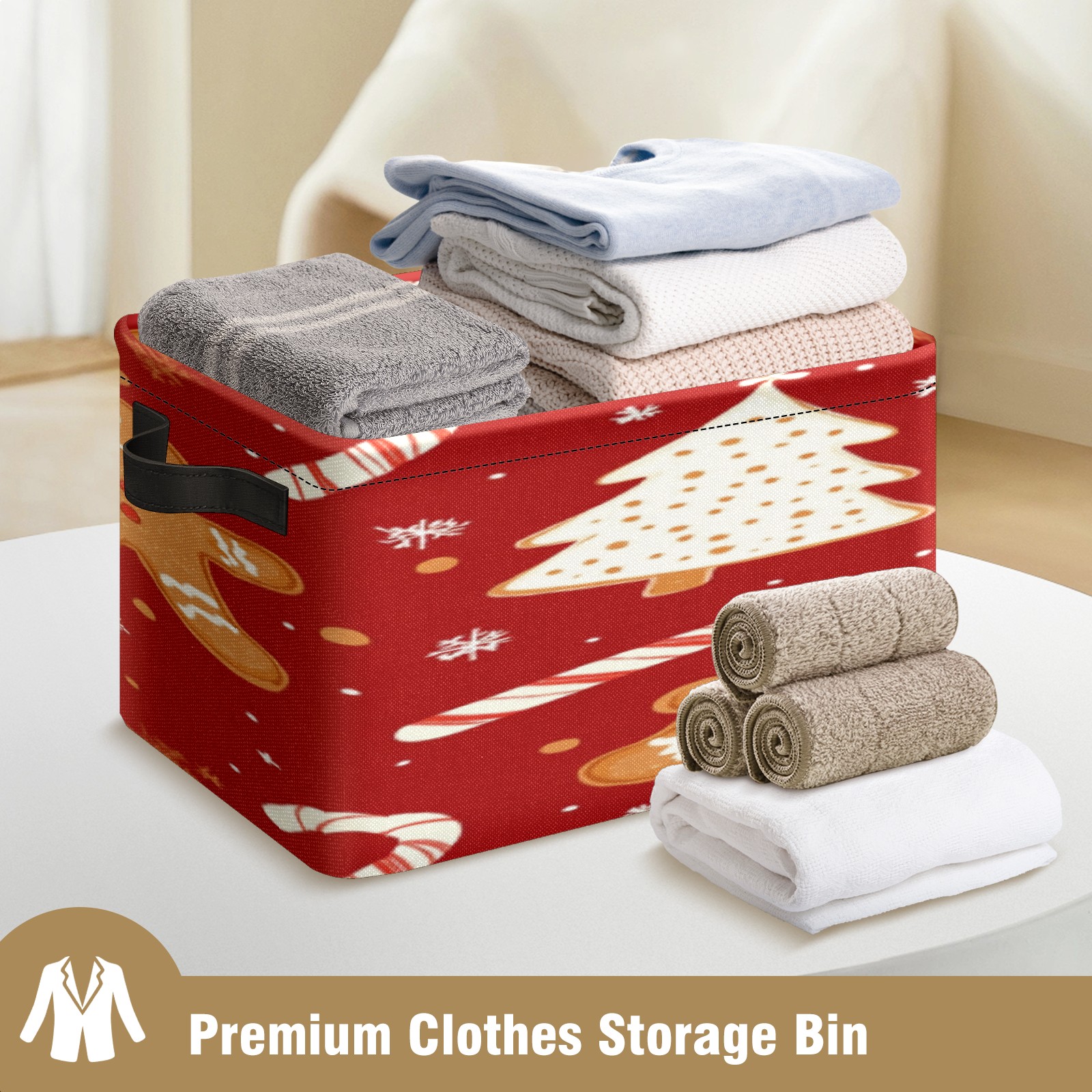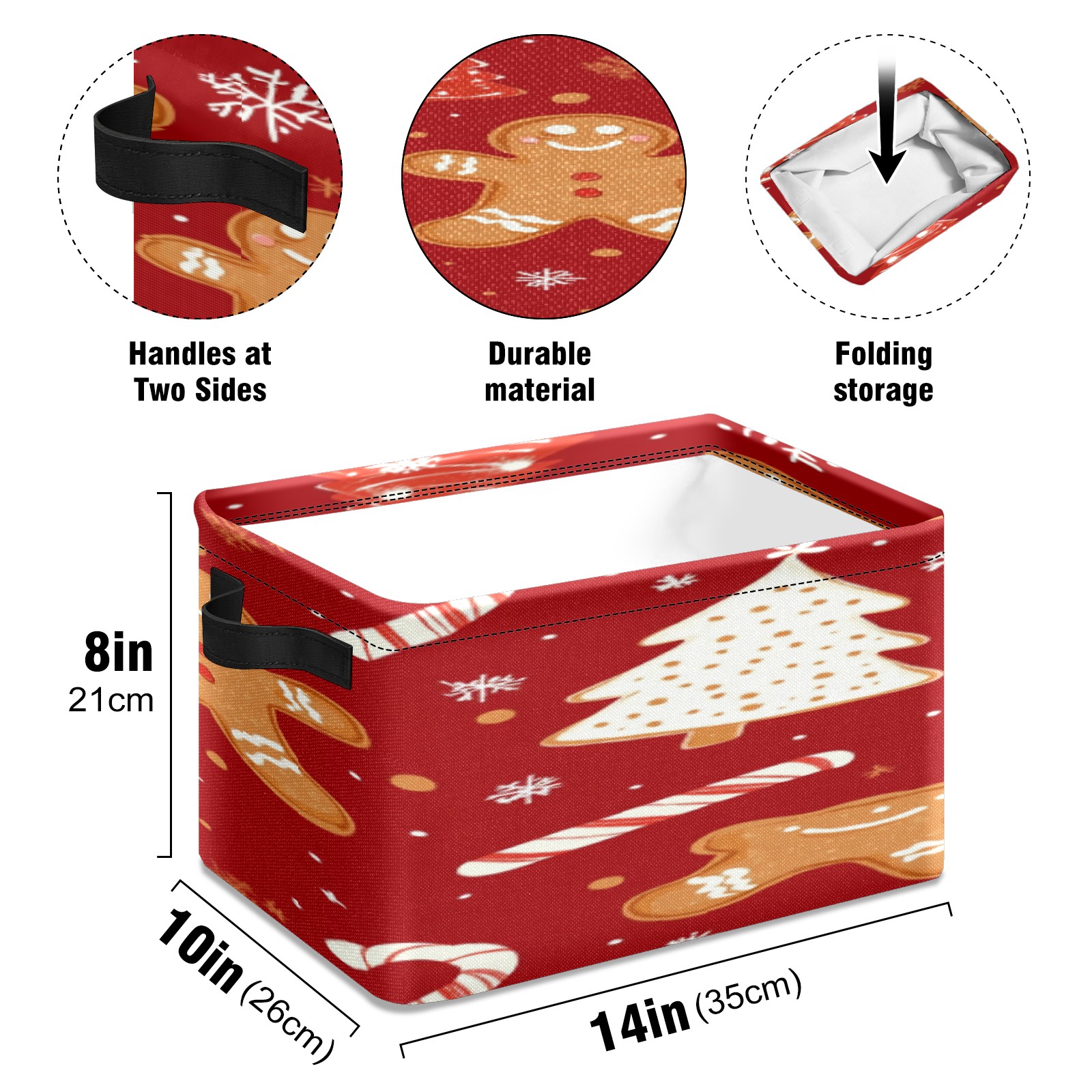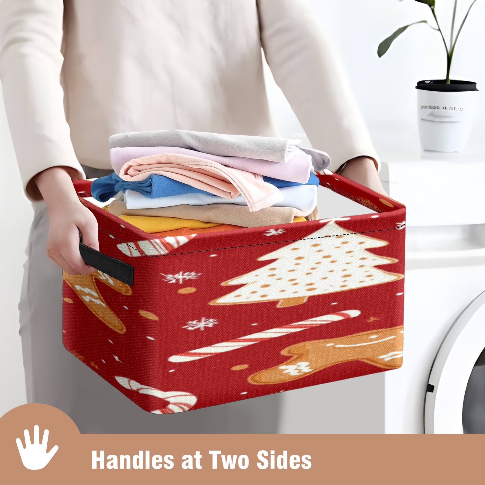 Foldable and Stackable Fabric Storage Basket for Home Organization with Handles, Decorative Closet Bins for Shelves, Laundry, and Toy Storage( Christmas Tree And Candy Cane)