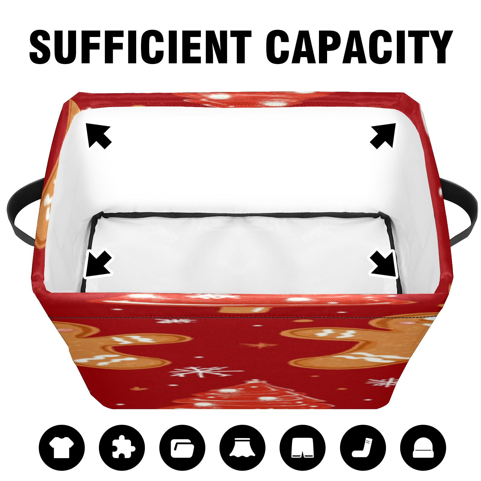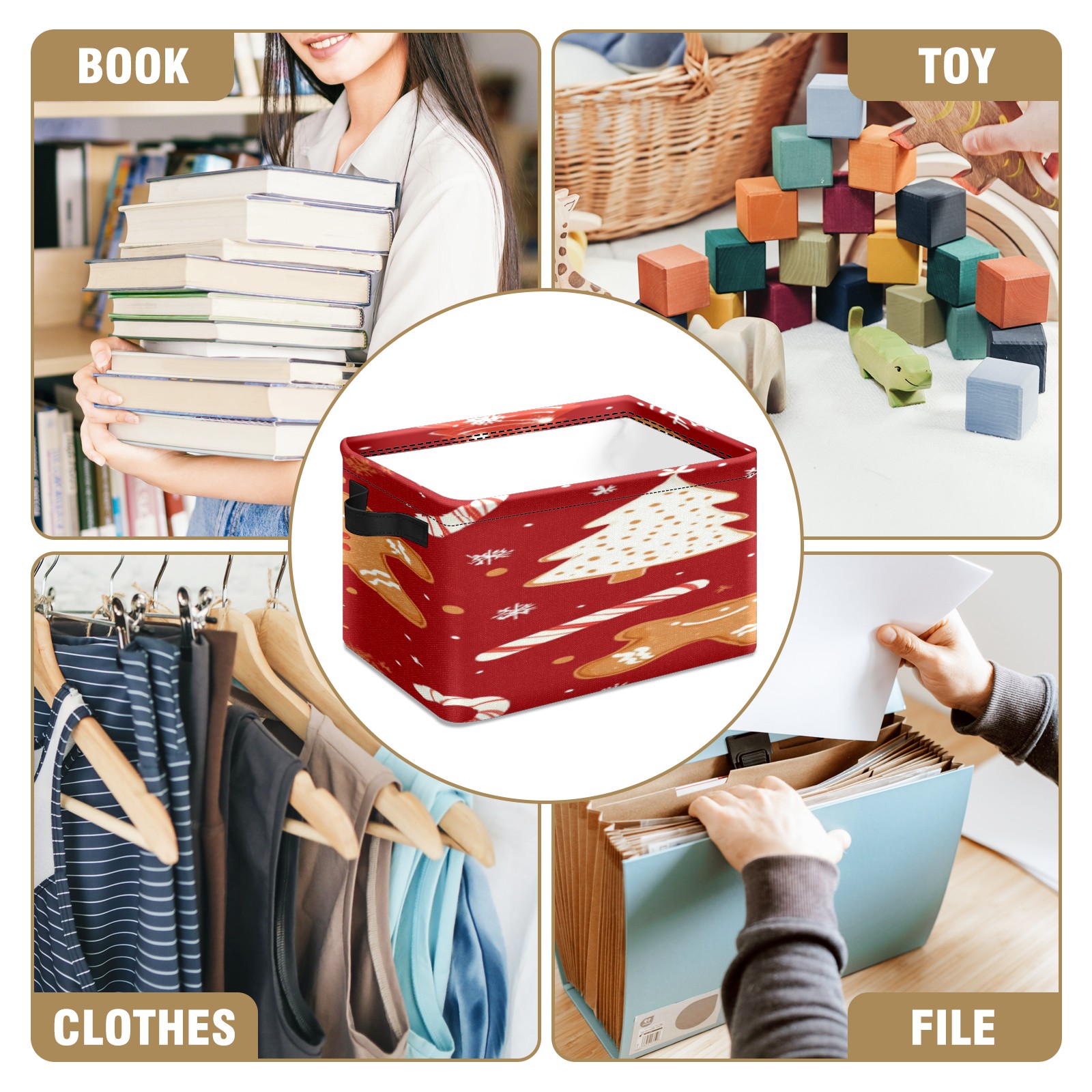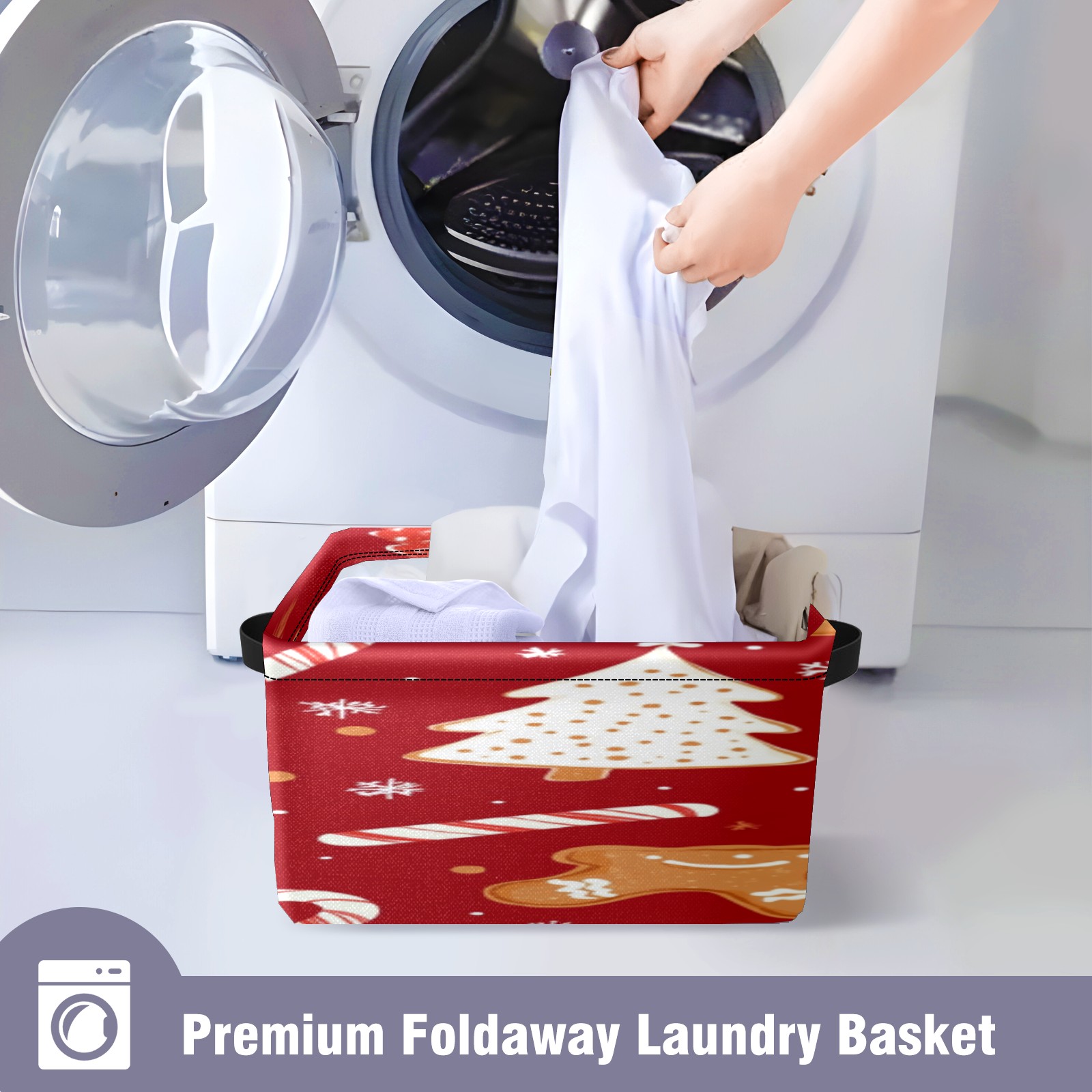 Foldable and Stackable Fabric Storage Basket for Home Organization with Handles, Decorative Closet Bins for Shelves, Laundry, and Toy Storage( Christmas Tree And Candy Cane)