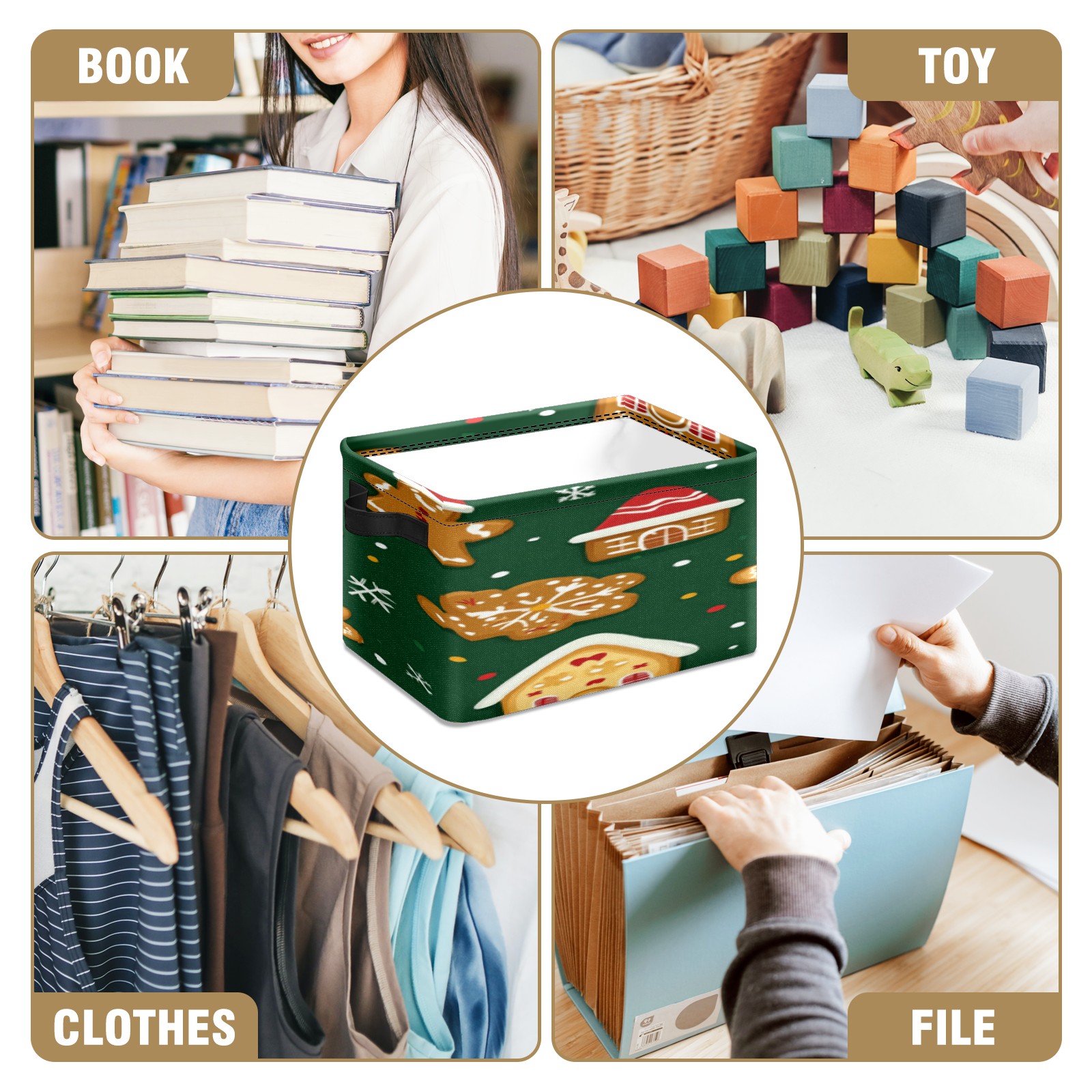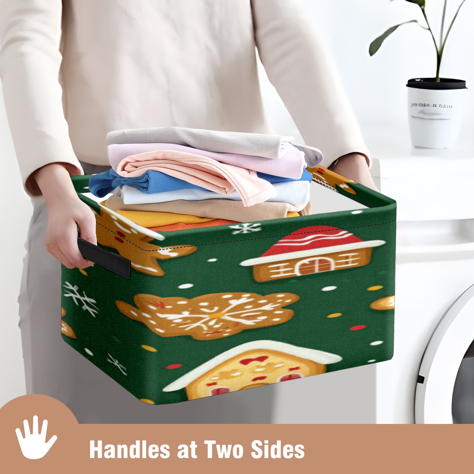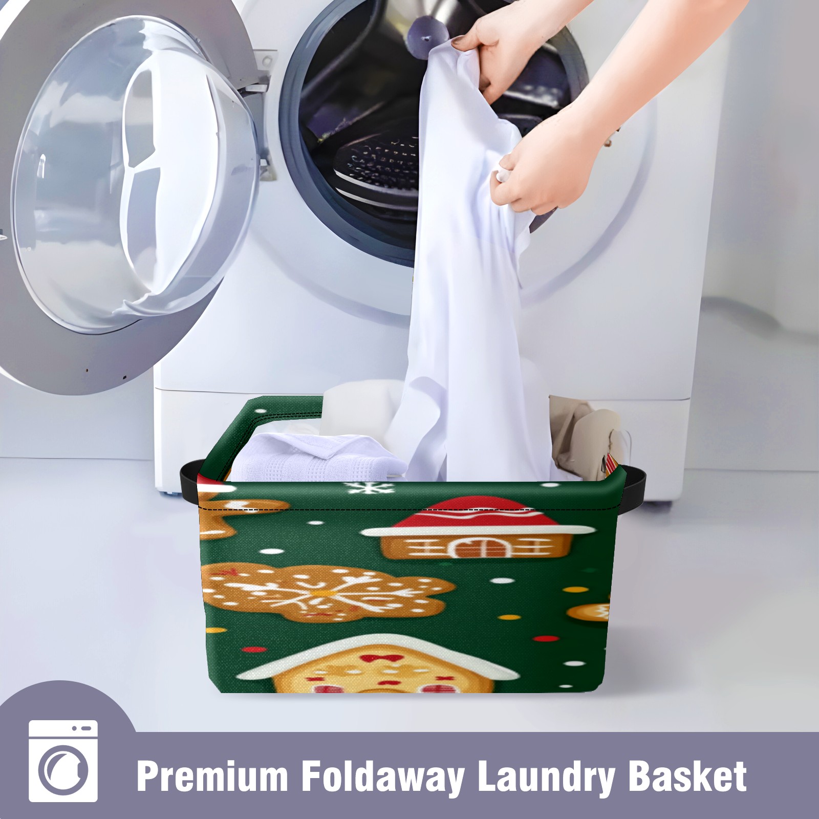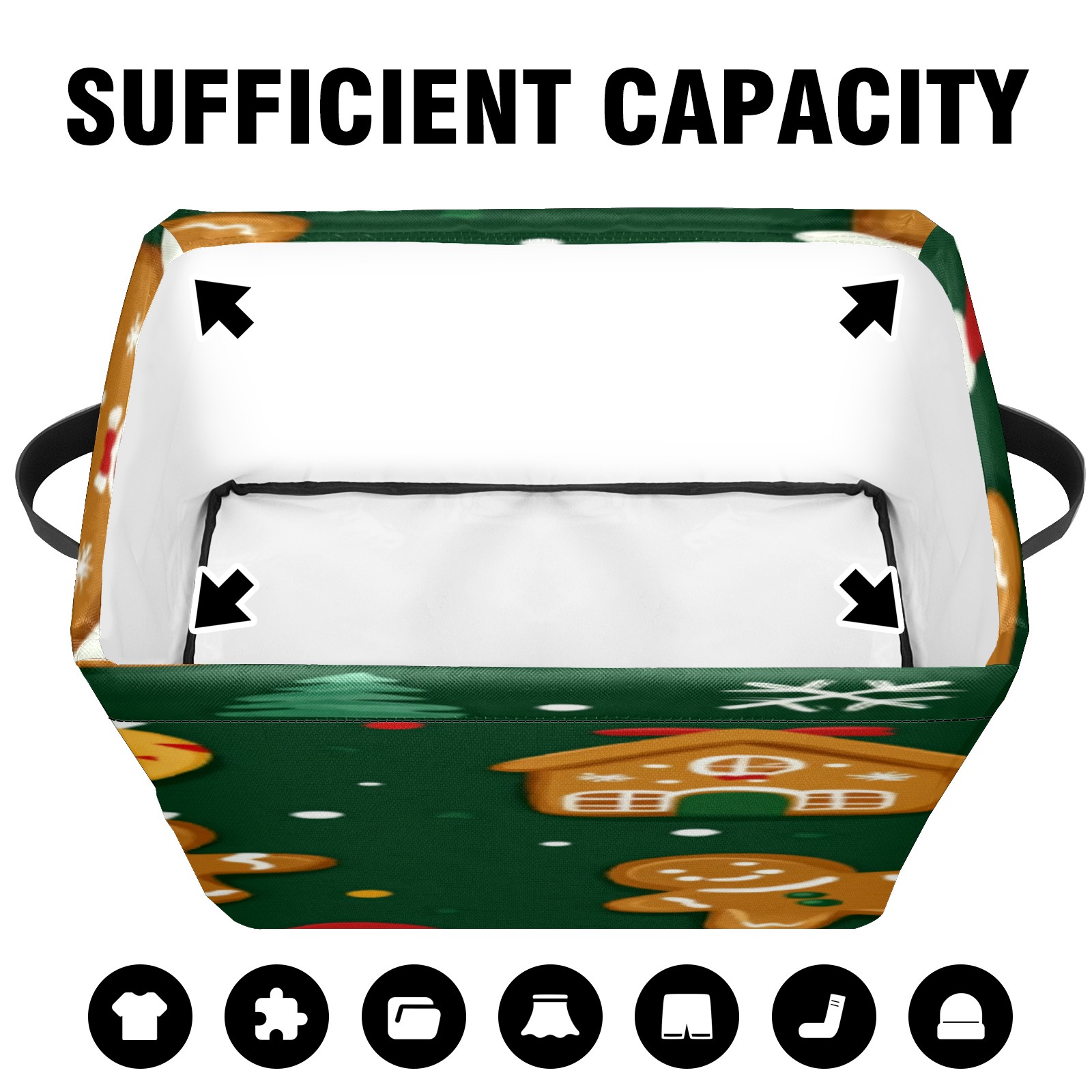 Foldable and Stackable Fabric Storage Basket for Home Organization with Handles, Decorative Closet Bins for Shelves, Laundry, and Toy Storage( Christmas Pattern)