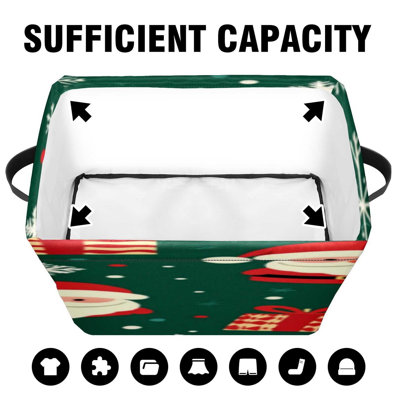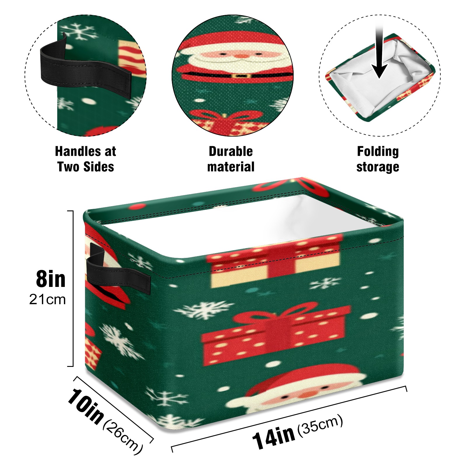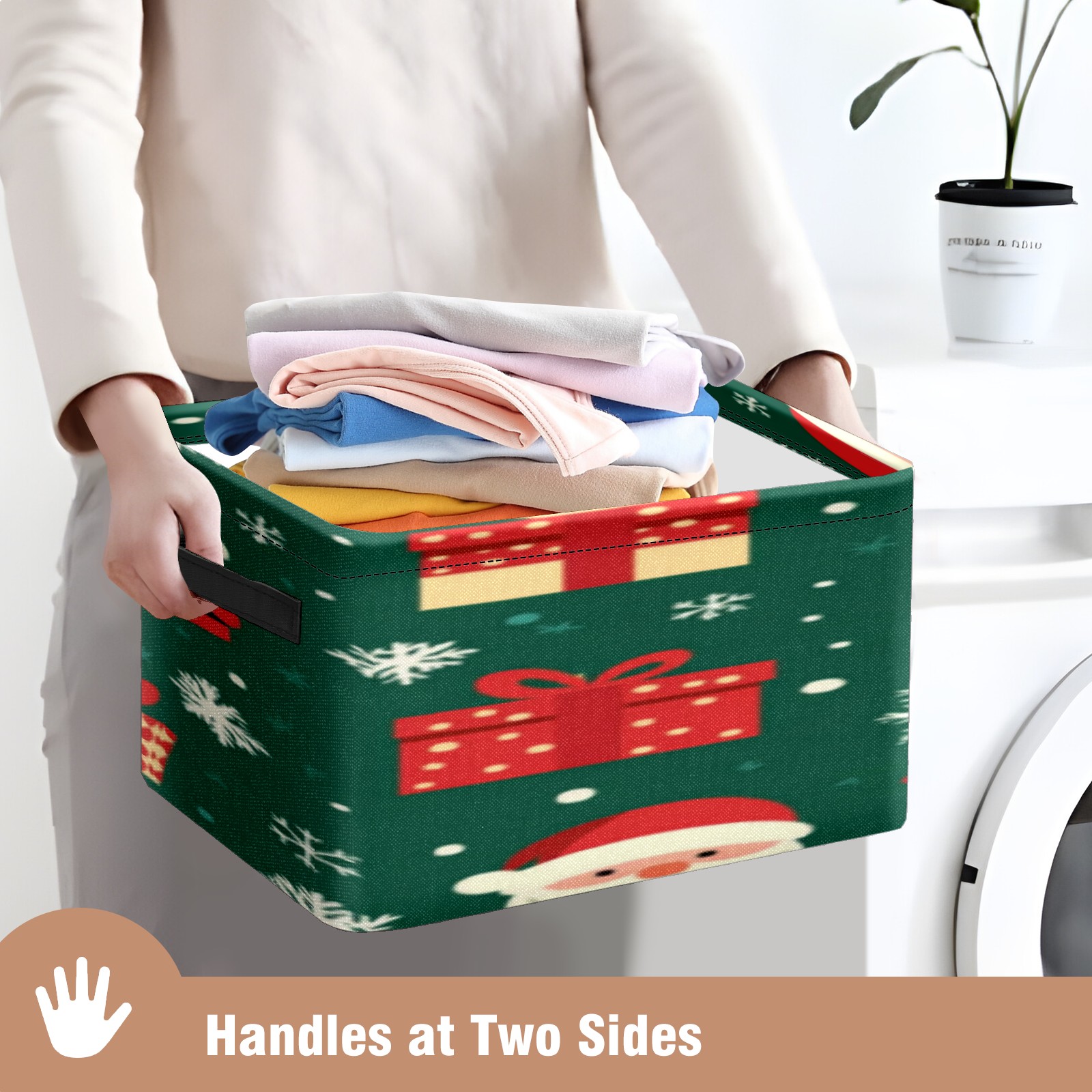 Foldable and Stackable Fabric Storage Basket for Home Organization with Handles, Decorative Closet Bins for Shelves, Laundry, and Toy Storage( Christmas Gifts And Santa Claus)