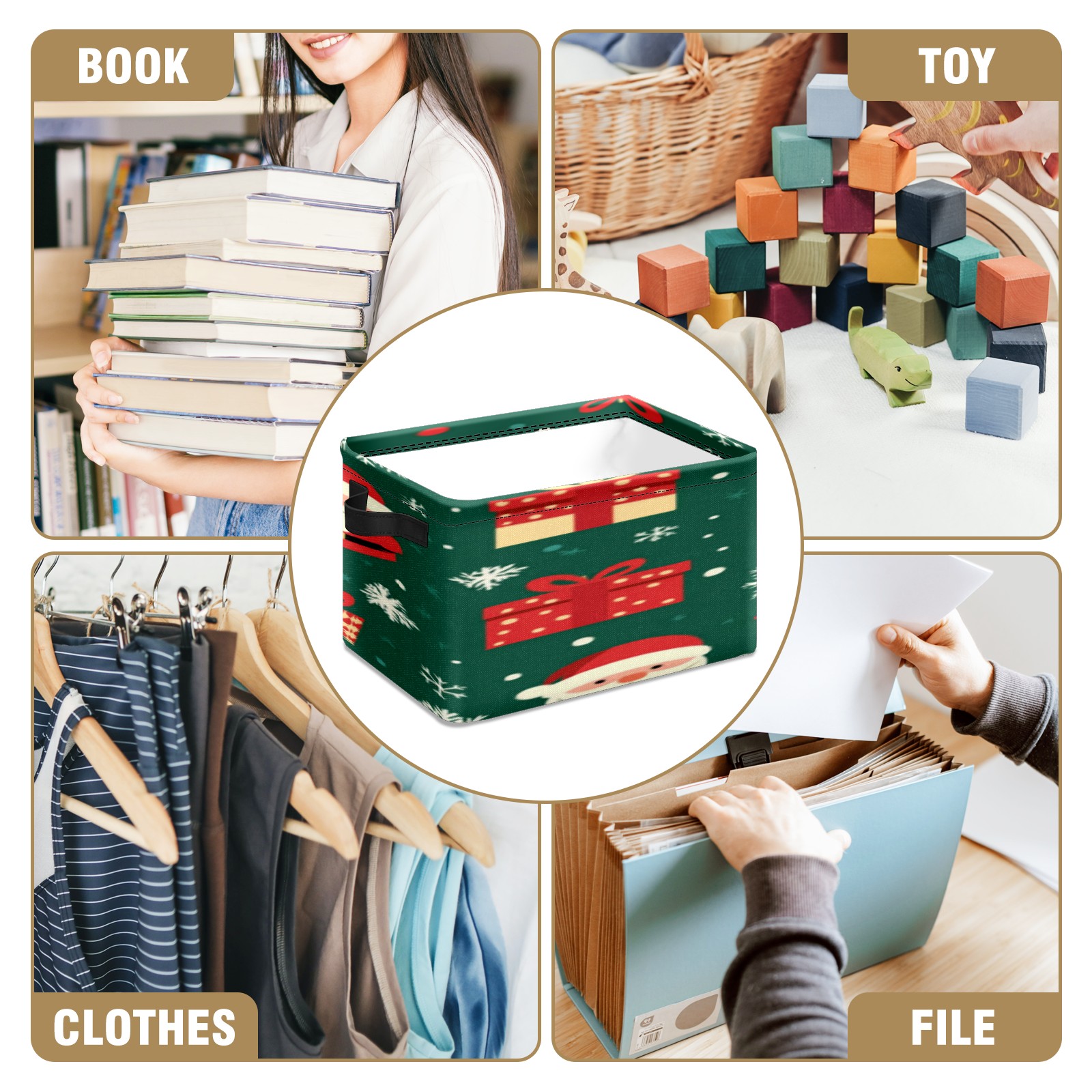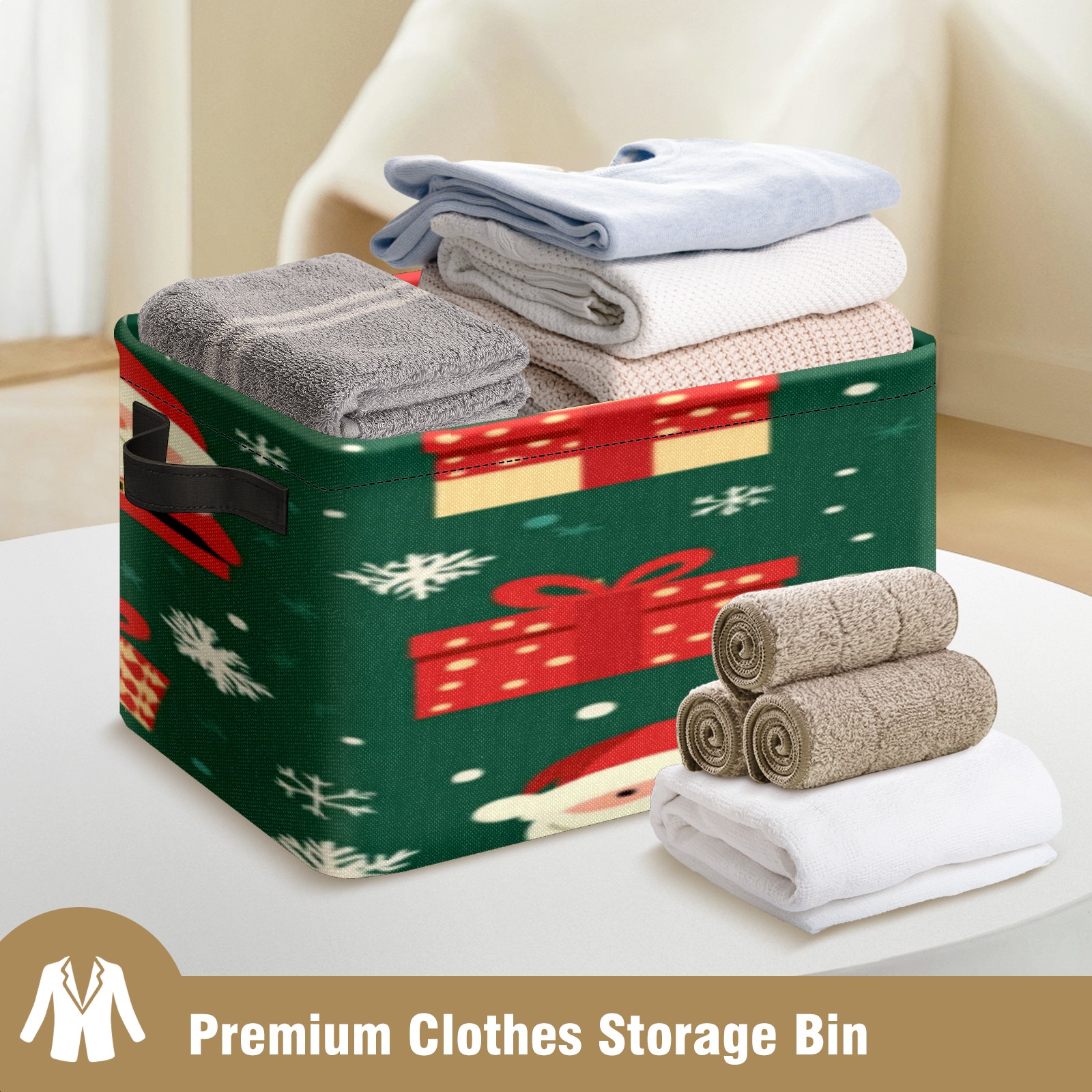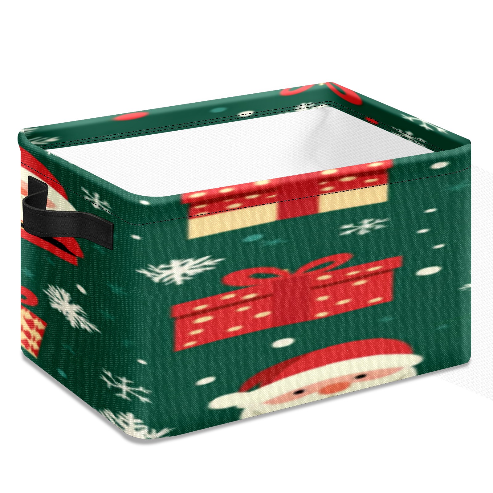 Foldable and Stackable Fabric Storage Basket for Home Organization with Handles, Decorative Closet Bins for Shelves, Laundry, and Toy Storage( Christmas Gifts And Santa Claus)
