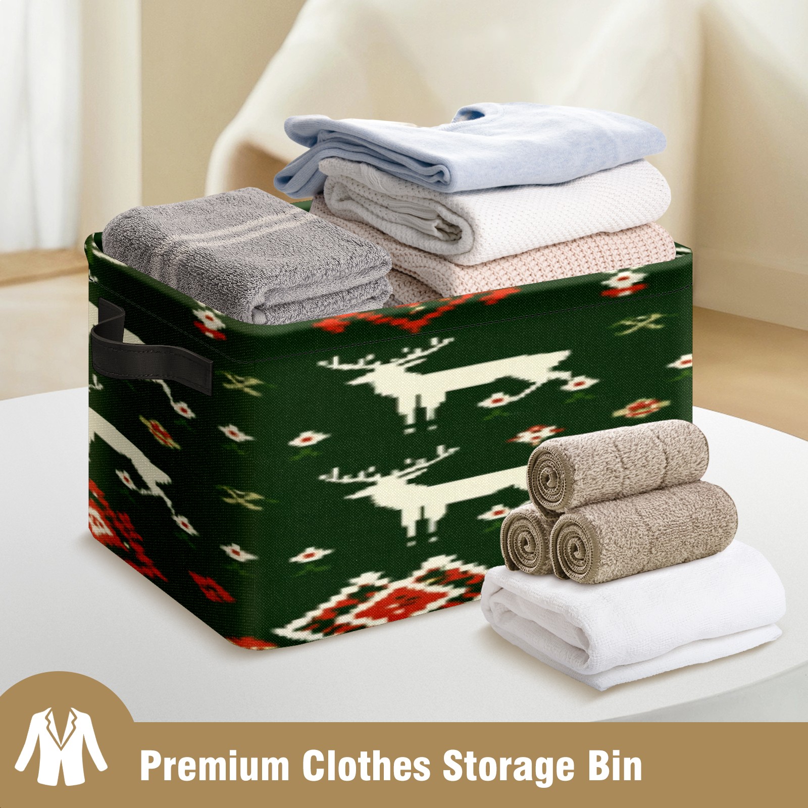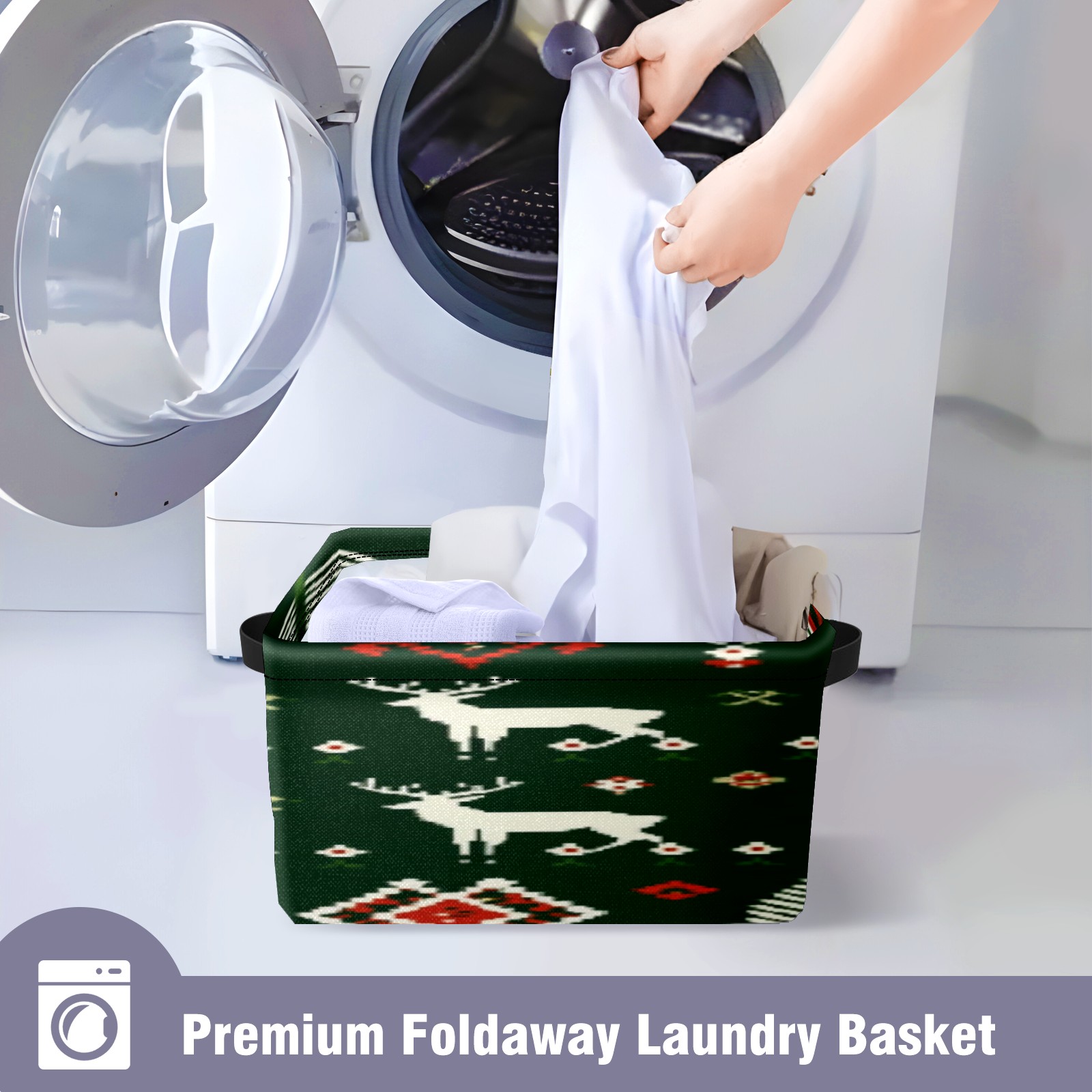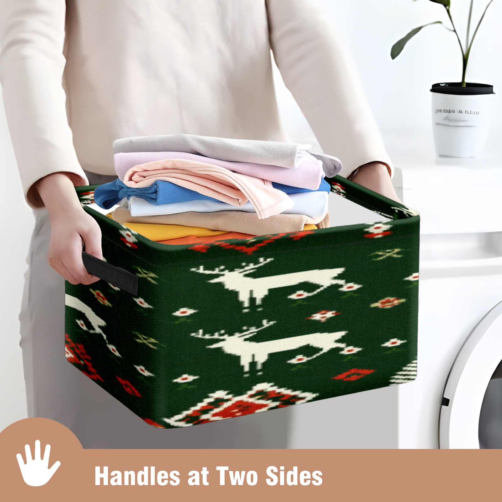 Foldable and Stackable Fabric Storage Basket for Home Organization with Handles, Decorative Closet Bins for Shelves, Laundry, and Toy Storage( Christmas Sweater Pattern)