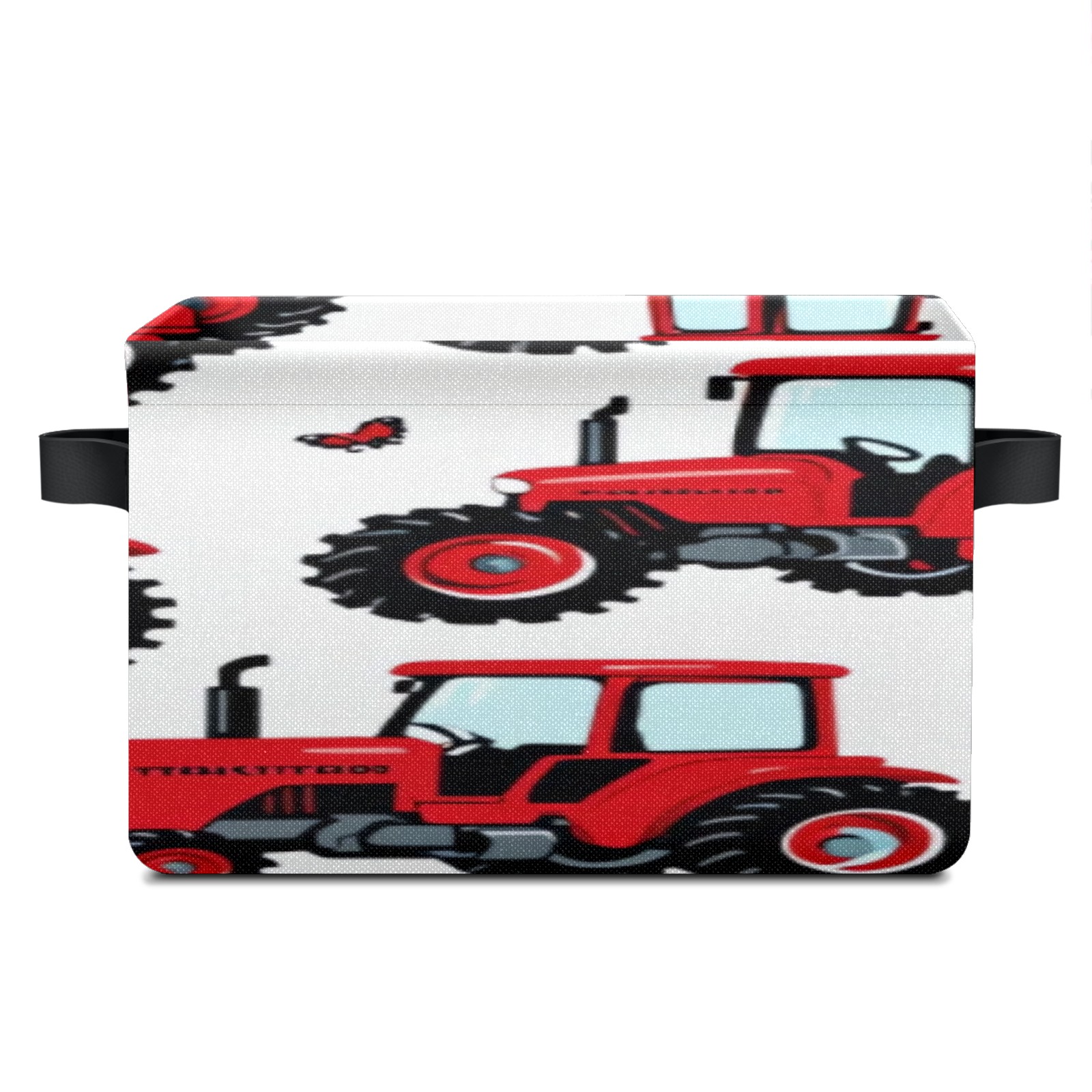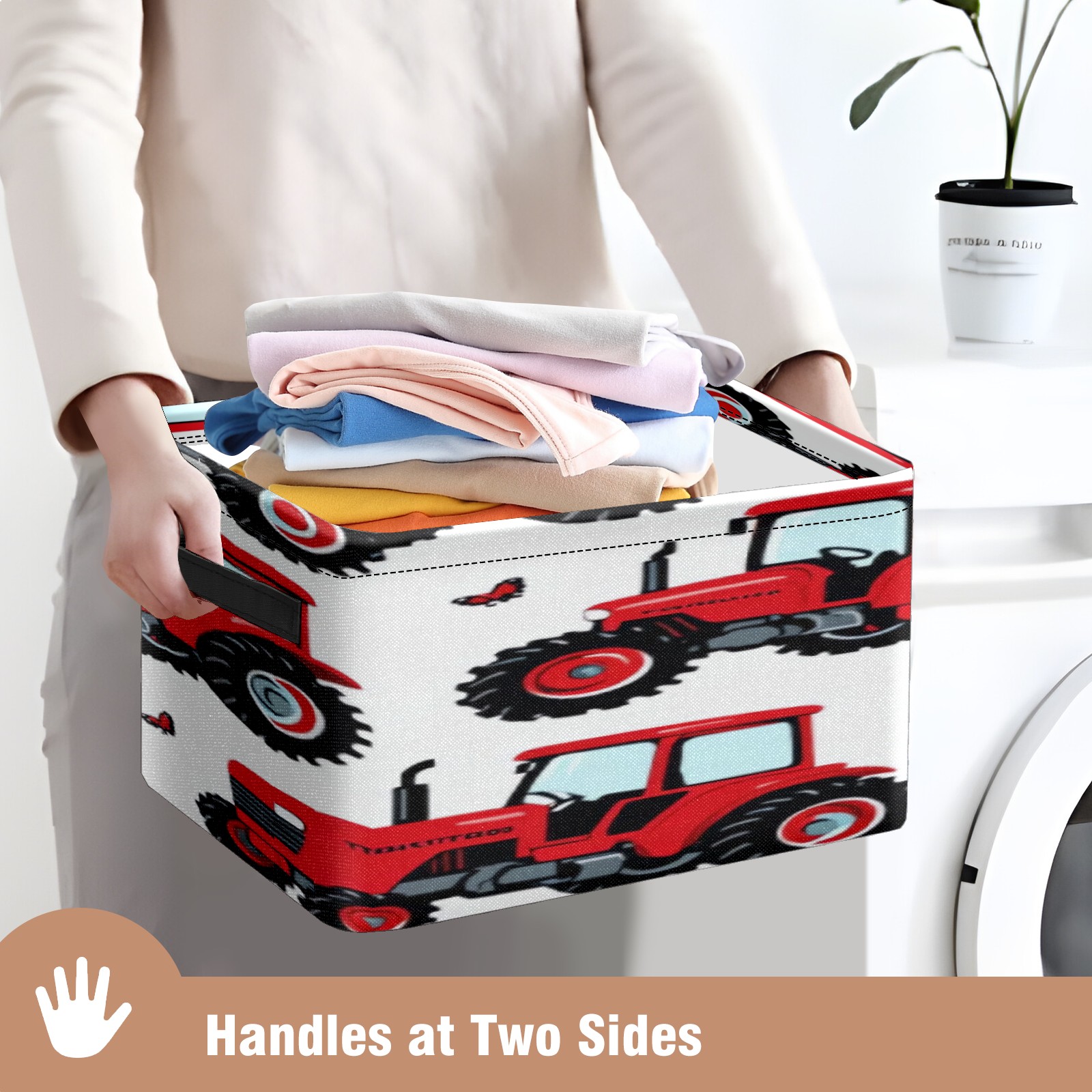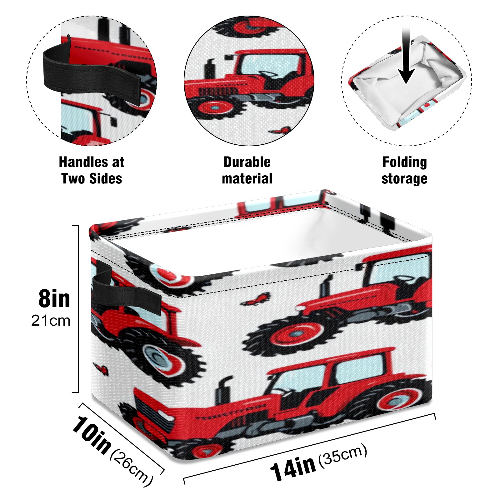 Foldable and Stackable Fabric Storage Basket for Home Organization with Handles, Decorative Closet Bins for Shelves, Laundry, and Toy Storage( Tractor)