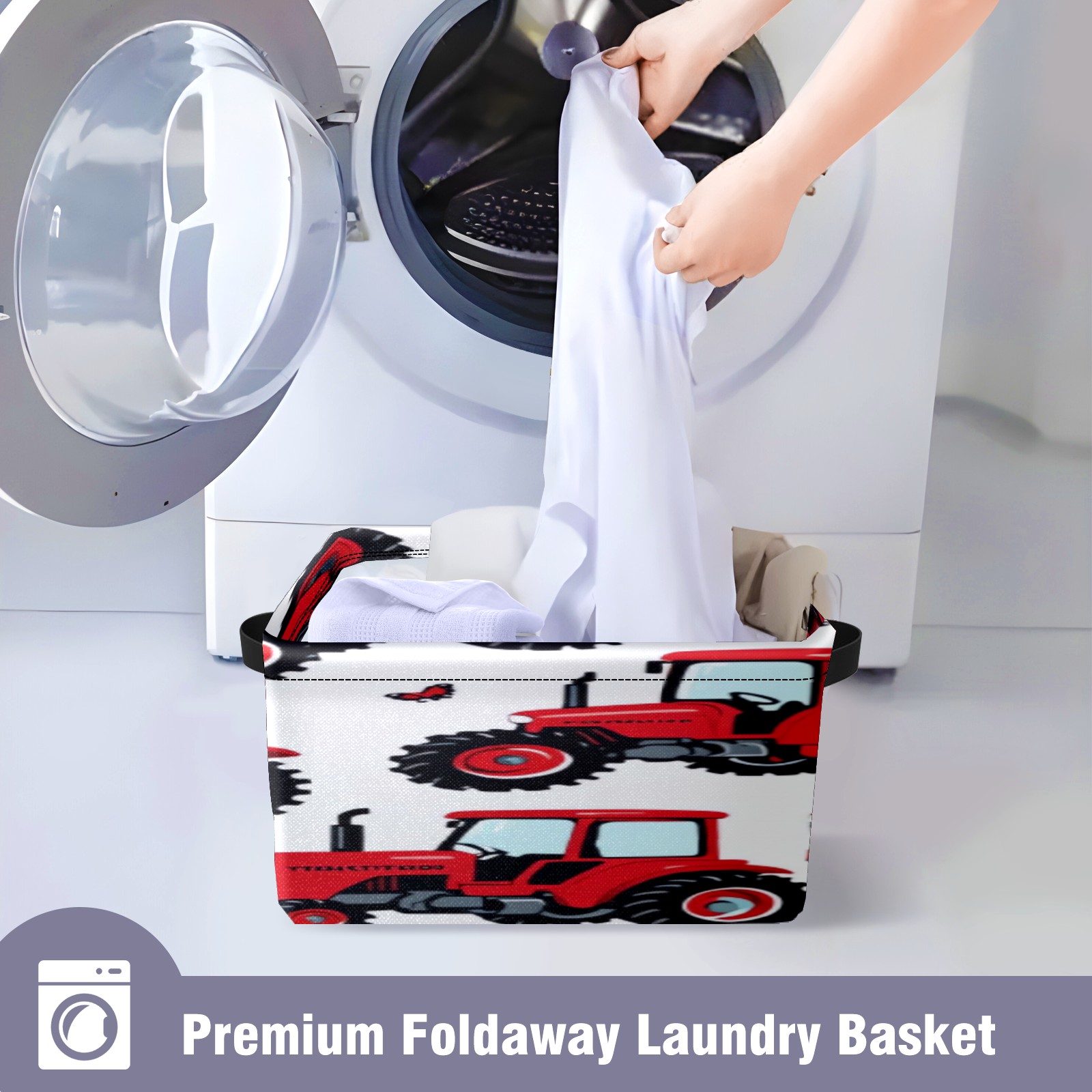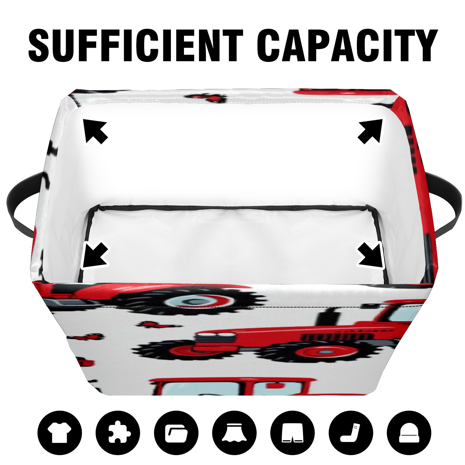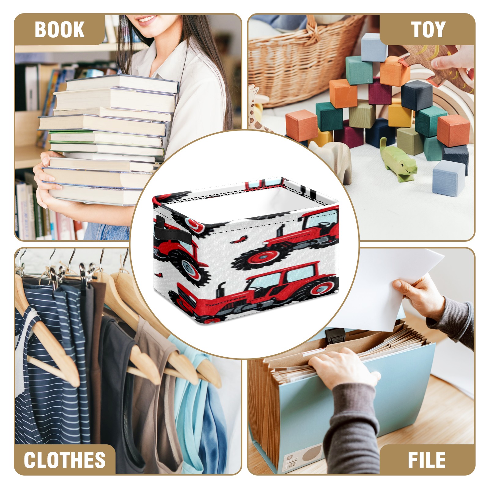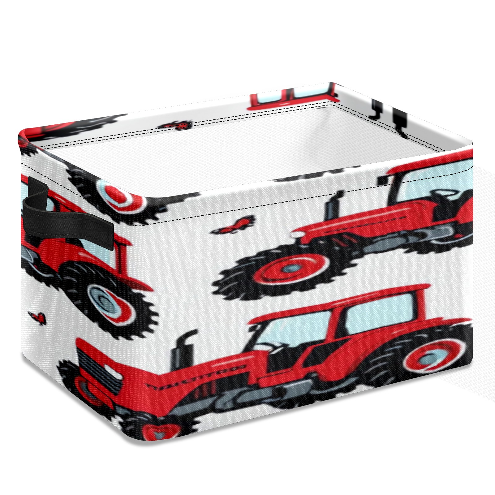 Foldable and Stackable Fabric Storage Basket for Home Organization with Handles, Decorative Closet Bins for Shelves, Laundry, and Toy Storage( Tractor)